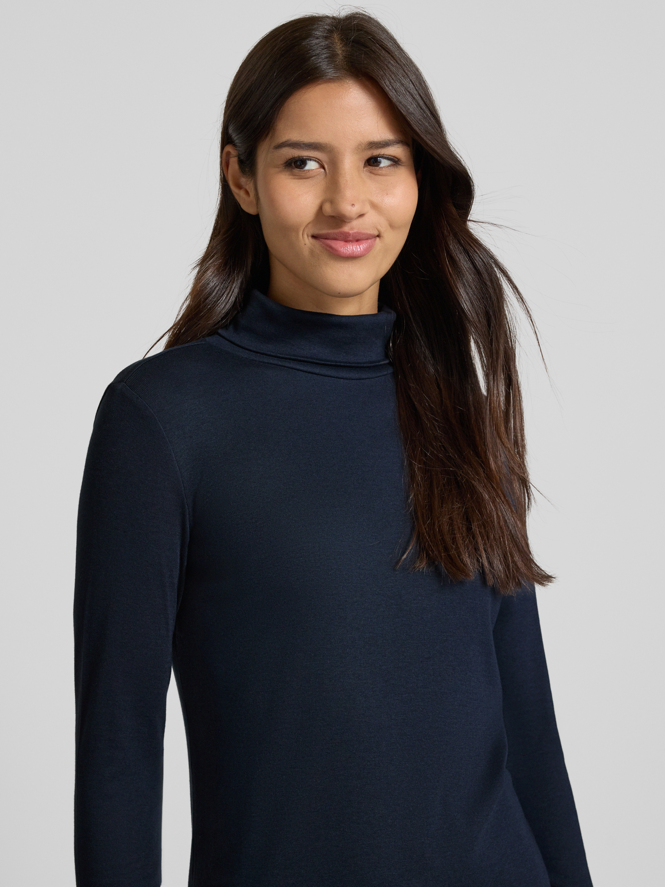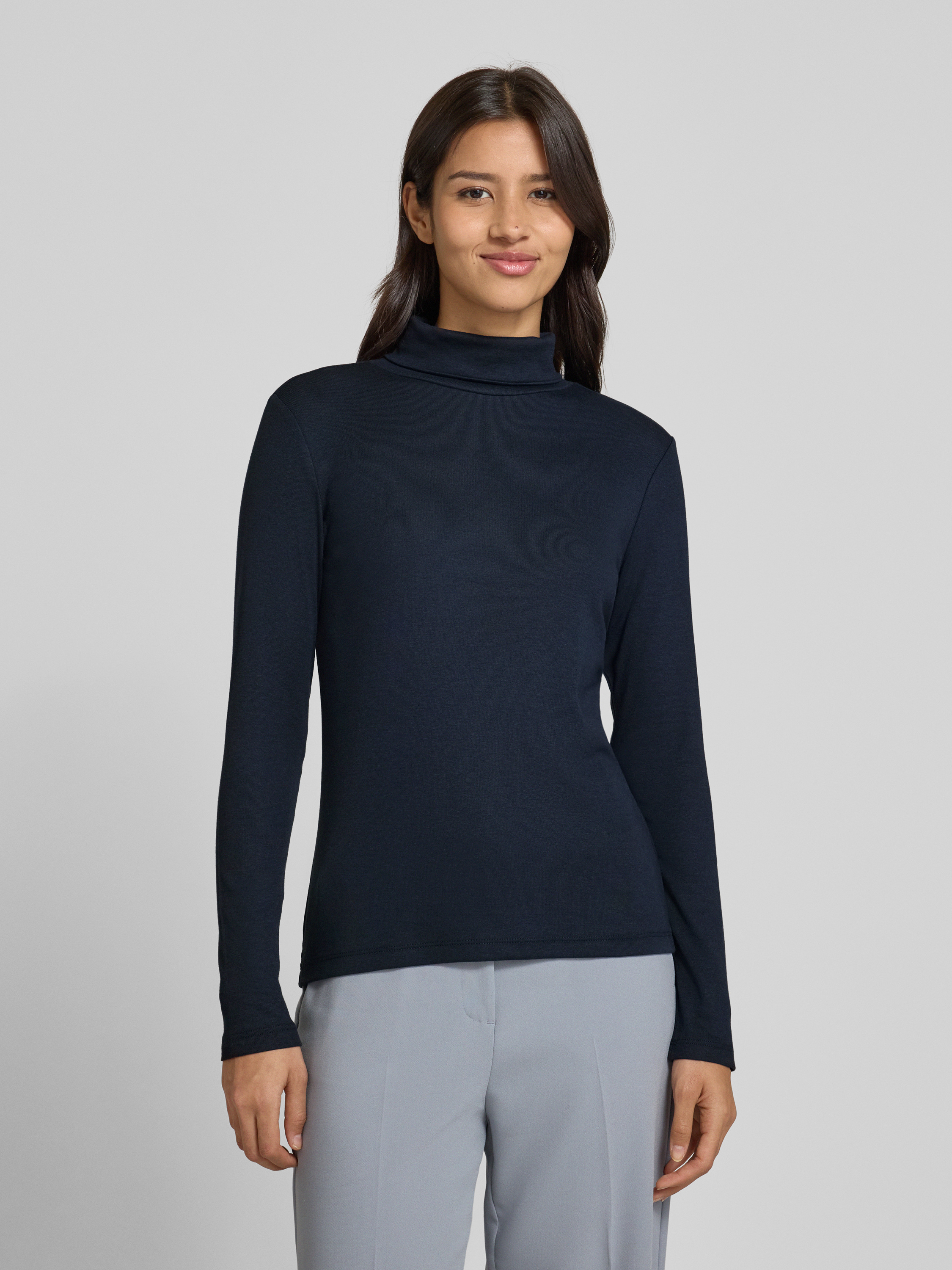 Tom TailorRegular Fit Langarmshirt aus Baumwoll-Mix mit Rollkragen in dunkelblau