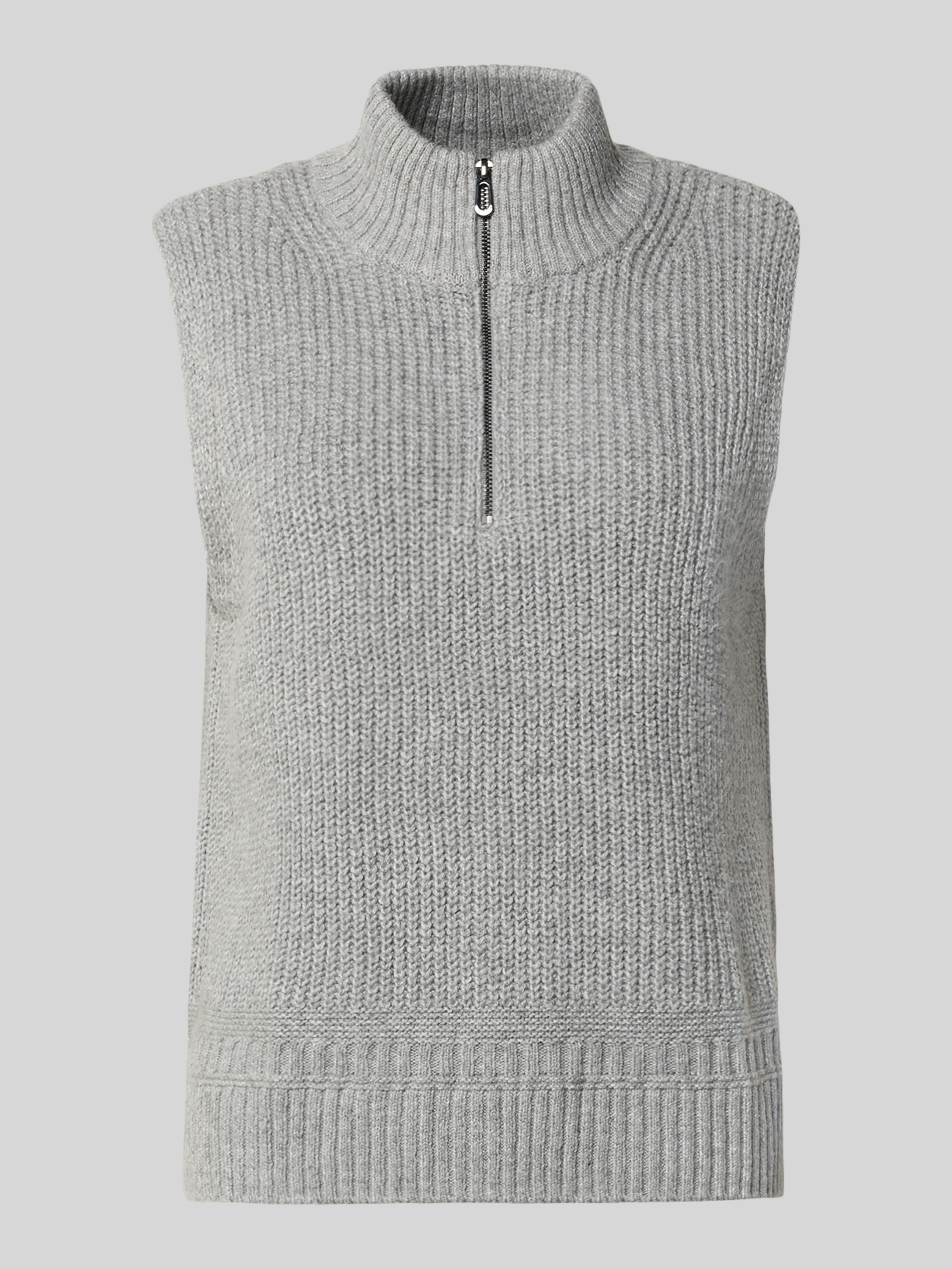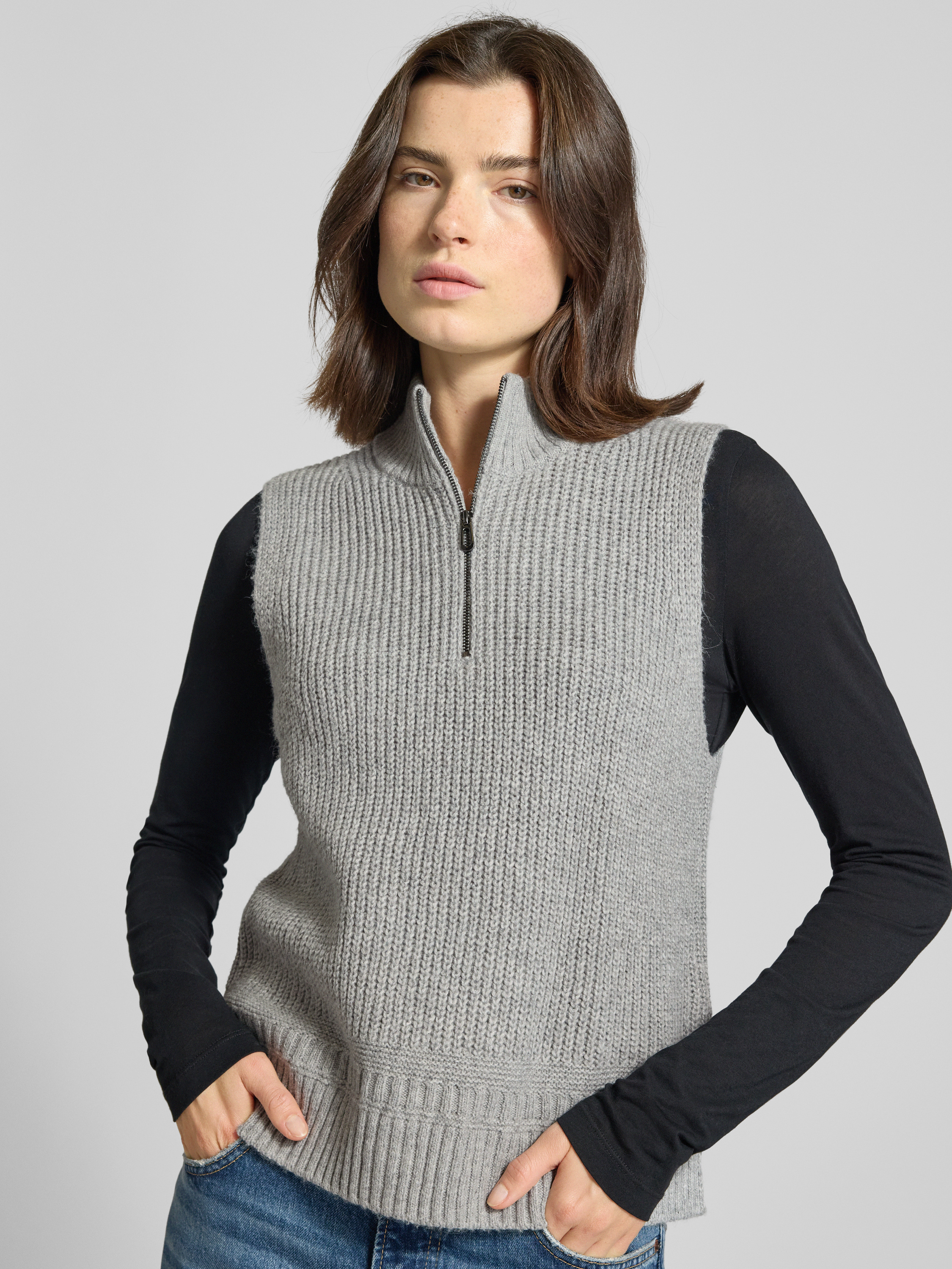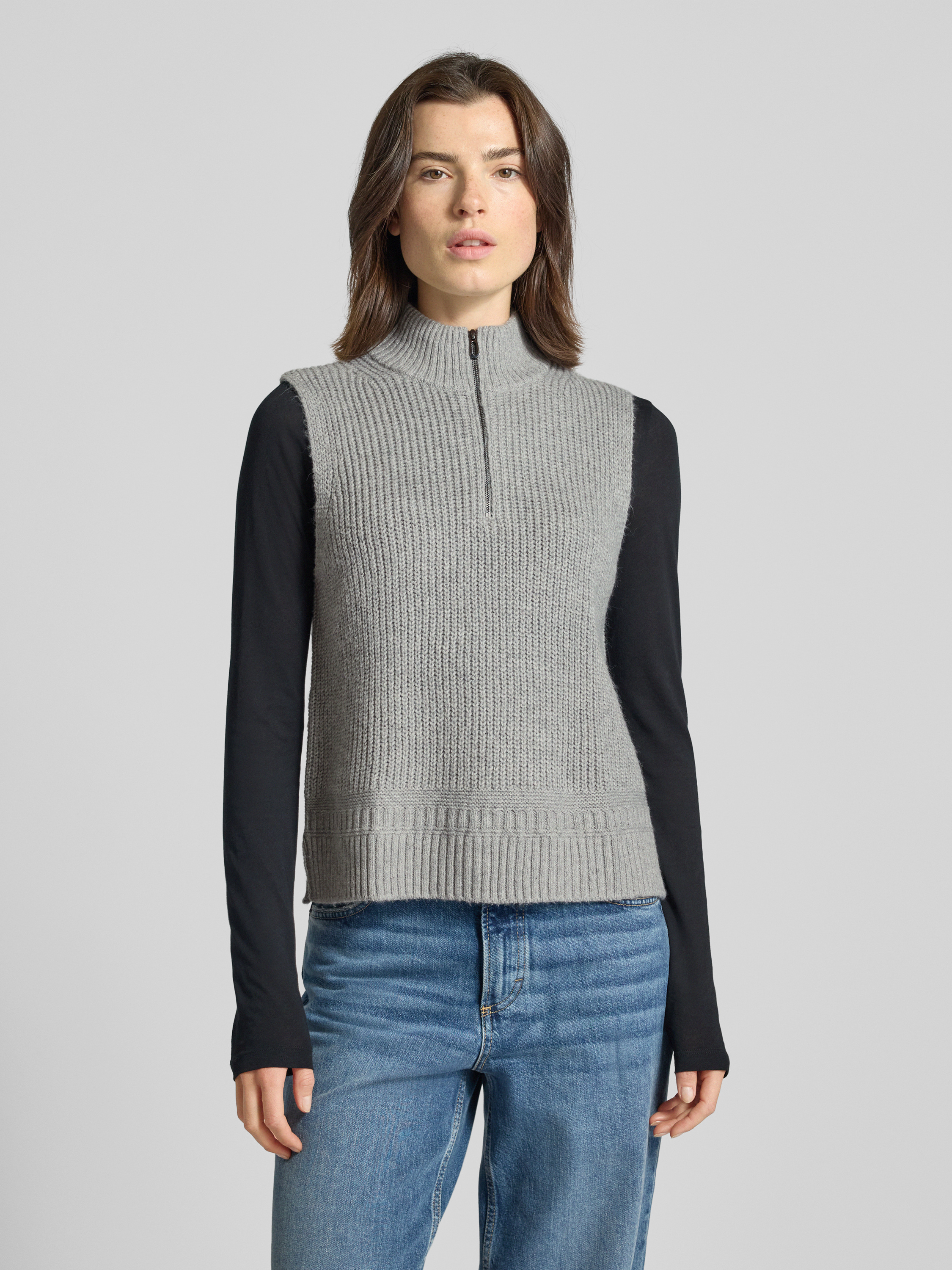 Der Damen Pullunder von Tom Tailor im Regular-Fit zeichnet sich durch eine strukturierte, unifarbene Optik und angenehme Strickverarbeitung aus. Dank des klassischen Troyer-Kragens entsteht ein vielseitiger Look, der sich unkompliziert kombinieren lässt. Der Baumwoll-Mix vermittelt ein komfortables Tragegefühl und unterstützt einen entspannten Alltag.
