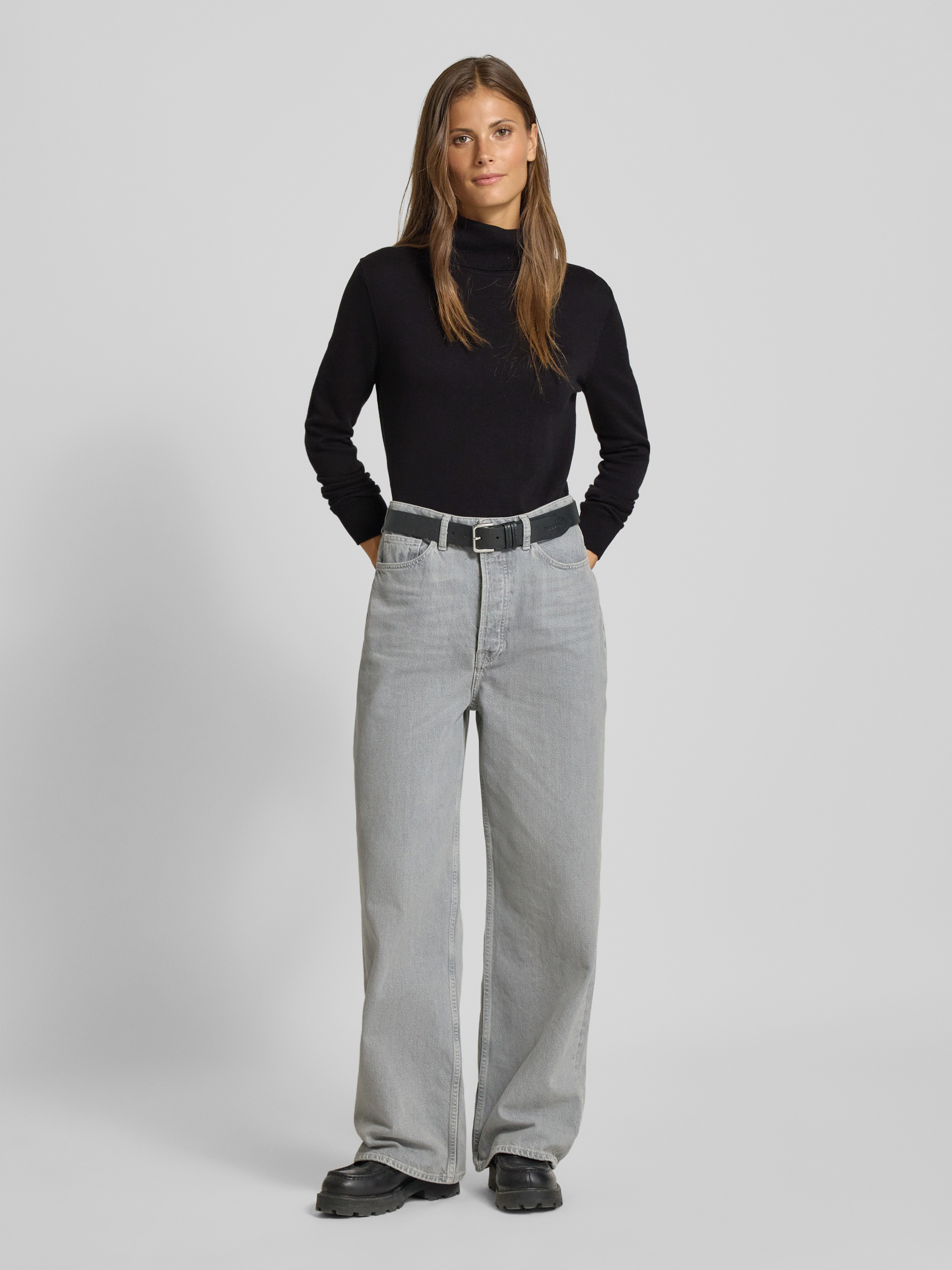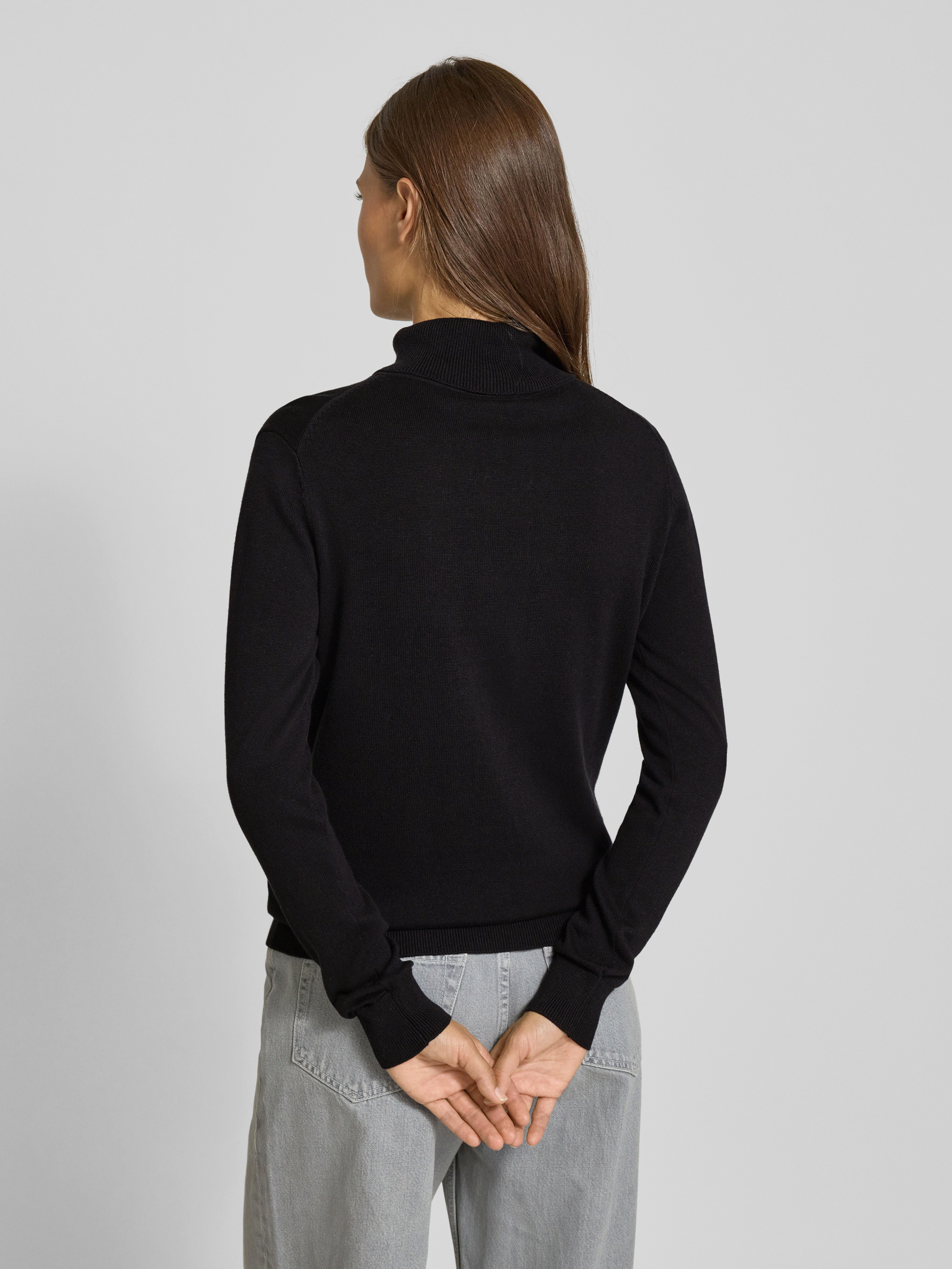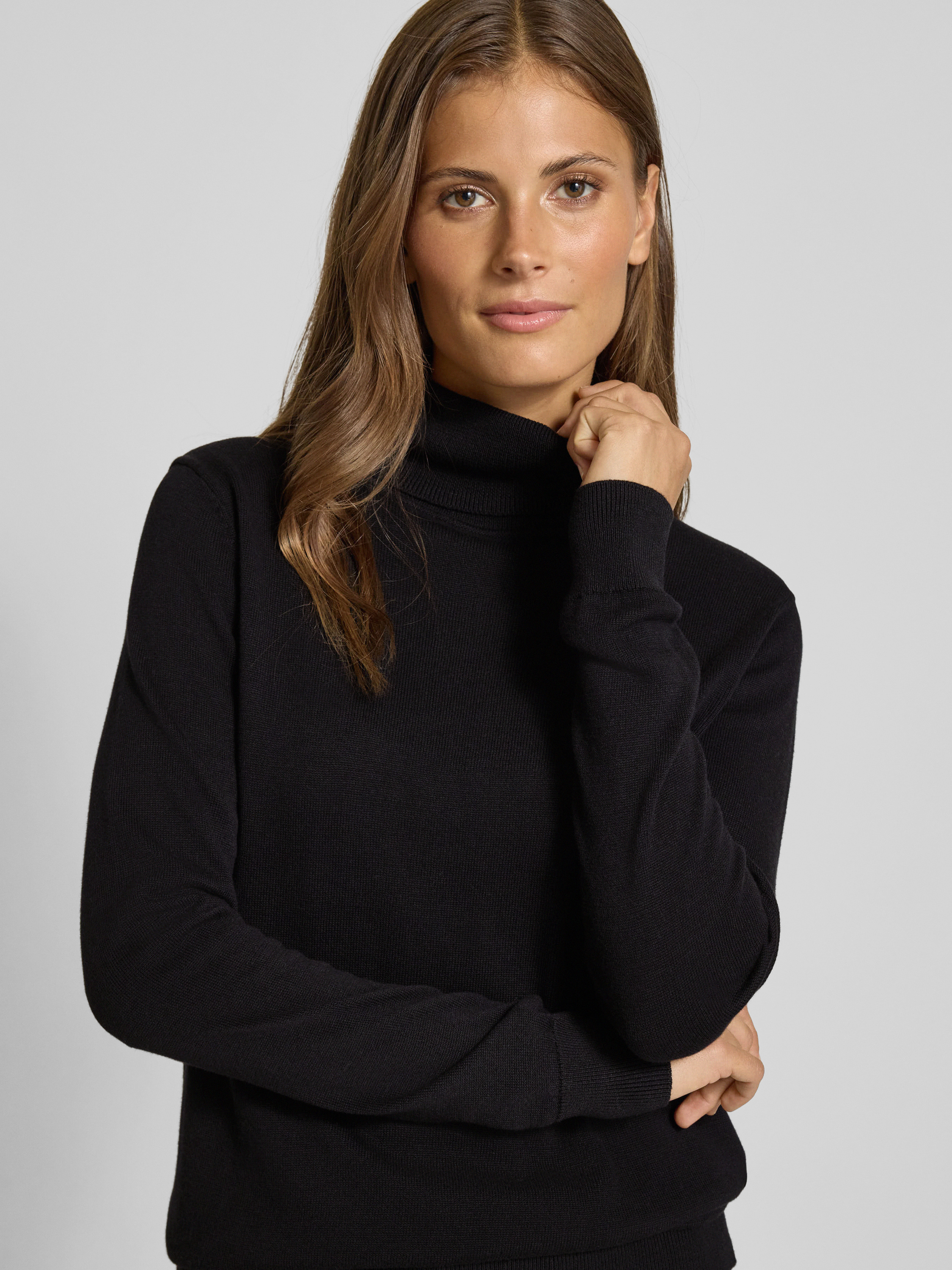 Tom TailorRegular Fit Rollkragenpullover aus Baumwoll-Viskose-Mix in black