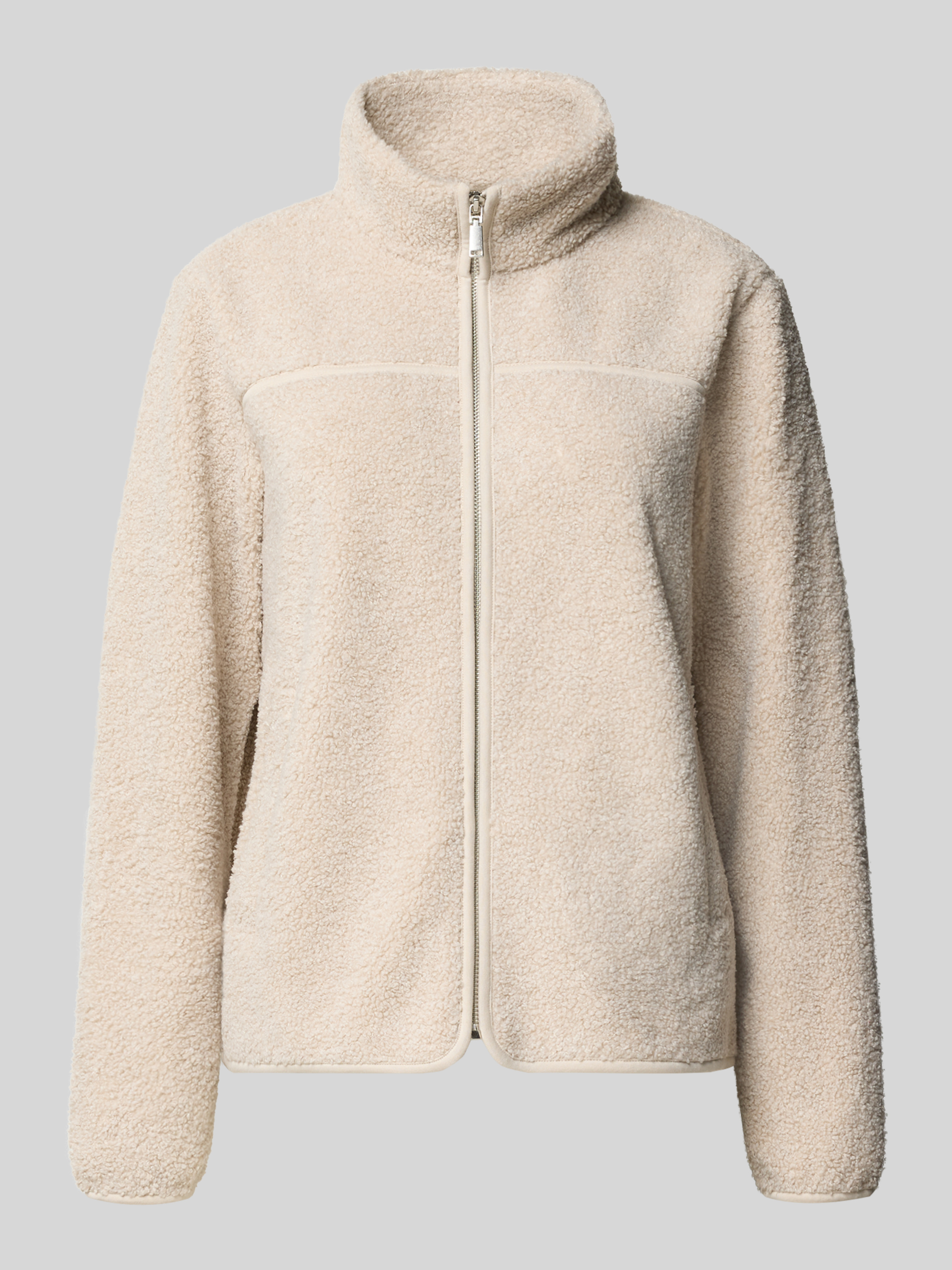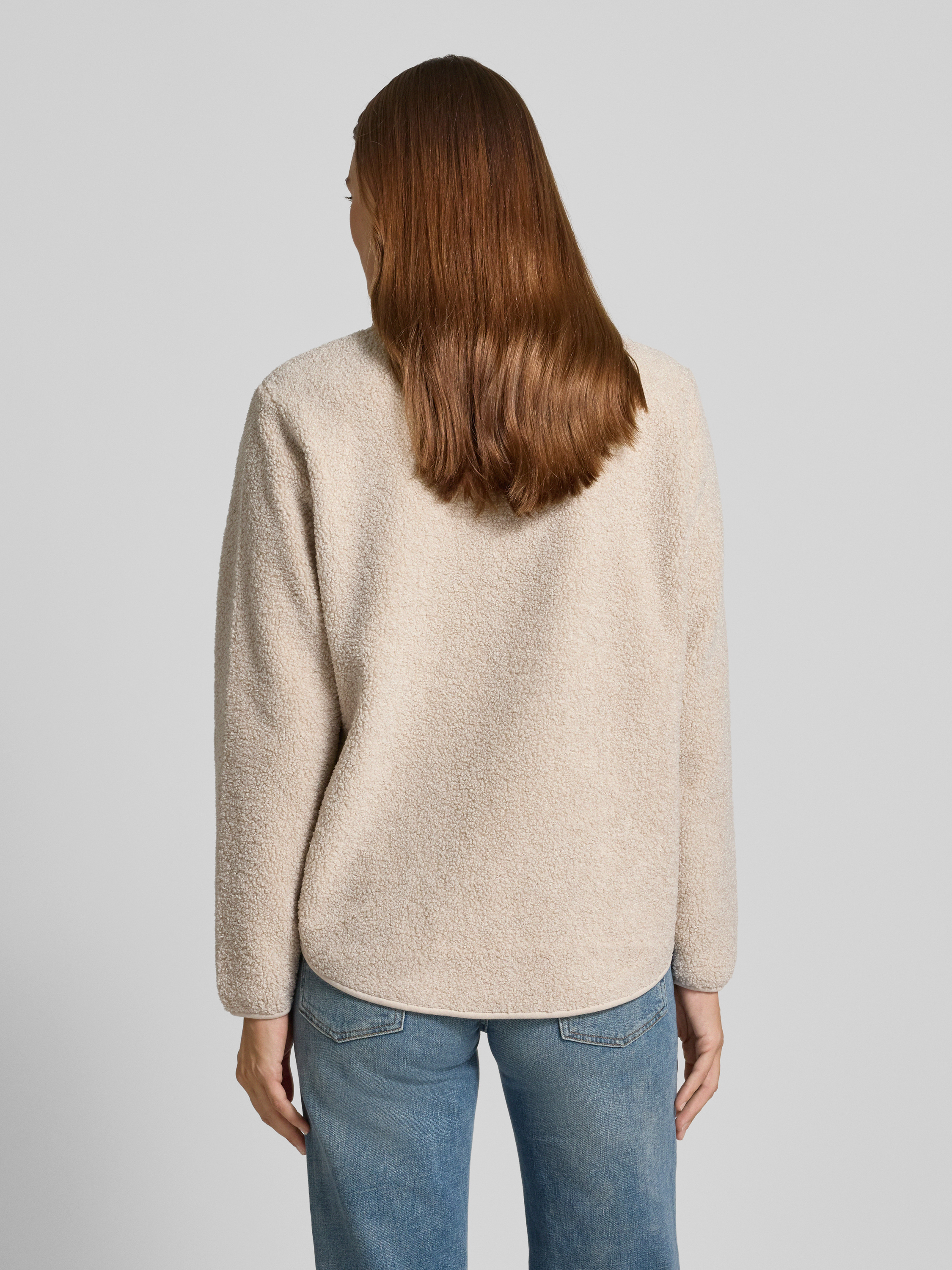 Die Damen Teddy-Jacke von Tom Tailor in Regular Fit legt sich angenehm weich um den Körper und eignet sich durch die unifarbene Optik für vielseitige Kombinationen. Der Stehkragen und die langärmlige Schnittführung sorgen gemeinsam mit paspelierten Abschlüssen für einen modernen Eindruck. Praktische seitliche Eingrifftaschen und eine dezente Ziernaht runden das Gesamtbild ab.