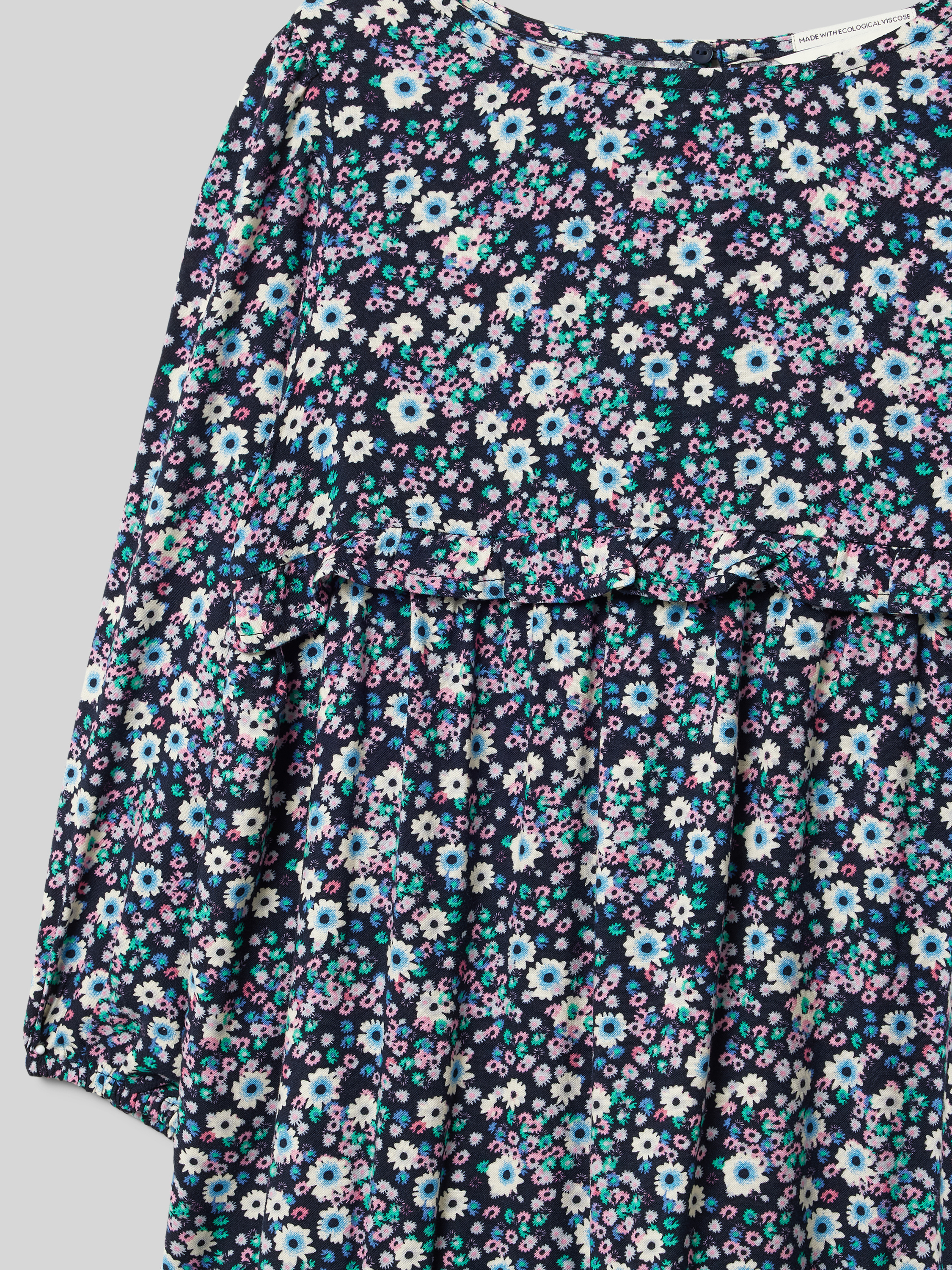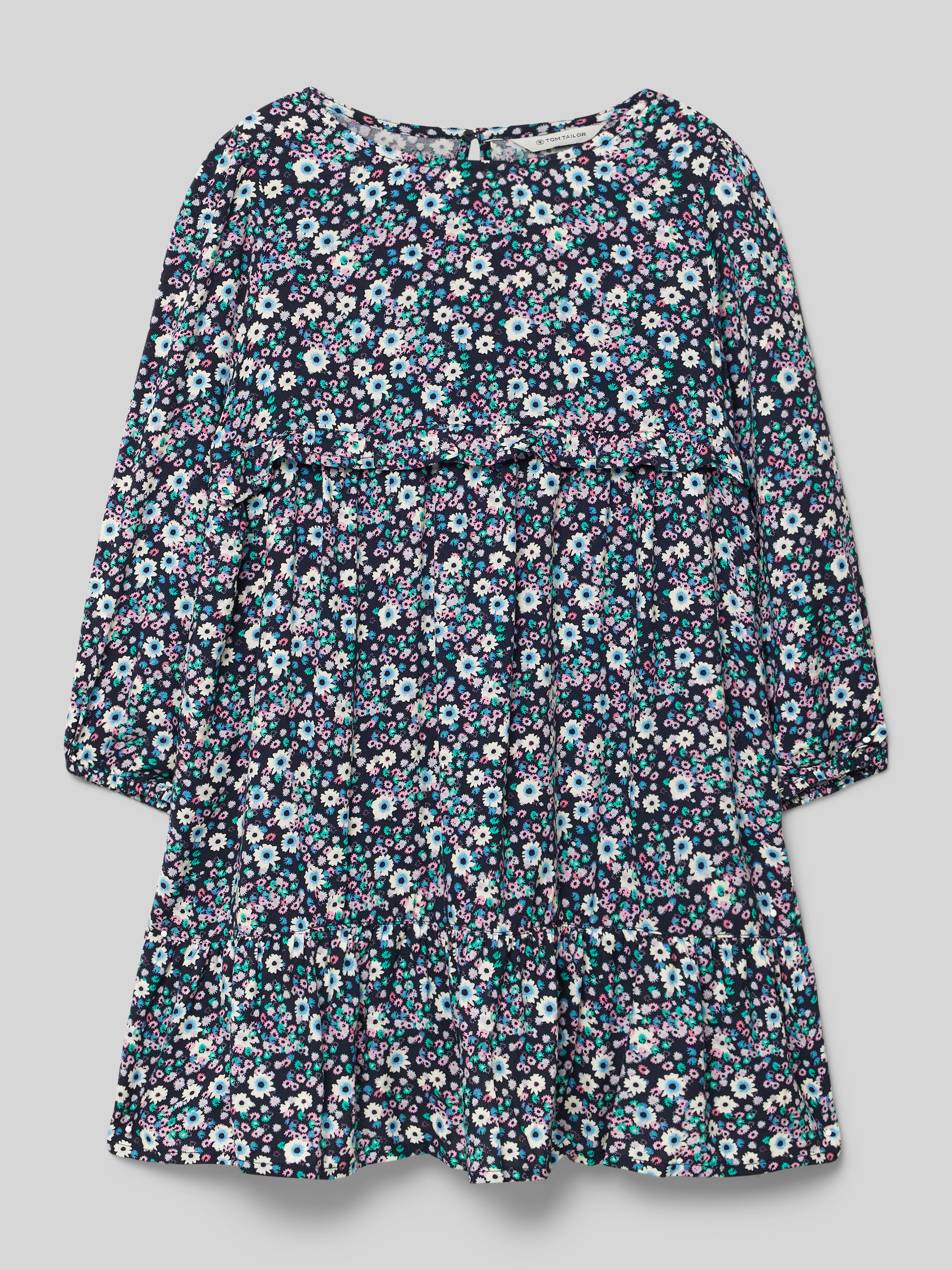 Tom TailorTailliertes Freizeitkleid mit Allover Print und Volants in marine