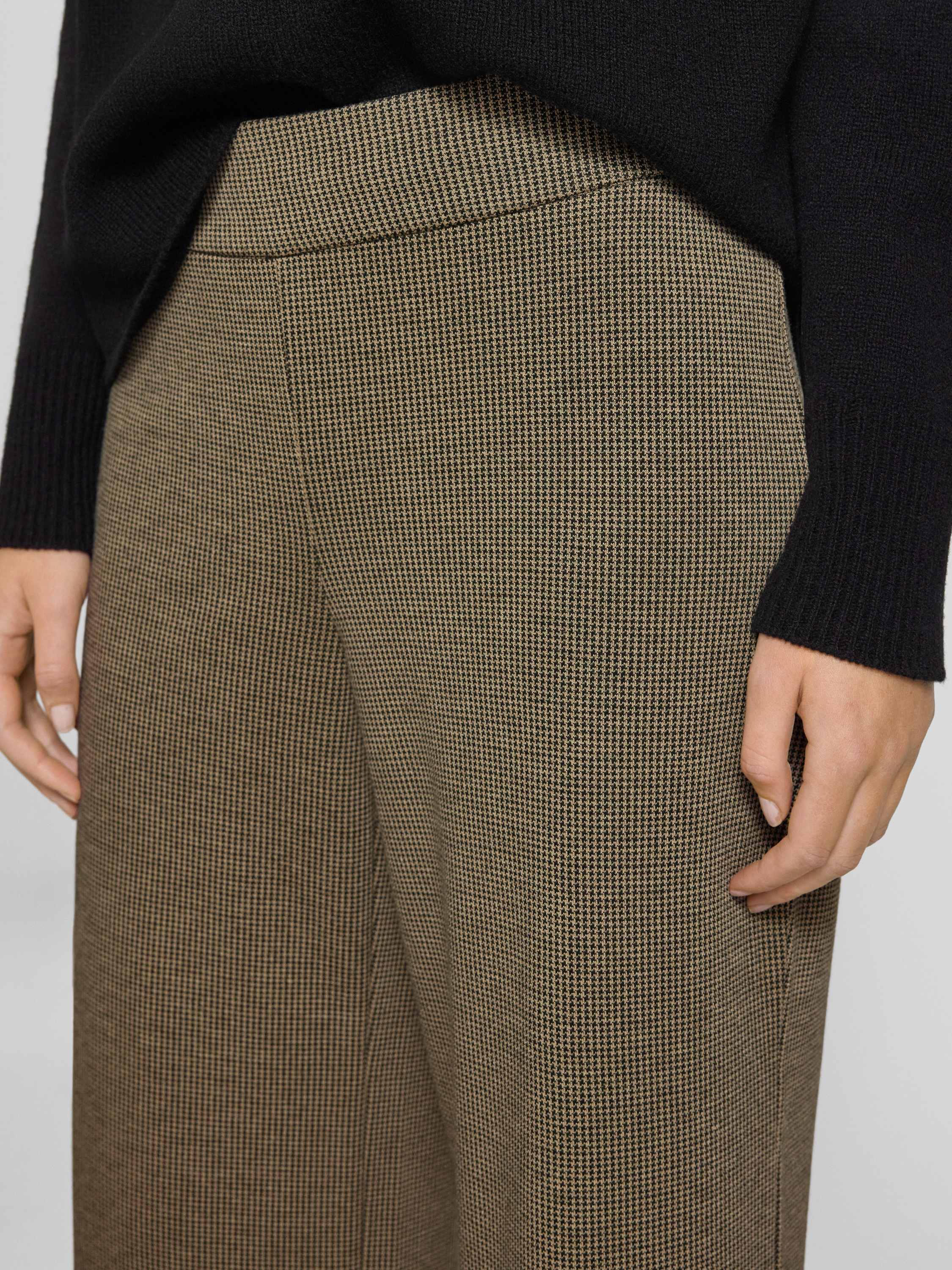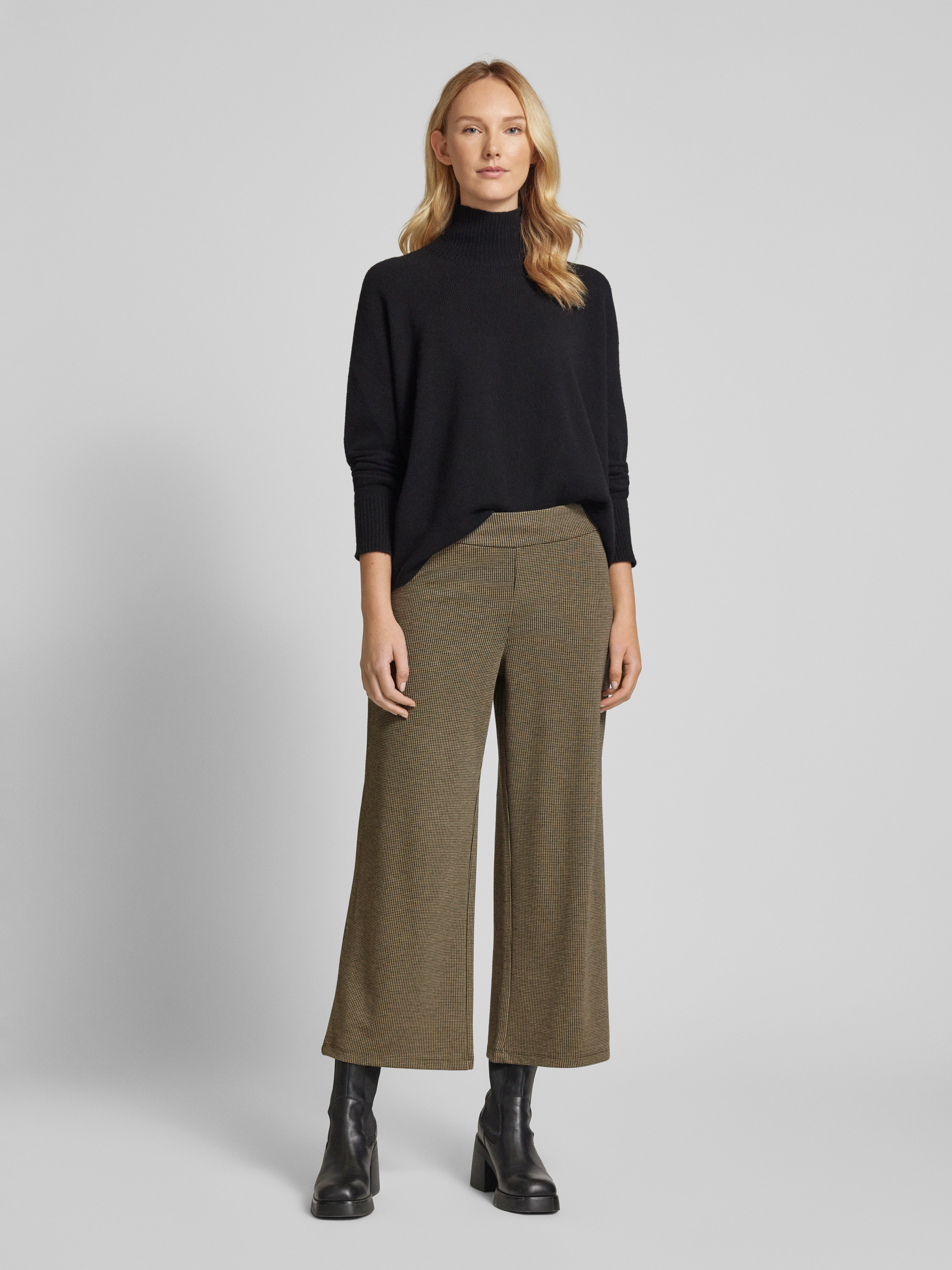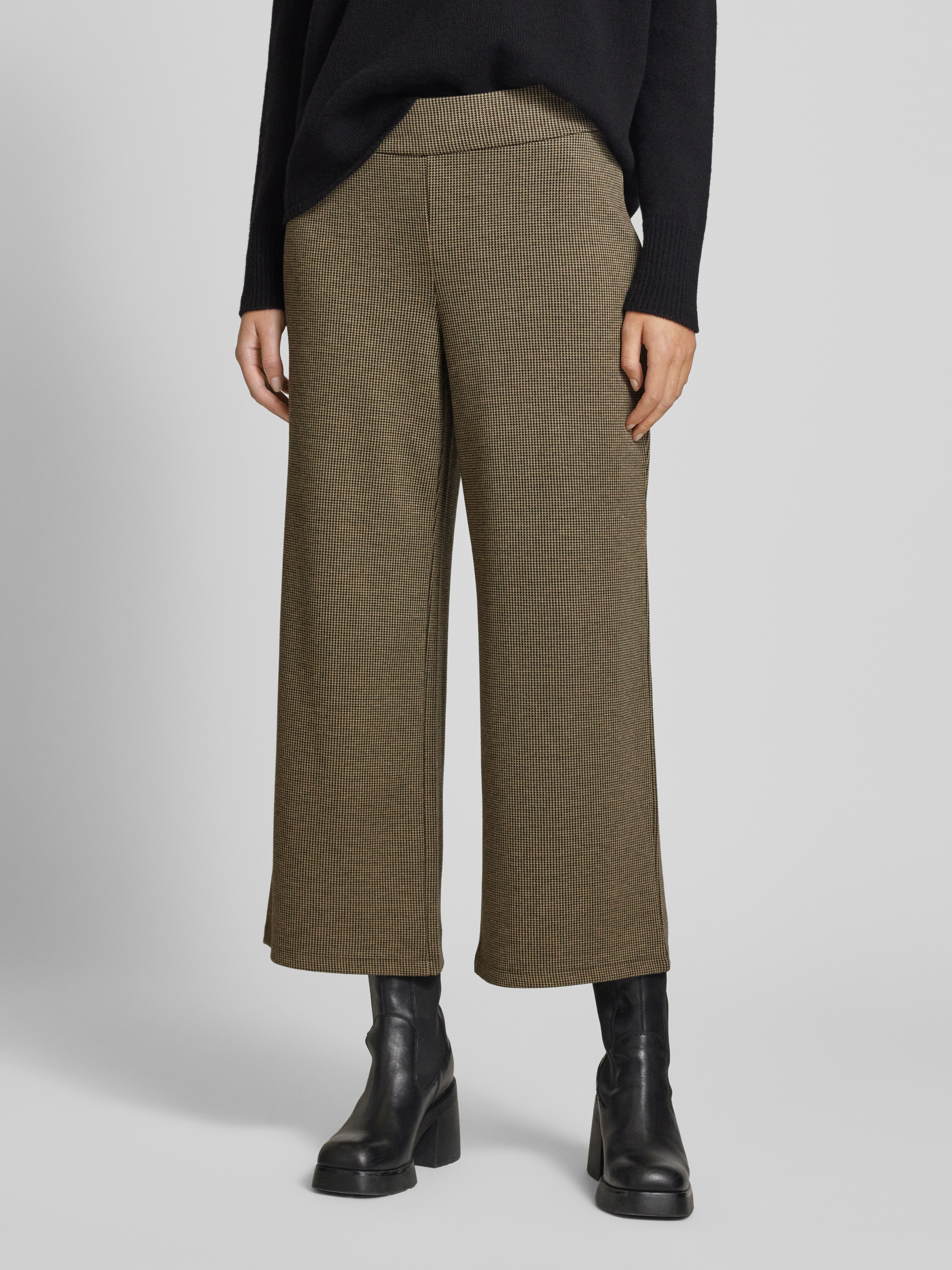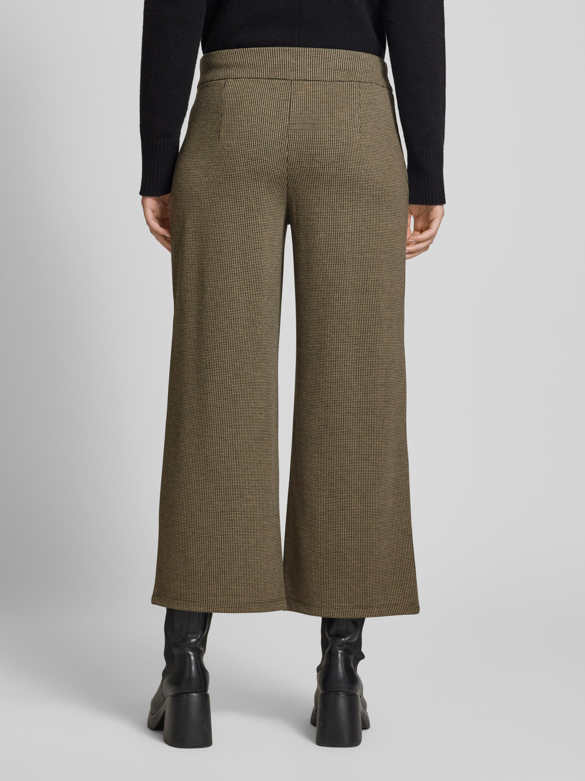 Die Tom Tailor Culotte beeindruckt durch ihr markantes Hahnentritt-Muster und die bequeme Wide-Fit-Passform. Der verkürzte Schnitt sorgt für eine moderne Silhouette, die sich ideal für verschiedene Anlässe eignet. Dank der hochwertigen Jacquard-Verarbeitung bietet sie angenehmen Tragekomfort.