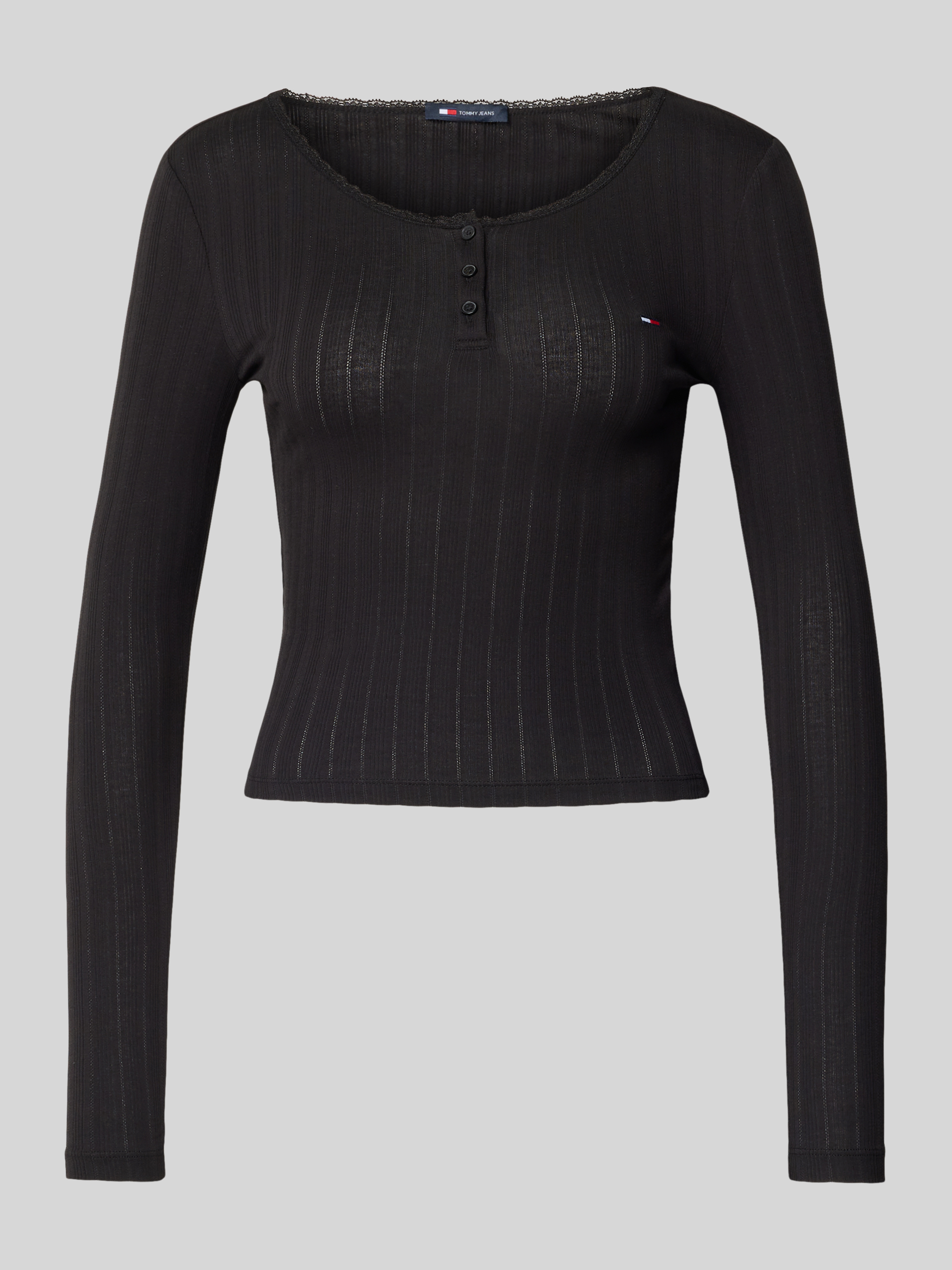 Das Damen Longsleeve von Tommy Jeans fällt durch seine schmale Passform und die dezente Rippstruktur angenehm auf. Der Henley-Ausschnitt und feine Spitzenbesätze sorgen für eine feminine Note, während der Baumwolle-Mix für ein komfortables Tragegefühl im Alltag steht. Dank unifarbener Optik und Logo-Stitching lässt sich das Shirt vielseitig kombinieren.