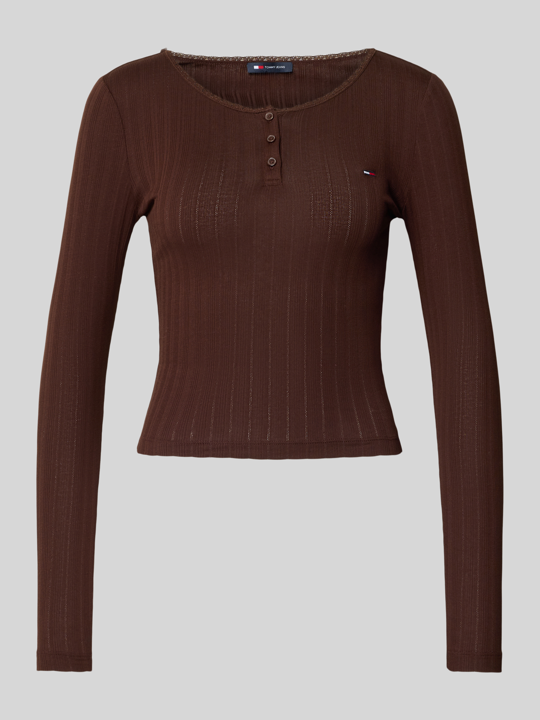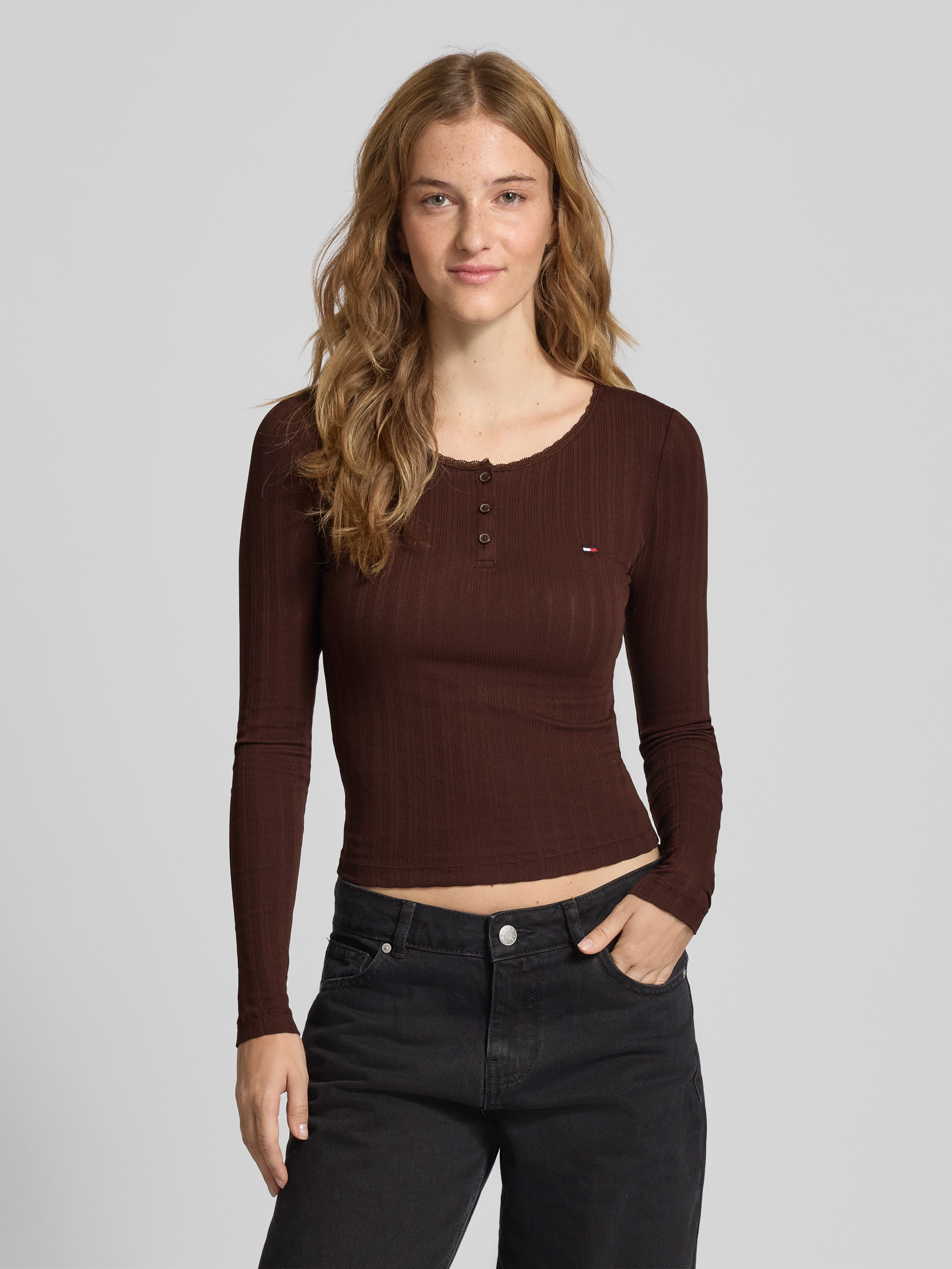 Das Damen Longsleeve von Tommy Jeans fällt durch seine schmale Passform und die dezente Rippstruktur angenehm auf. Der Henley-Ausschnitt und feine Spitzenbesätze sorgen für eine feminine Note, während der Baumwolle-Mix für ein komfortables Tragegefühl im Alltag steht. Dank unifarbener Optik und Logo-Stitching lässt sich das Shirt vielseitig kombinieren.