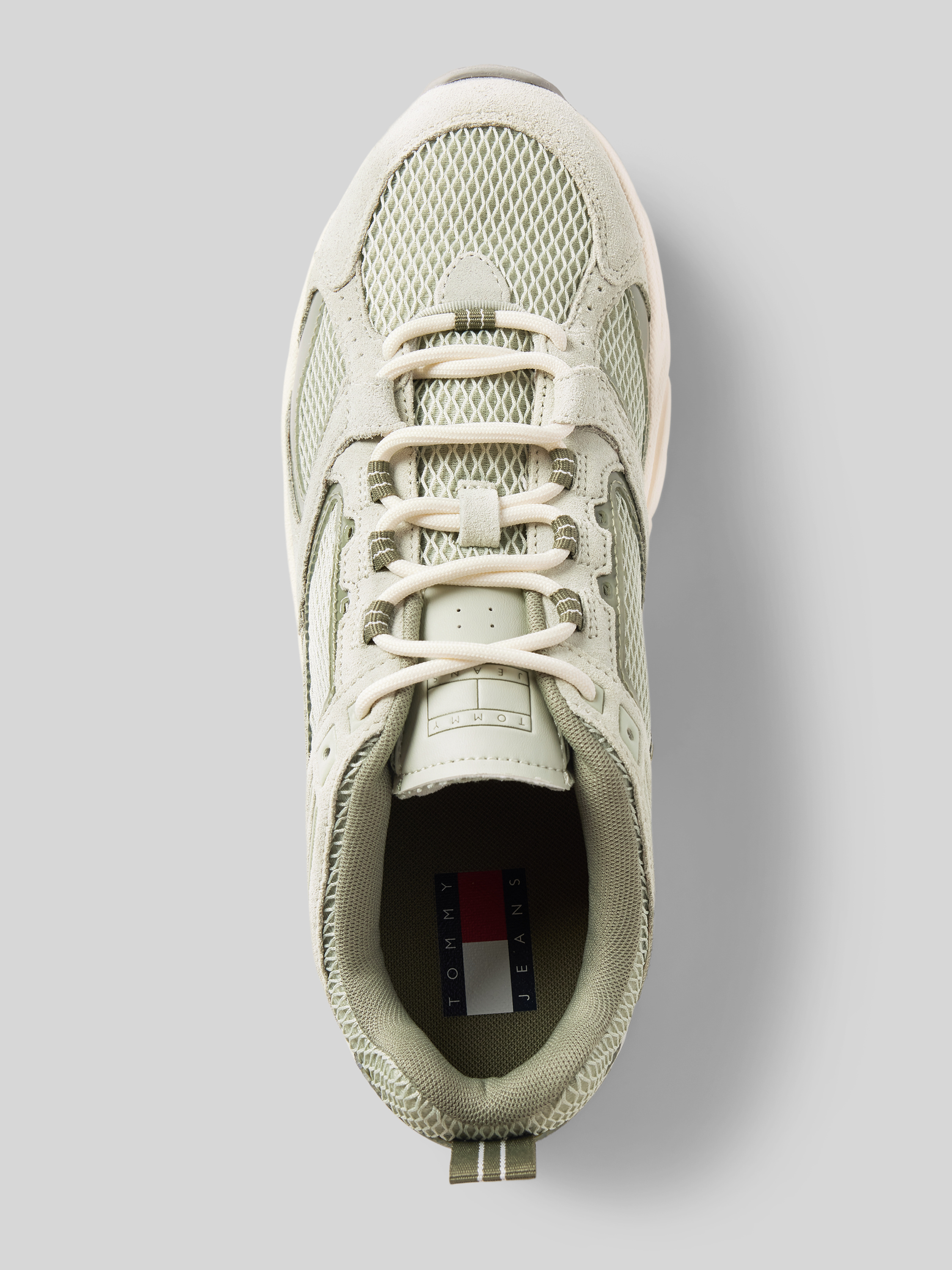 Der Herren Low Top Sneaker von Tommy Jeans kombiniert eine abgerundete Form mit Two-Tone-Optik und strukturiert dämpfender Sohle. Rindsleder-Details unterstreichen die hochwertige Verarbeitung, während der Materialmix aus Wildleder und Textil für angenehmen Tragekomfort sorgt. So eignet sich das Modell vielseitig im Alltag.