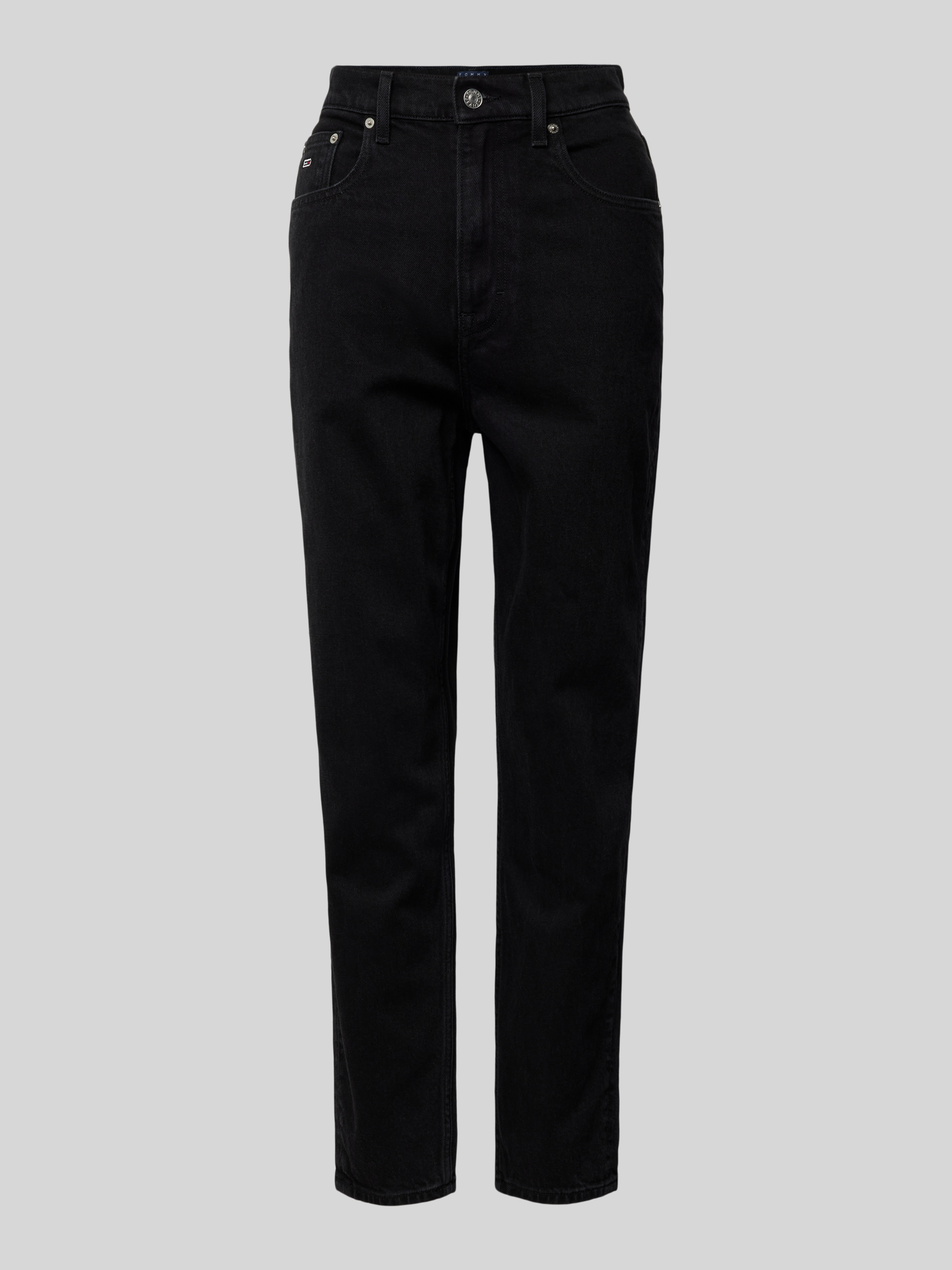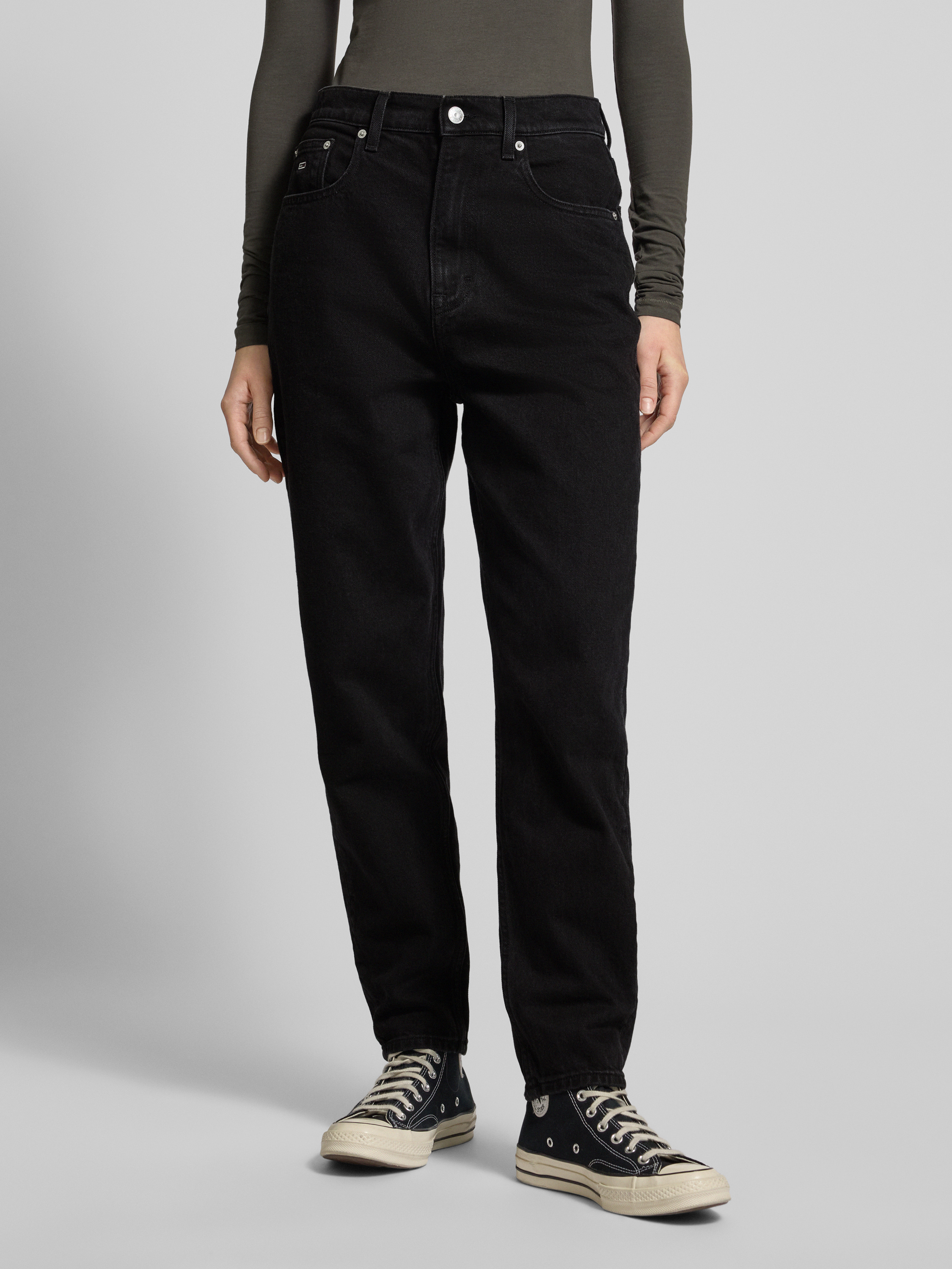 Die Mom Fit Jeans von Tommy Jeans kombiniert einen Baumwoll-Mix mit einem bequemen High-Waist-Schnitt, der sich ideal für einen lässigen Look eignet. Gürtelschlaufen und das 5-Pocket-Design fügen praktische Details hinzu, während das subtile Logo-Stitching eine dezente Markennote setzt.