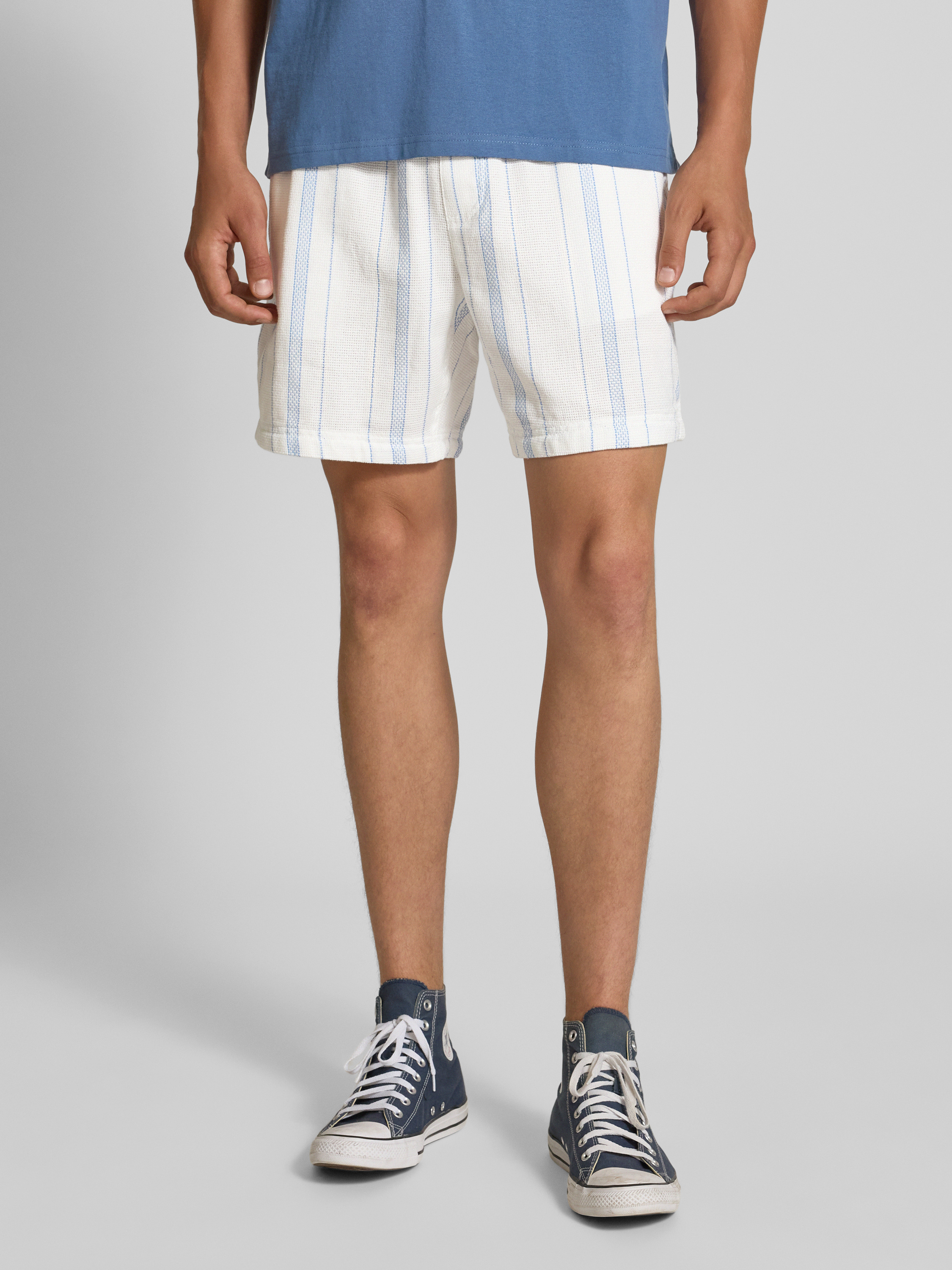 Die Herren Shorts von Tommy Jeans fallen durch ihr gestreiftes Allover-Muster ins Auge und sitzen dank Regular Fit angenehm locker. Reine Baumwolle sorgt für ein luftiges Tragegefühl, während praktische Eingrifftaschen und ein elastischer Bund Alltag und Freizeit unkompliziert gestalten. Label Stitching rundet das Design dezent ab.