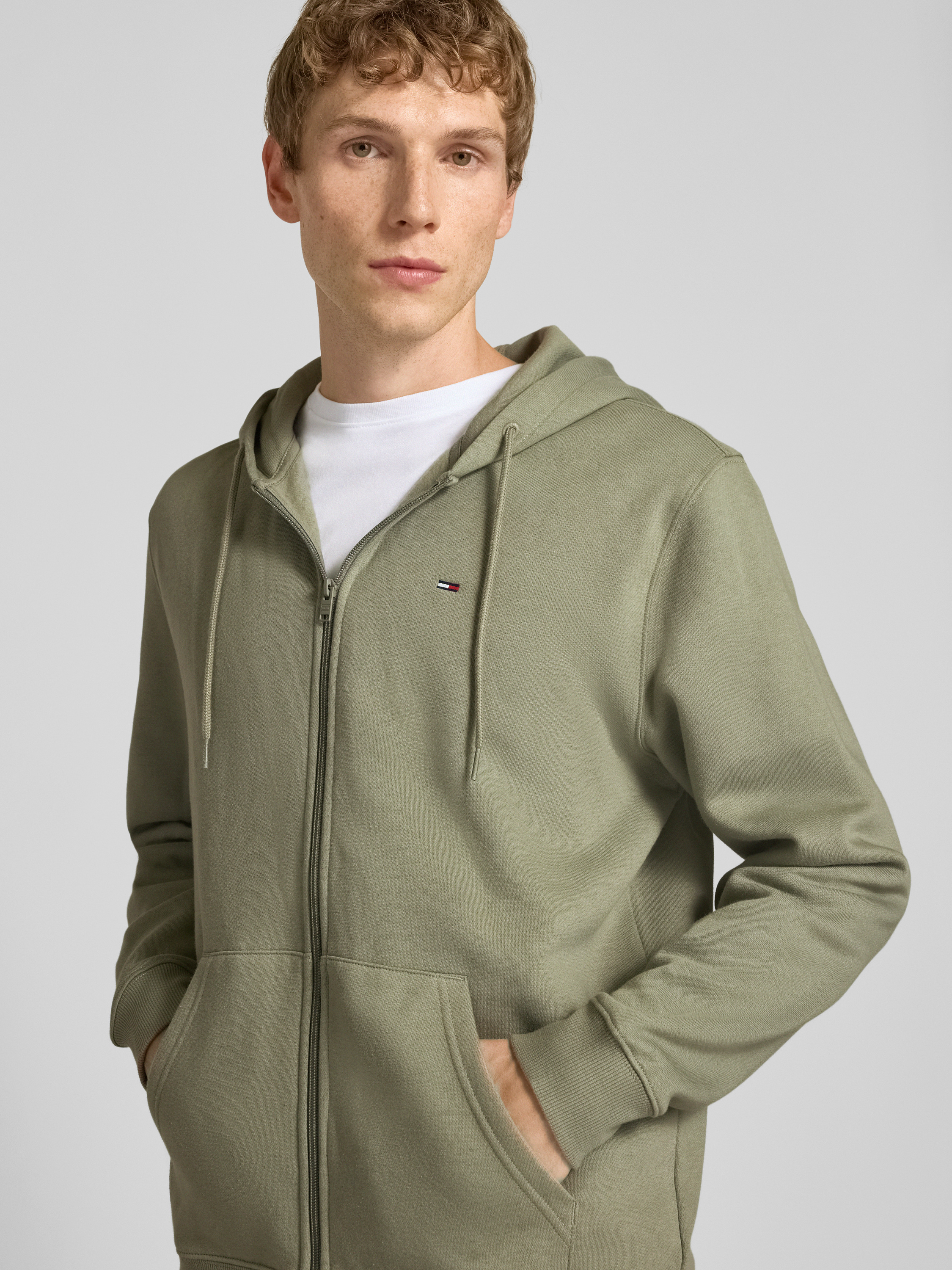 Die Regular Fit Sweatjacke von Tommy Jeans präsentiert sich in klassischer Unifarbe und bietet mit ihrer lockeren Passform angenehmen Komfort im Alltag. Dank weichem Baumwoll-Mix fühlt sich das Material auf der Haut besonders angenehm an. Eine Kapuze mit Tunnelzug ergänzt das sportliche Design funktional.