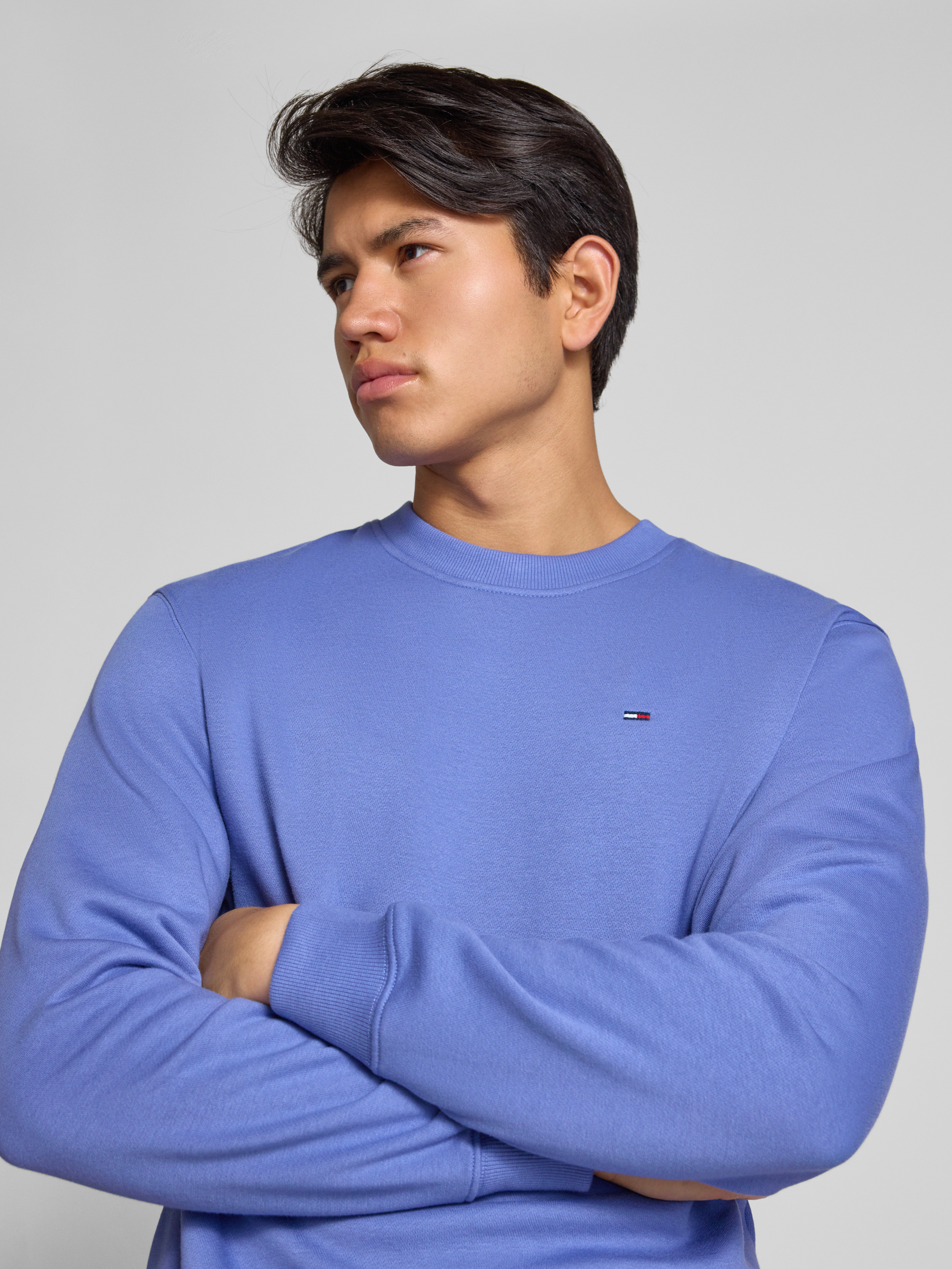 Das Herren Sweatshirt von Tommy Jeans im Regular Fit legt sich angenehm an den Körper und sorgt durch den Baumwoll-Mix für ein ausgewogenes Tragegefühl im Alltag. Das schlichte Design in Unifarbe wird dezent durch ein Logo-Stitching ergänzt. Mit klassischem Rundhalsausschnitt und langen Ärmeln entsteht ein zeitgemäßes Gesamtbild.