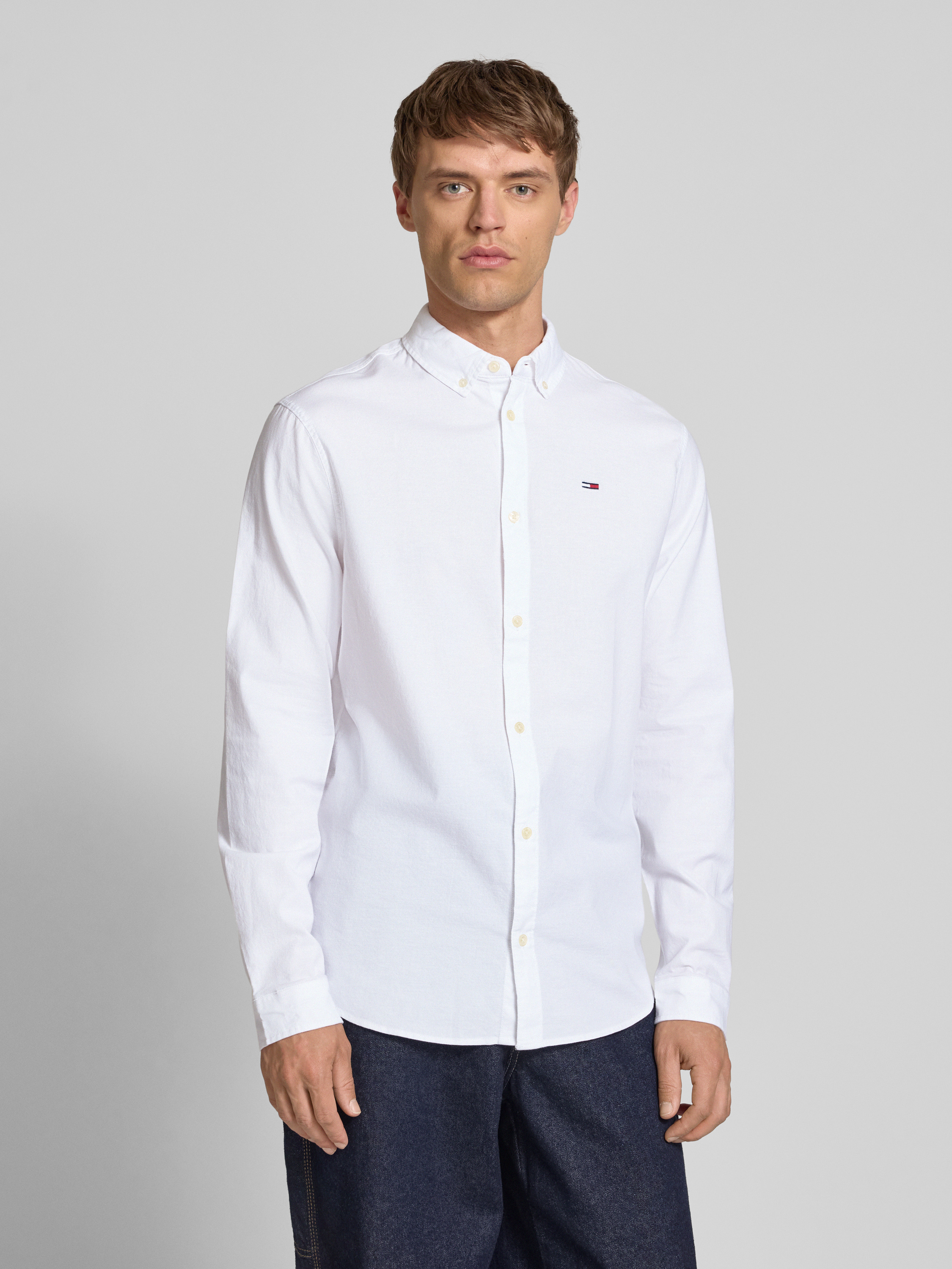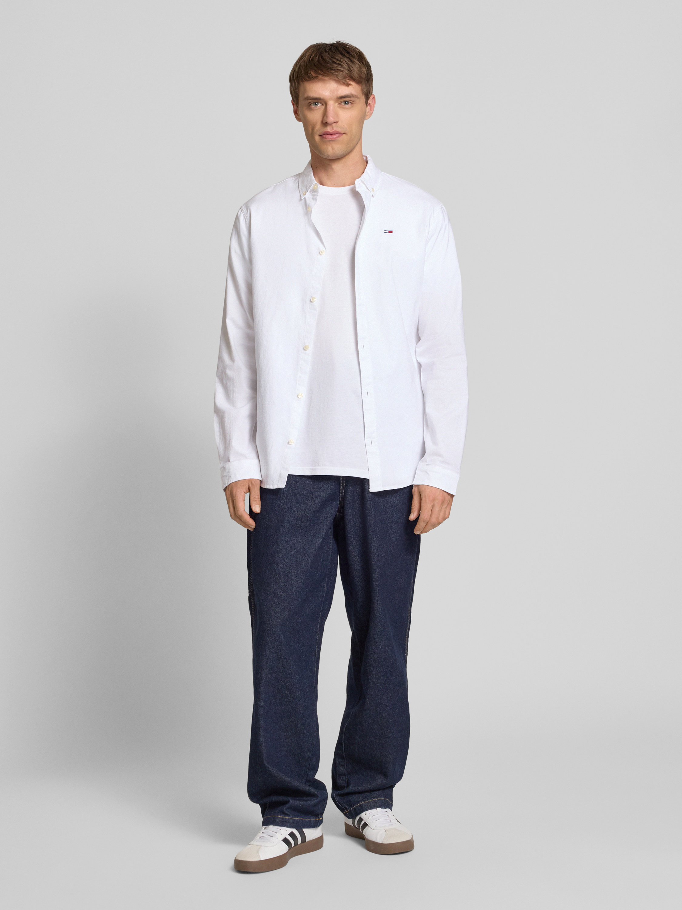 Das Slim Fit Freizeithemd aus Oxford von Tommy Jeans kombiniert lässige Eleganz mit einem angenehmen Tragegefühl. Der Baumwoll-Elasthan-Mix sorgt für Flexibilität, während das Webmuster und der Button-Down-Kragen stilvolle Akzente setzen. Ideal geeignet für verschiedene Anlässe im Alltag.