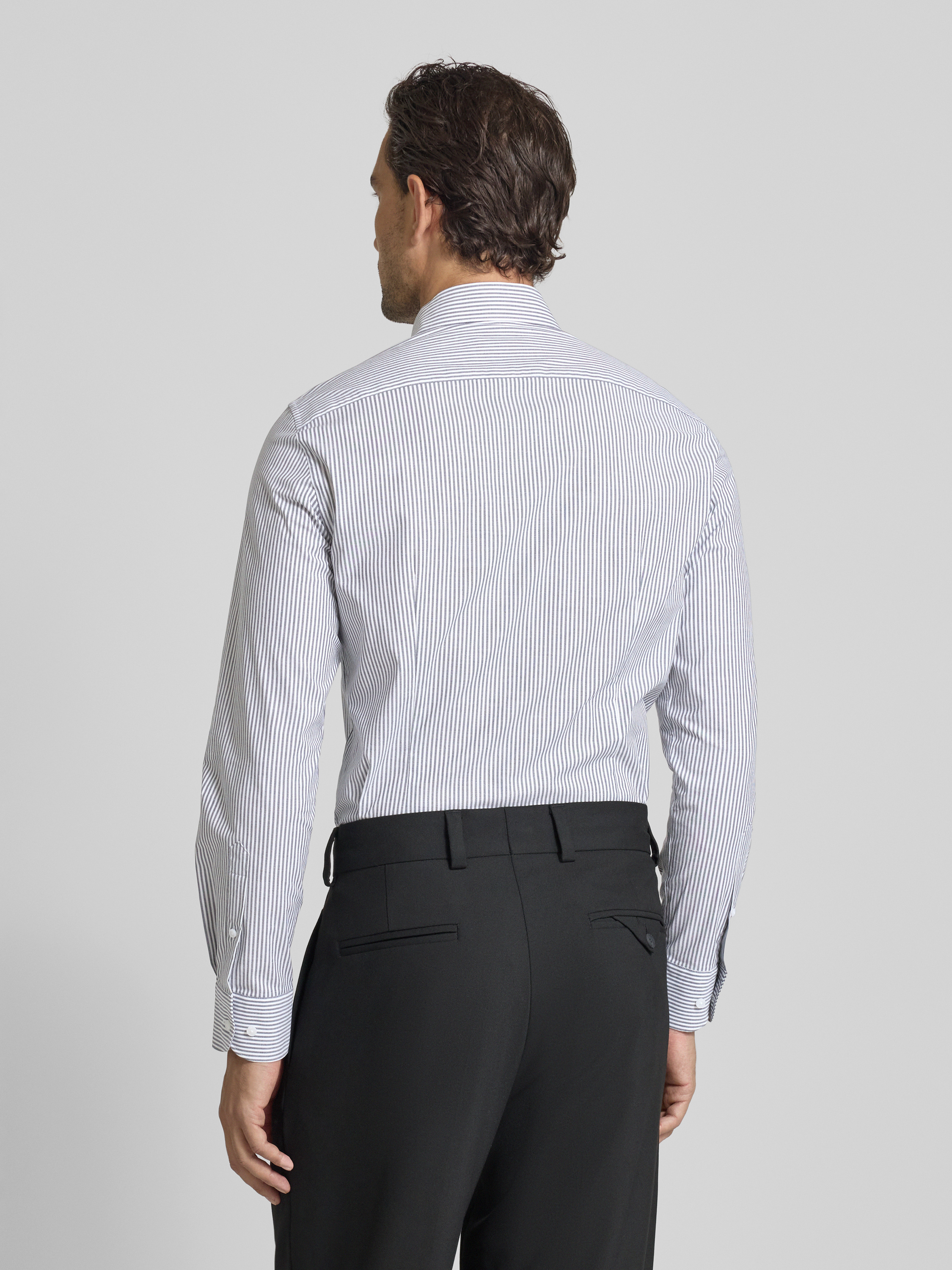 Das Herrenhemd von Tommy Hilfiger Tailored präsentiert sich im schmalen Schnitt und betont durch das feine Allover-Streifenmuster einen modernen Stil. Durch den klassischen Kentkragen und die durchdachte Popeline-Verarbeitung entsteht ein angenehmes Tragegefühl, das sich für lange Tage im Büro eignet. Dezente Logo-Stickerei und verstellbare Manschetten setzen stilvolle Akzente.