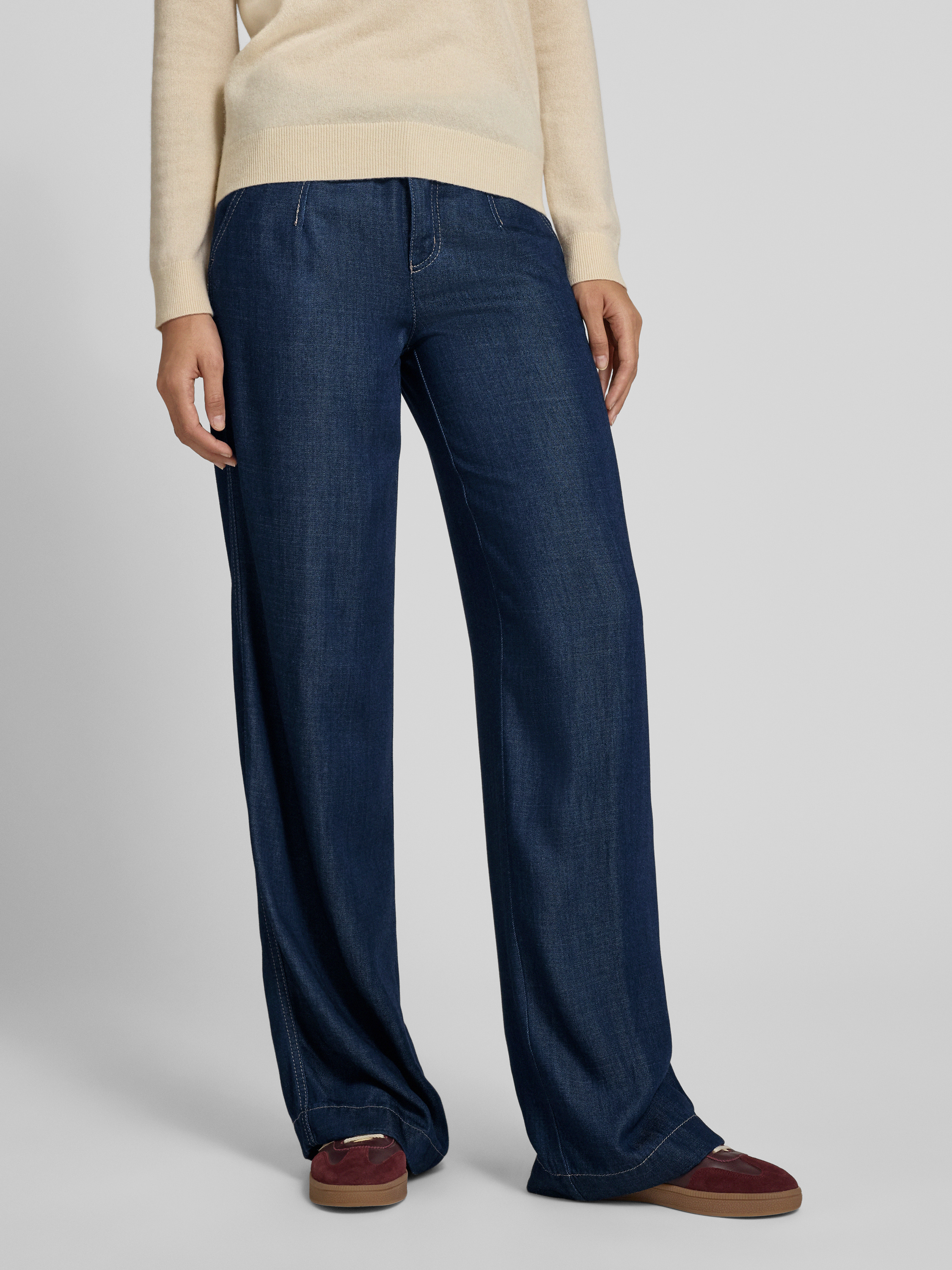 Die Stoffhose von TONI, Modell 'liv', fällt durch ihren lockeren Schnitt angenehm lässig und sorgt so für angenehme Bewegungsfreiheit im Alltag. Der Viskose-Mix fühlt sich weich auf der Haut an, während französische Eingrifftaschen und Gesäßtaschen praktischen Stauraum bieten. So lässt sich vielseitiger Komfort mit einem modernen Look verbinden.