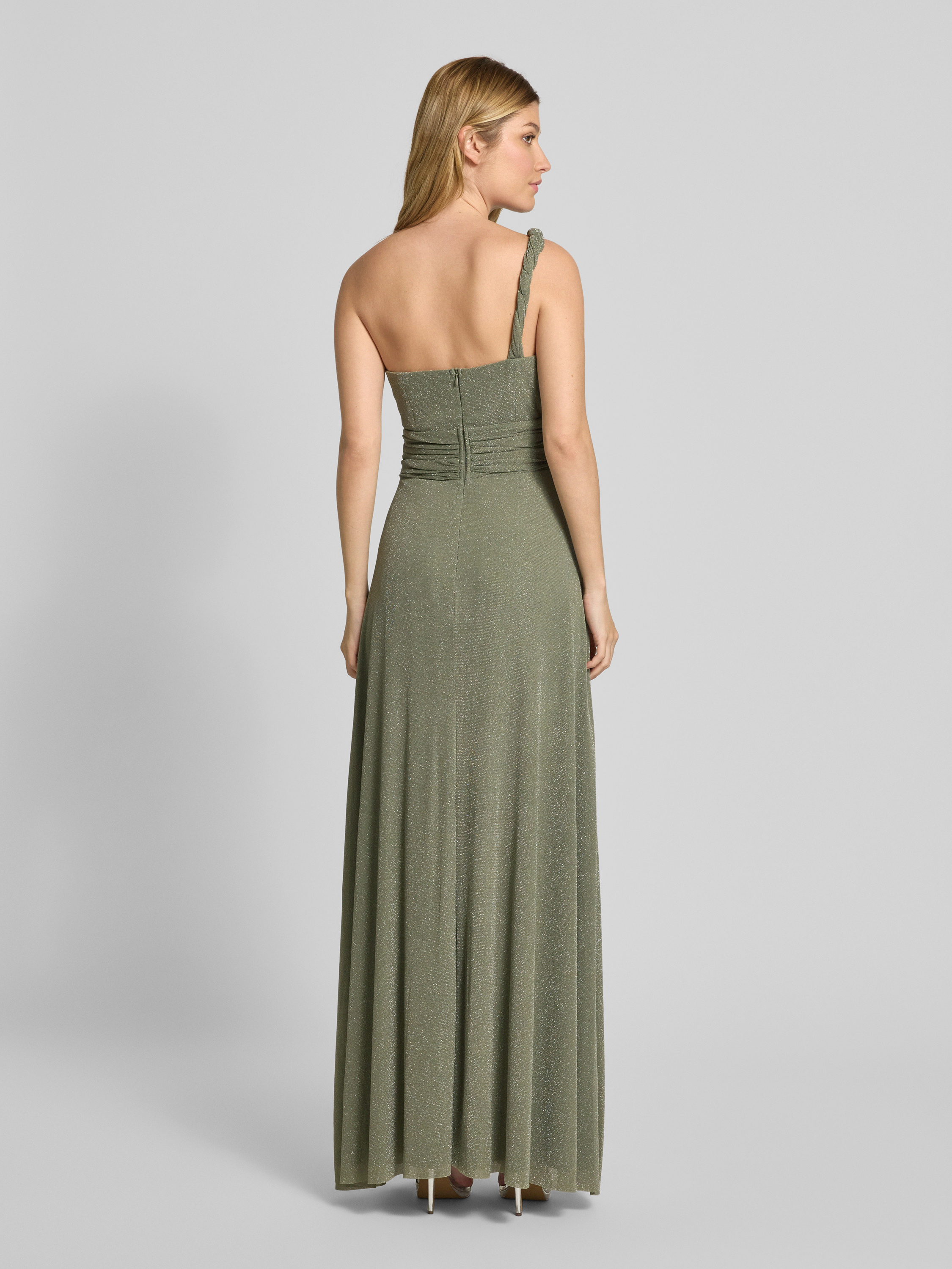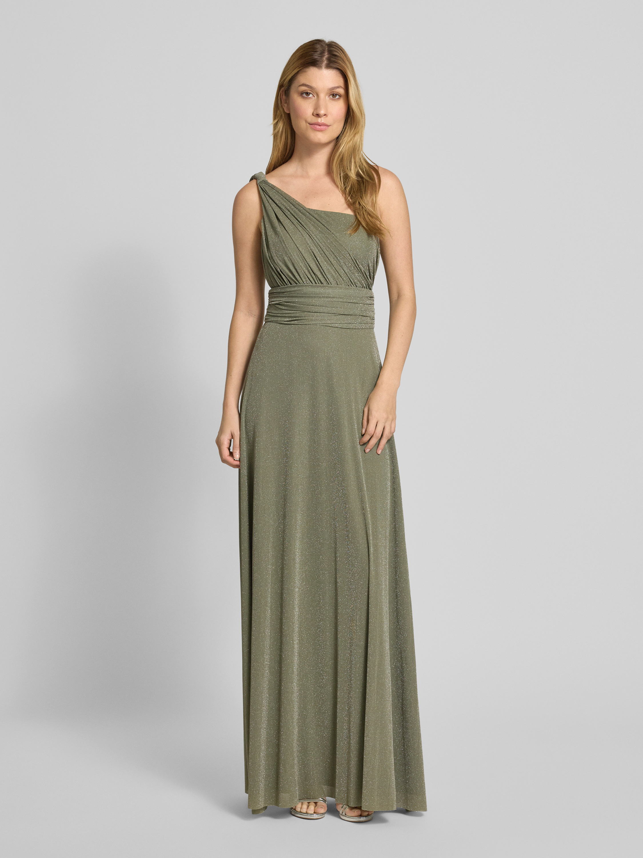 TROYDEN COLLECTIONAbendkleid mit One-Shoulder-Träger und Taillenband in oliv