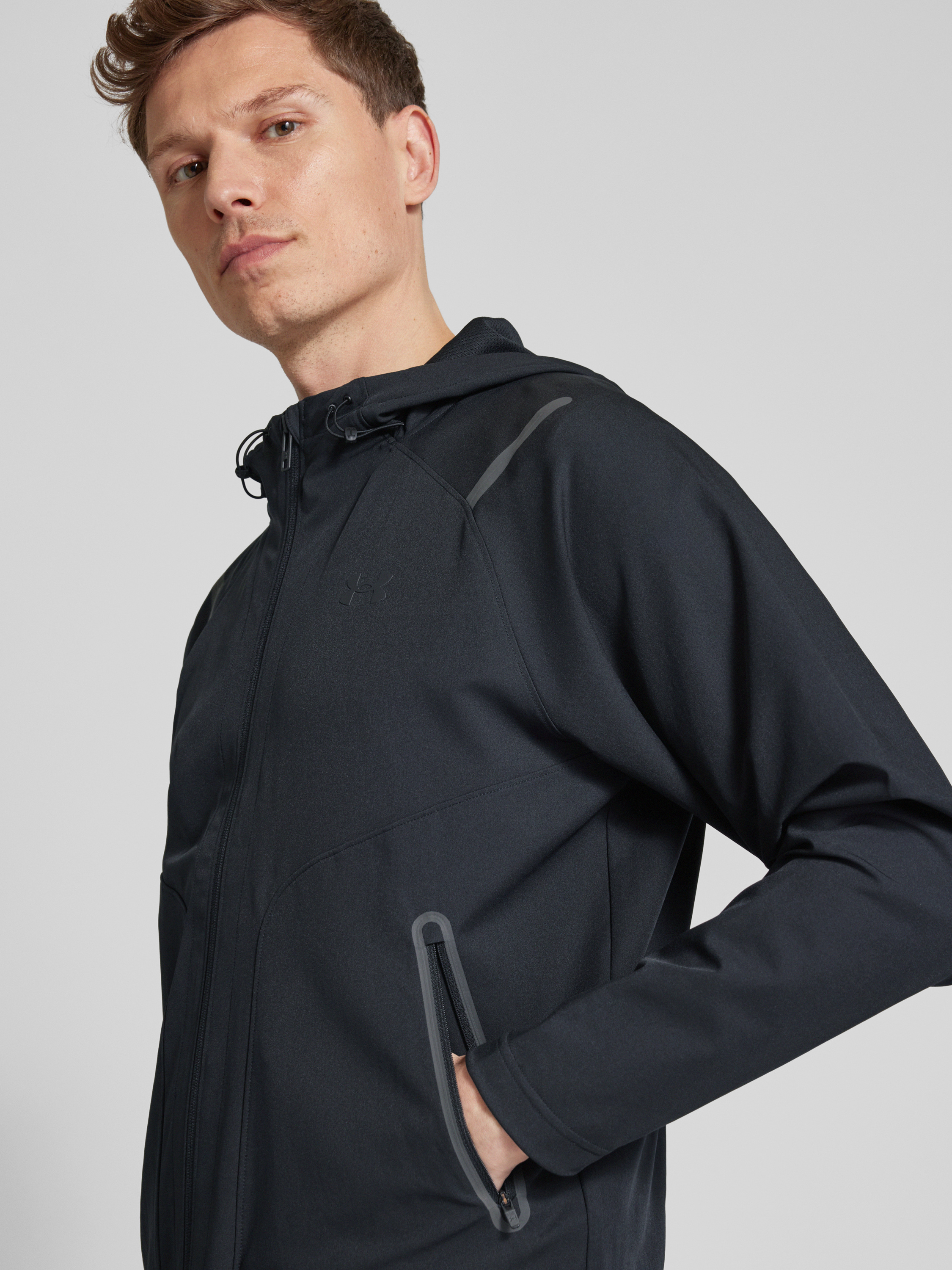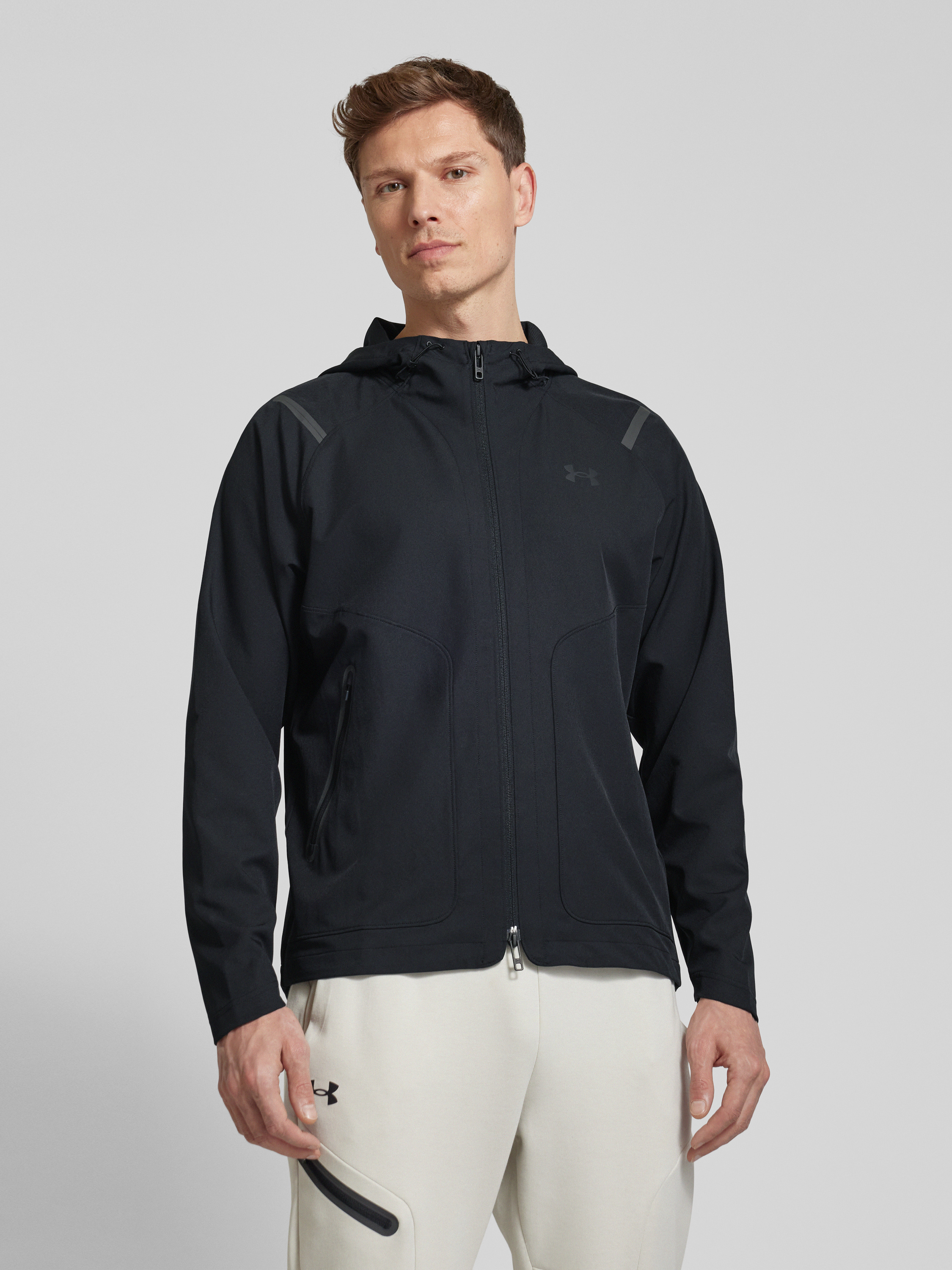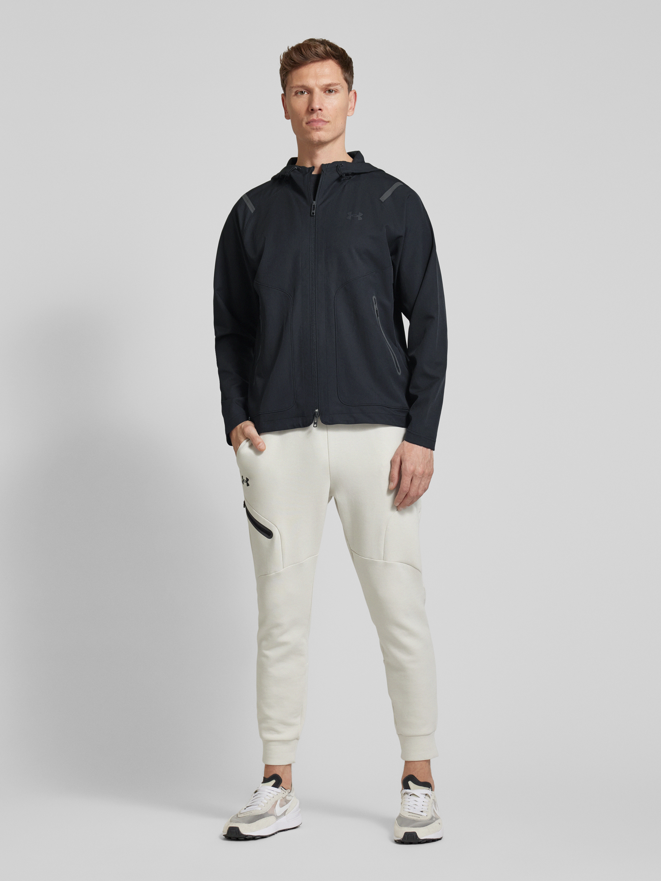 Die Herrenjacke 'Unstoppable' von Under Armour kombiniert einen Material-Mix mit Stretch-Anteil und geradem Schnitt. Der dezente Logo-Print verleiht der Jacke eine sportive Note, während Reißverschlusstaschen praktischen Stauraum bieten. Diese Jacke eignet sich ideal für vielseitige Outdoor-Aktivitäten.