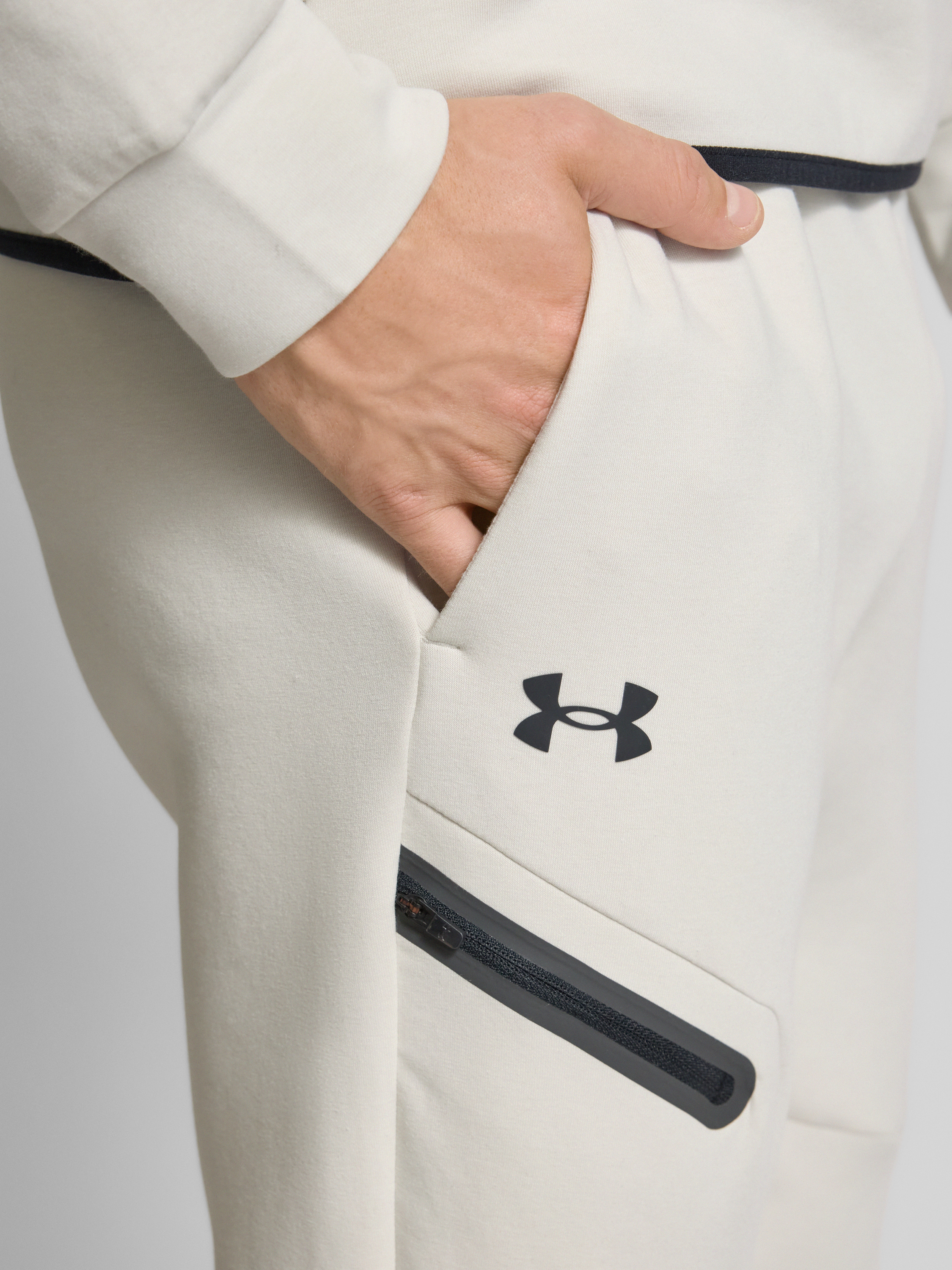 Die Under Armour Sweatpants überzeugen durch ihren lockeren Schnitt und das angenehme Tragegefühl reiner Baumwolle. Der elastische Bund sorgt für Komfort und Flexibilität, während französische Eingrifftaschen praktische Funktionalität bieten. Ein dezenter Label-Print rundet das Design stilvoll ab.