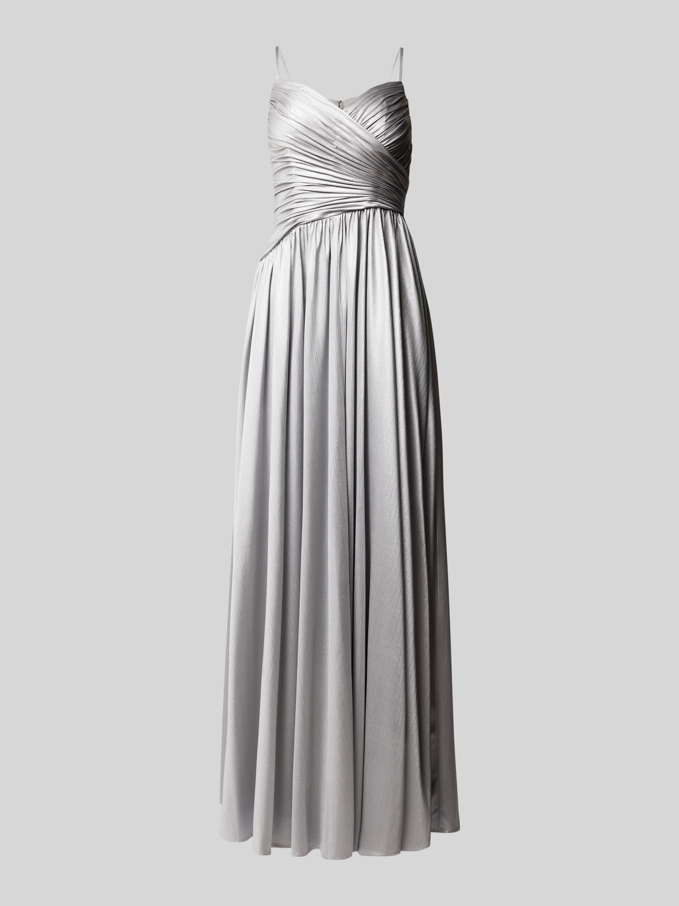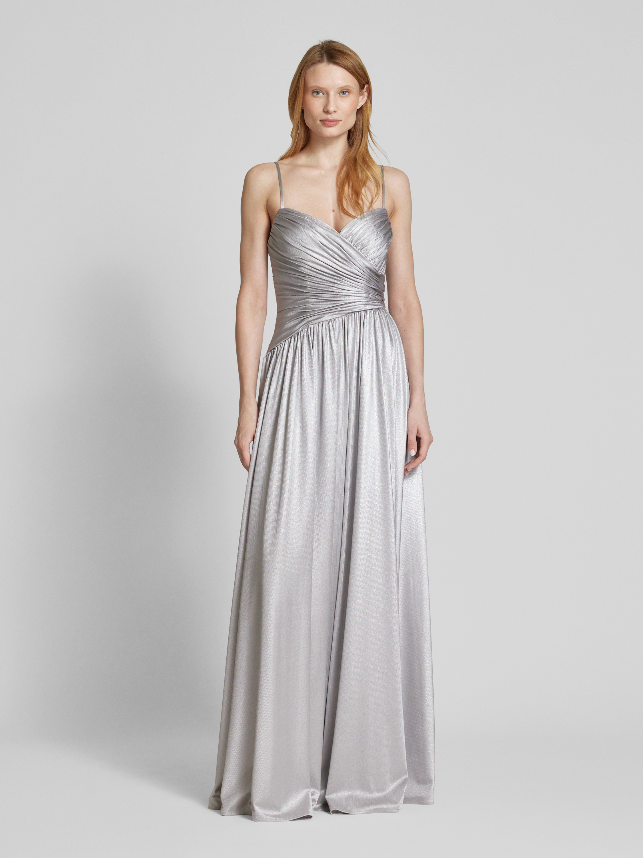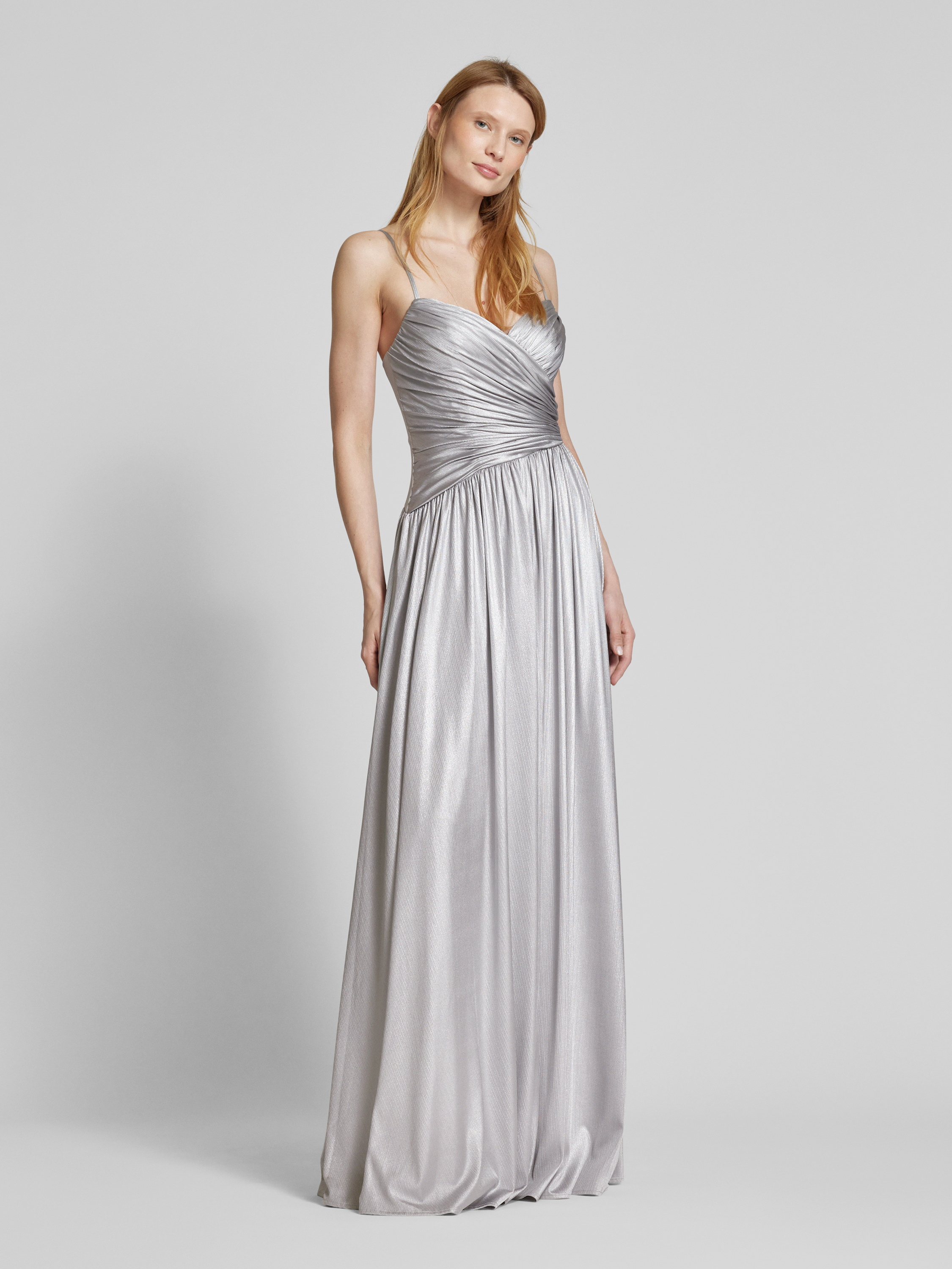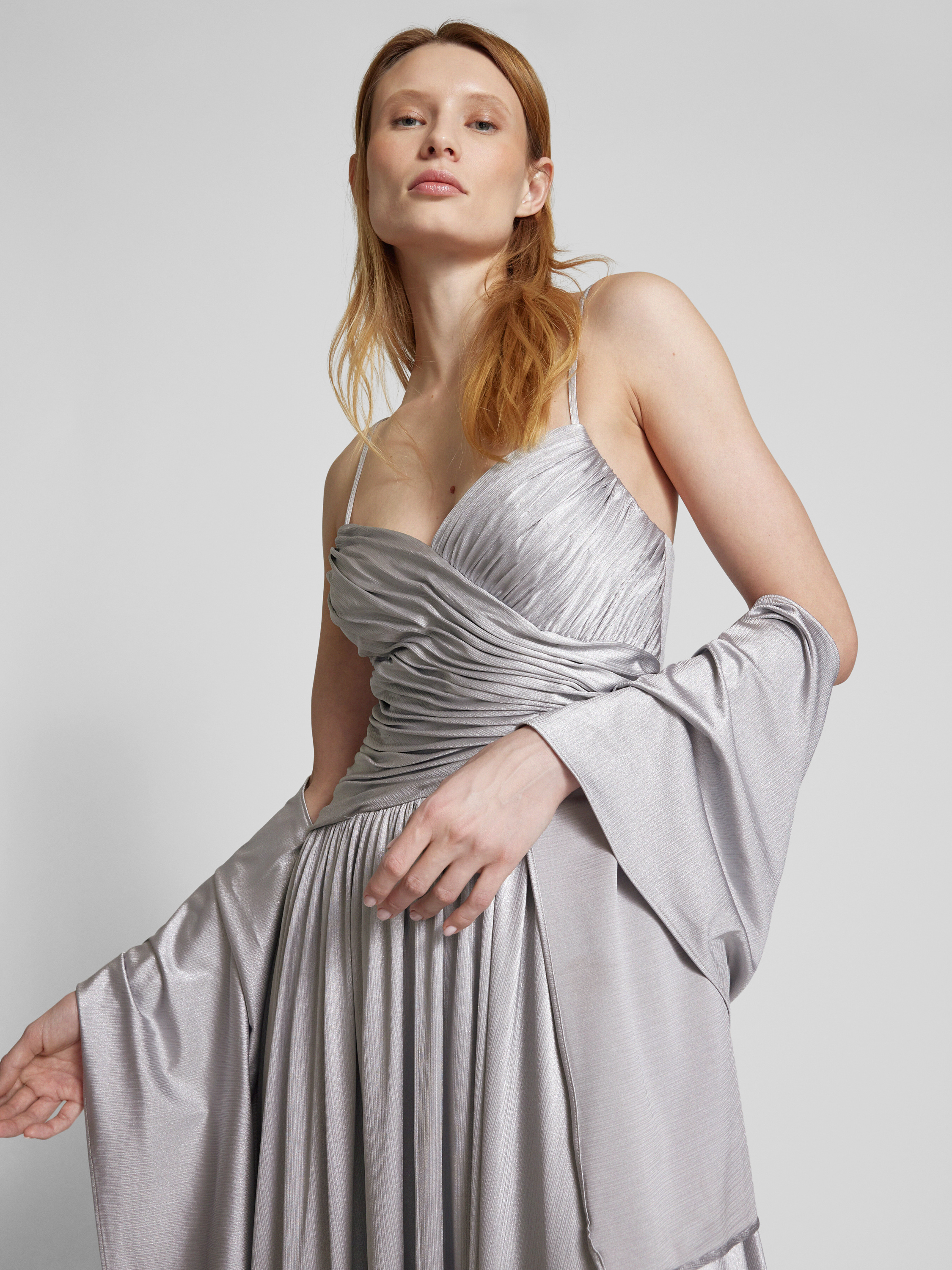 Das einzigartige Abendkleid von unique verleiht mit seinem taillierten Schnitt und dem Herz-Ausschnitt eine elegante Silhouette. Gelegte Falten und die Wickel-Optik sorgen für einen fließenden Look, während Spaghettiträger Leichtigkeit vermitteln. Ideal für besondere Anlässe, bei denen Eleganz zählt.