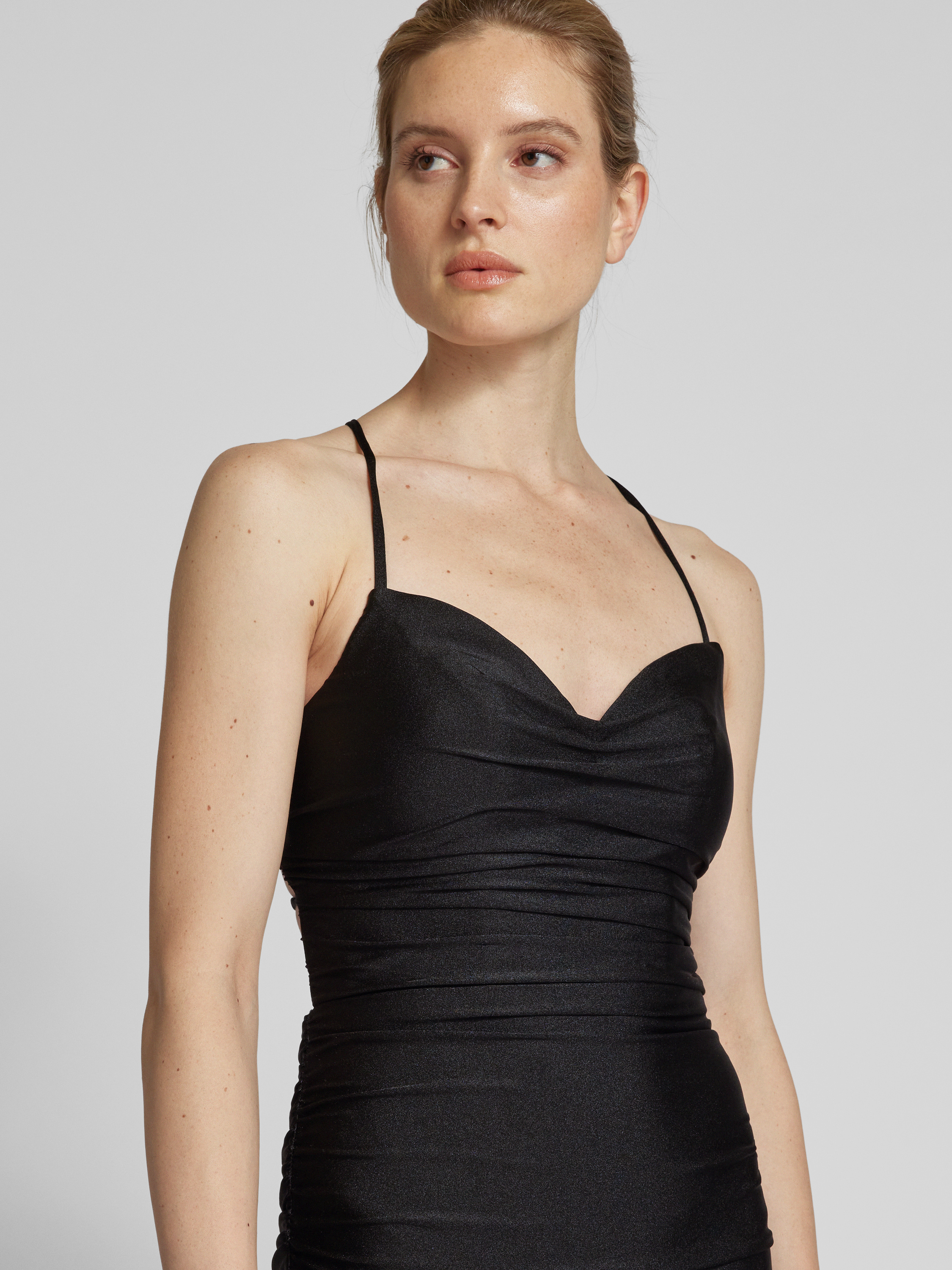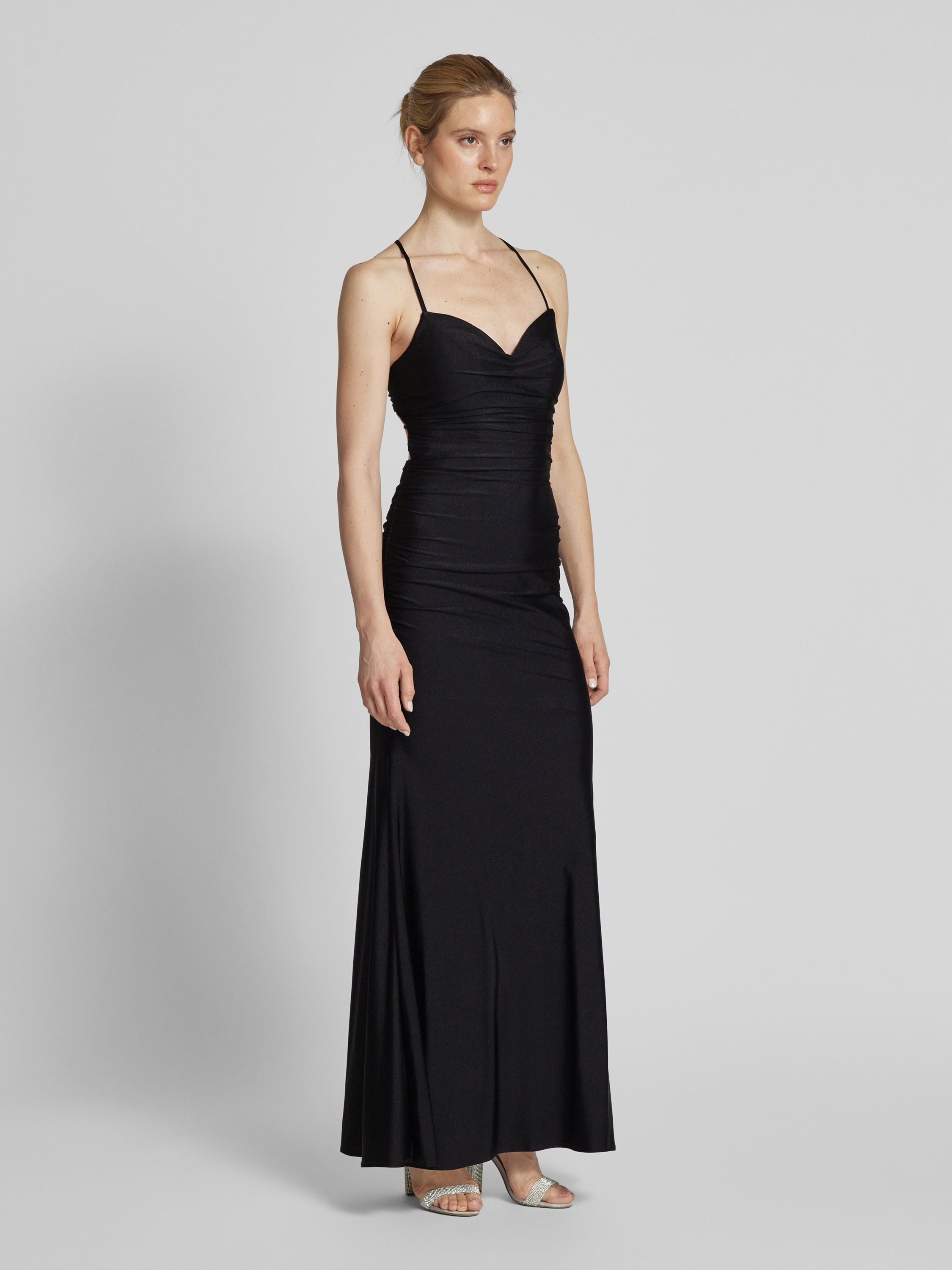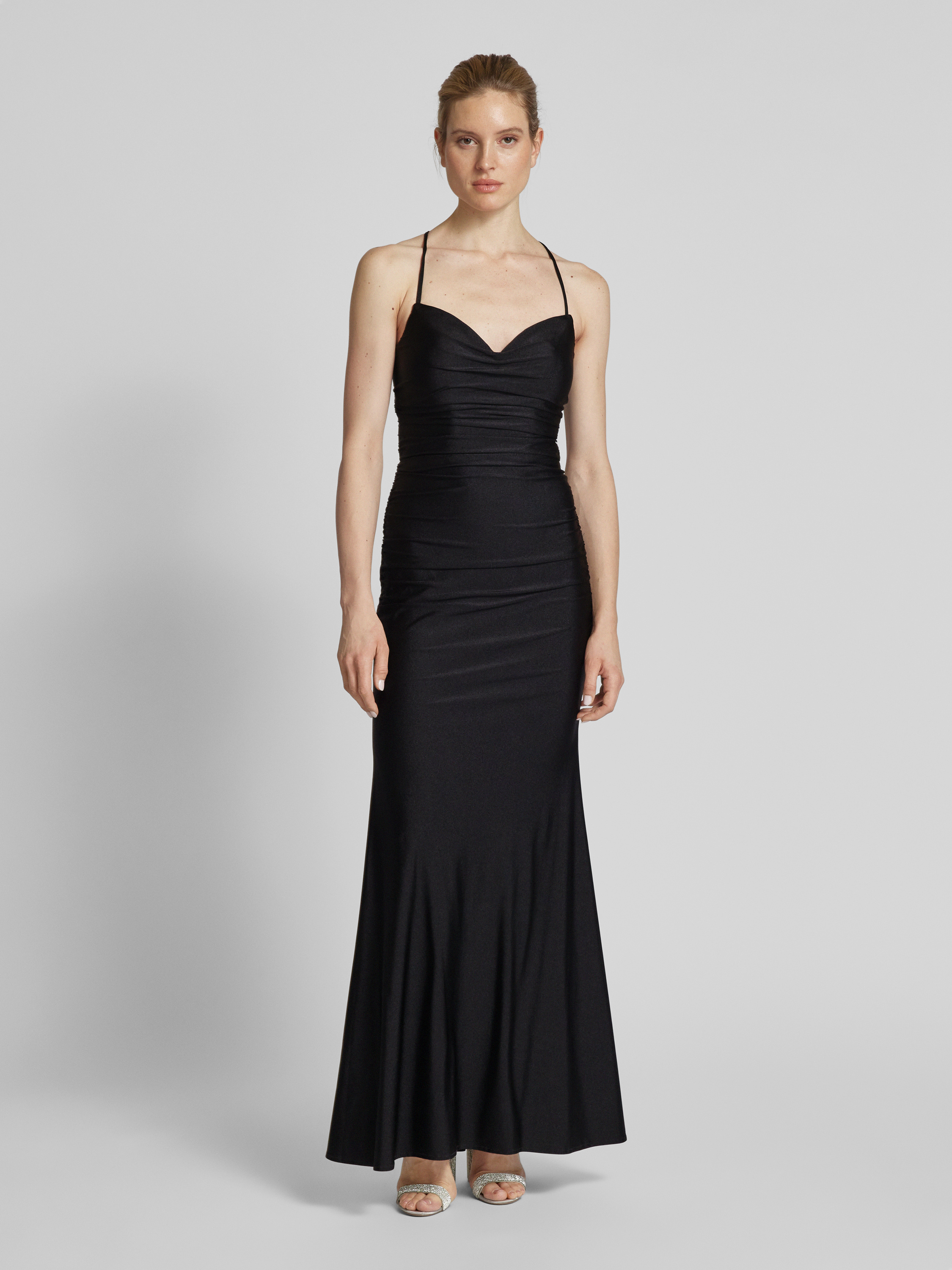 Das Abendkleid mit Raffungen von unique setzt durch seinen taillierten Schnitt die Silhouette gekonnt in Szene, während die Maxilänge eine elegante Wirkung erzeugt. Verstellbare Träger sorgen für Flexibilität beim Tragen. Die raffinierten Falten bringen Dynamik in das Design und schaffen eine besondere Optik.