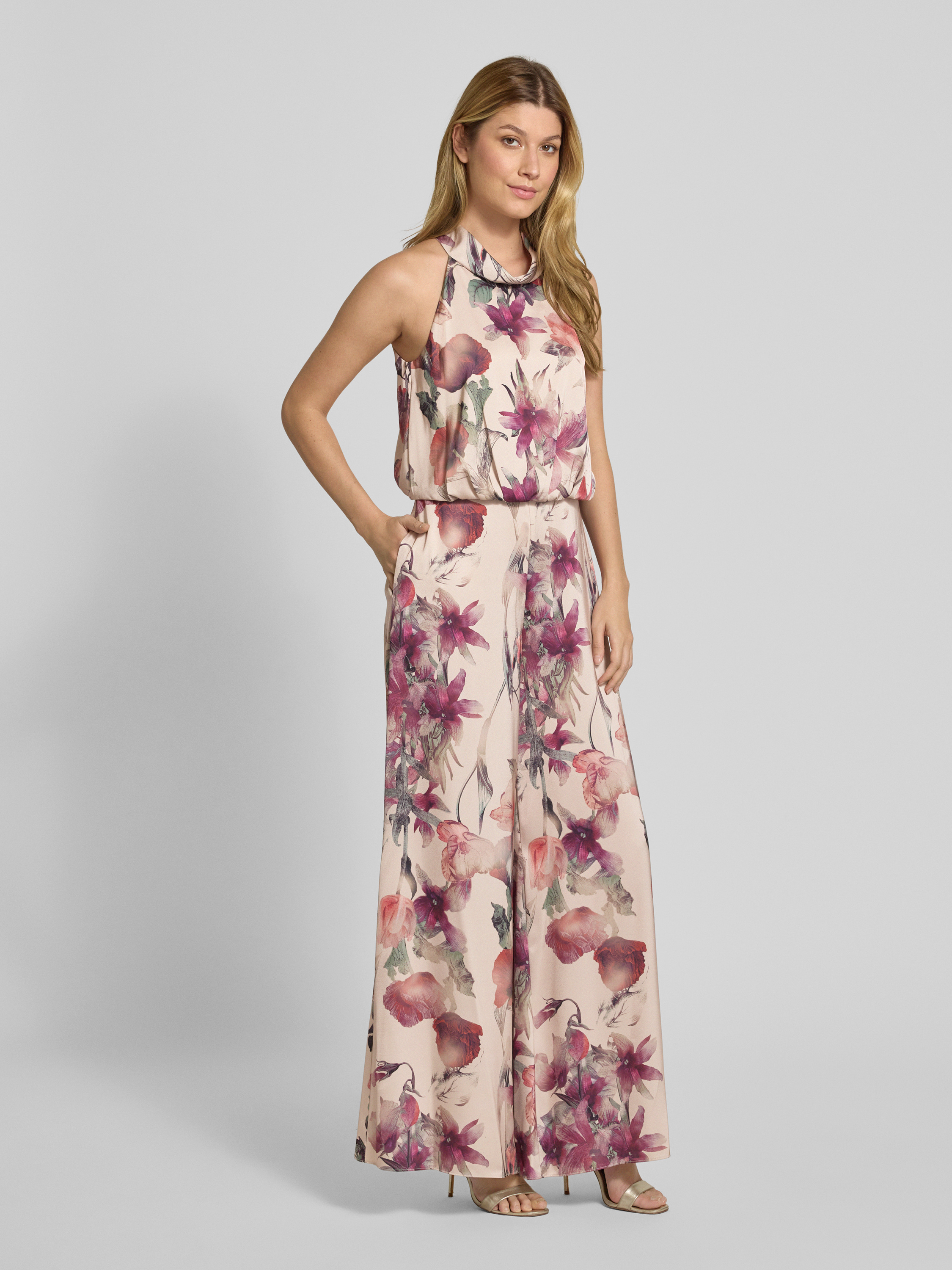 Der elegante Neckholder-Jumpsuit von V by Vera Mont aus fließendem Satin zeichnet sich durch seinen entspannten Schnitt aus. Der Allover-Look verleiht dem Modell eine besondere Note, die sowohl für festliche Anlässe als auch für entspannte Abende geeignet ist. Die luftige Passform bietet angenehmen Tragekomfort.