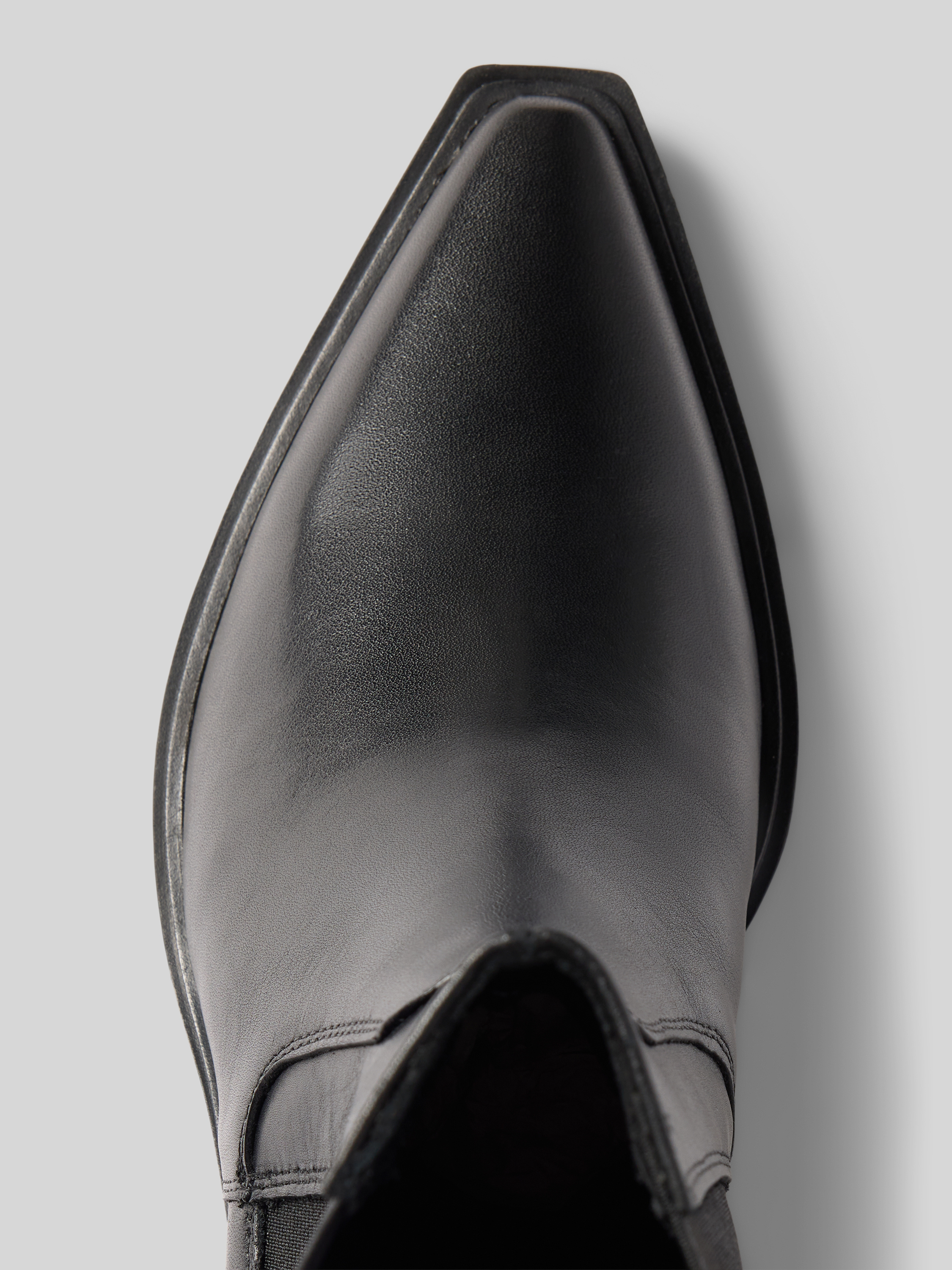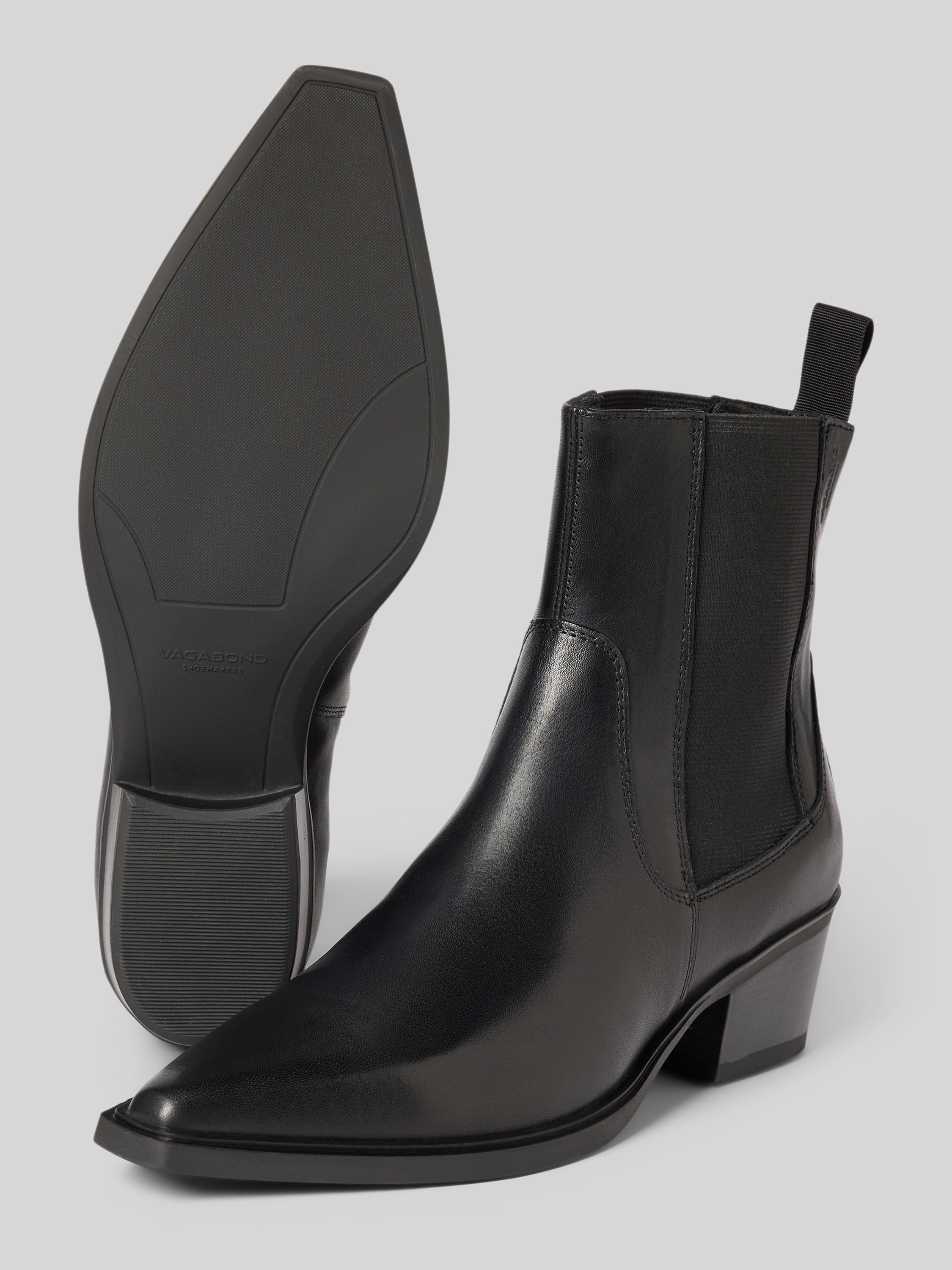 Die Damen Chelsea-Boots von Vagabond, Modell Kelsey, zeigen sich in unifarbener Optik und unterstreichen durch das spitze Design eine klare Linienführung. Echtes Leder sorgt für ein angenehmes Tragegefühl, während der Trichterabsatz dem Auftritt eine elegante Note verleiht. Dank der strukturierten Sohle fühlt man sich auch bei längeren Wegen sicher und komfortabel.