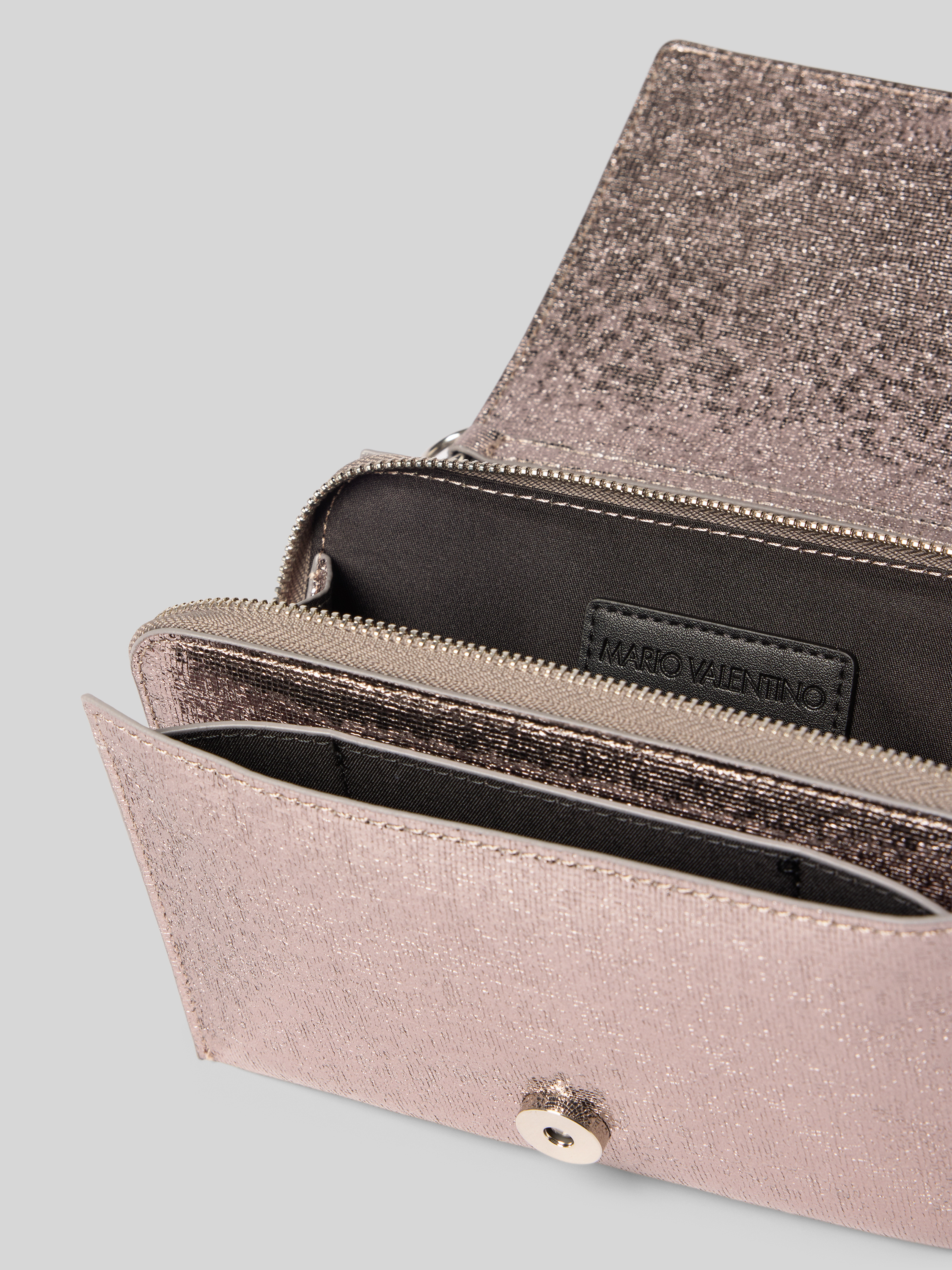 Die Handtasche EMBER von VALENTINO BAGS fällt durch ihre schimmernde Oberfläche ins Auge und ergänzt vielseitige Looks auf dezente Weise. Das Hauptfach mit Überschlag und Magnetverschluss sorgt für eine unkomplizierte Handhabung im Alltag. Dank des Schulterriemens lässt sich die Tasche bequem tragen, während die Label-Applikation einen modischen Akzent setzt.
