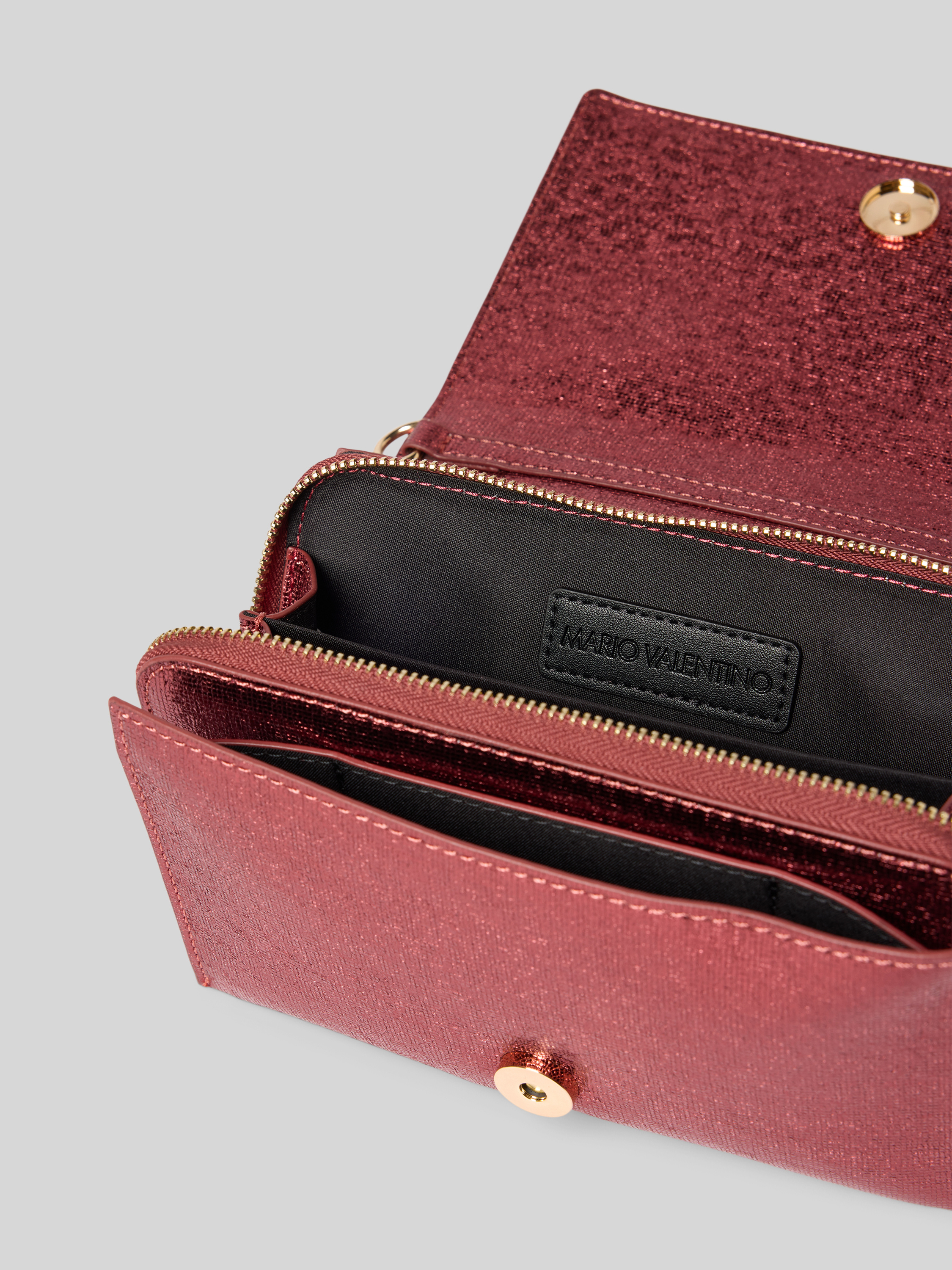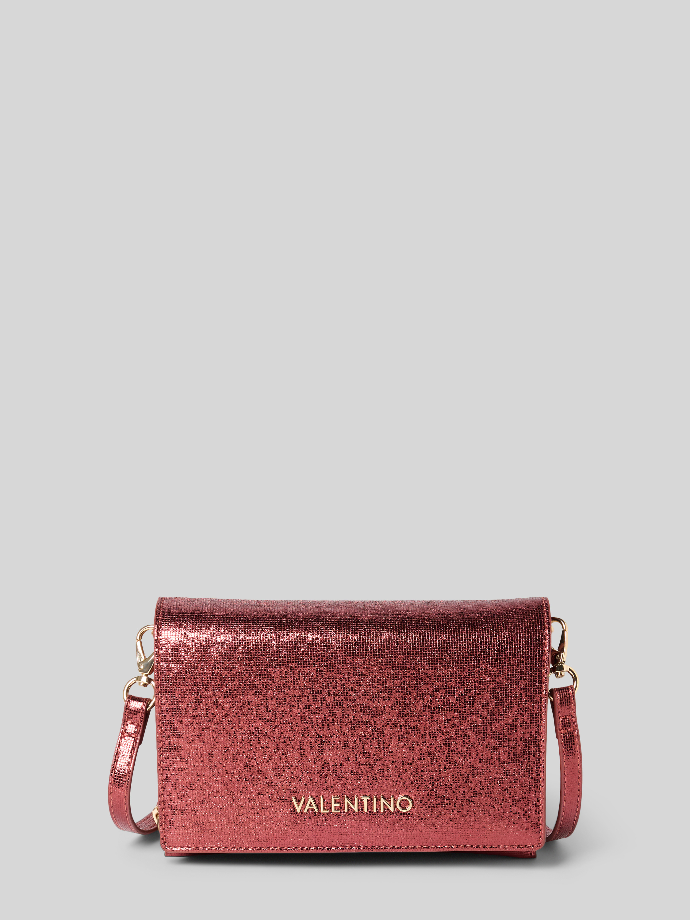 VALENTINO BAGSSchimmernde Handtasche mit Label-Applikation Modell 'EMBER' in bordeaux