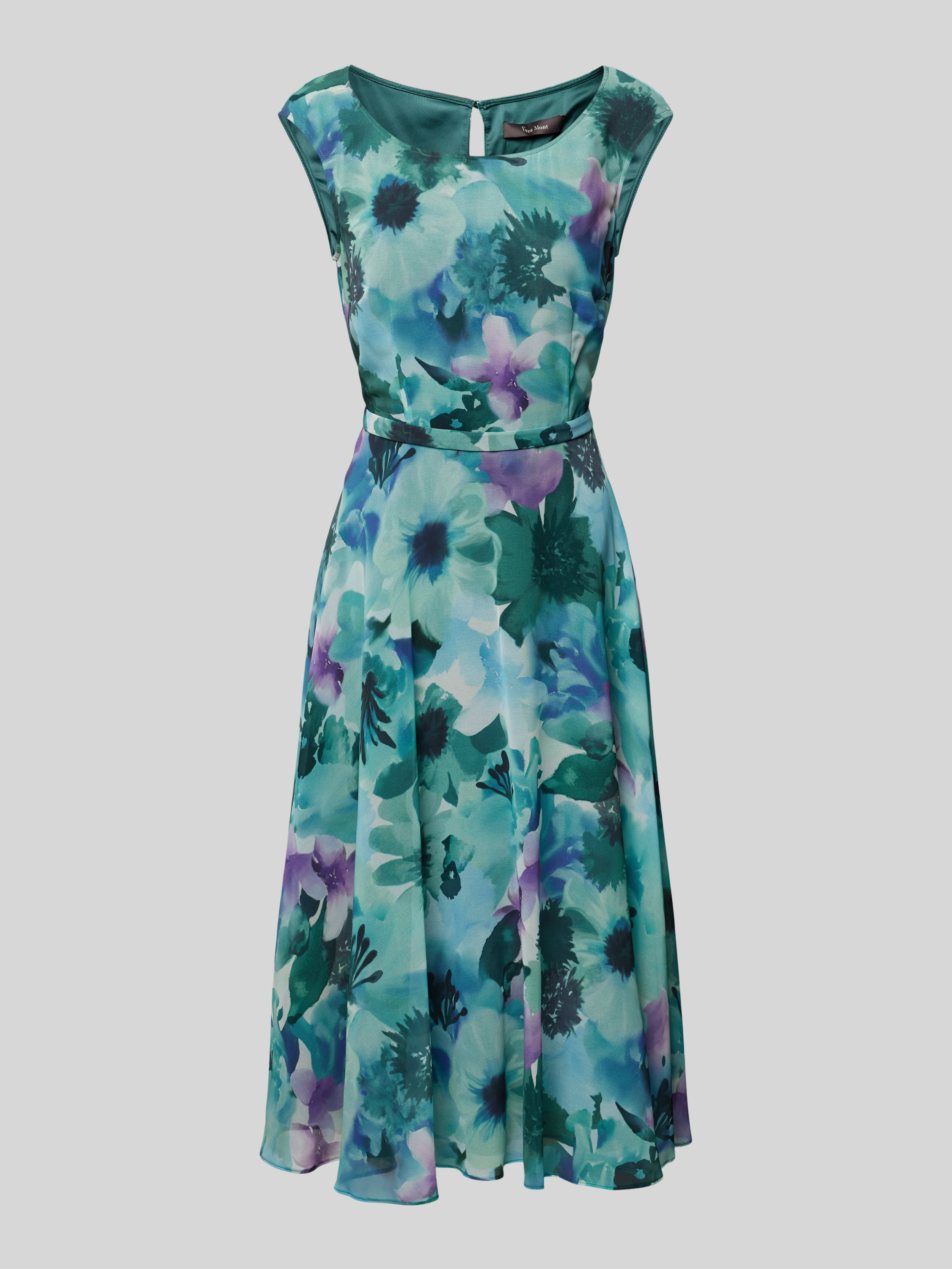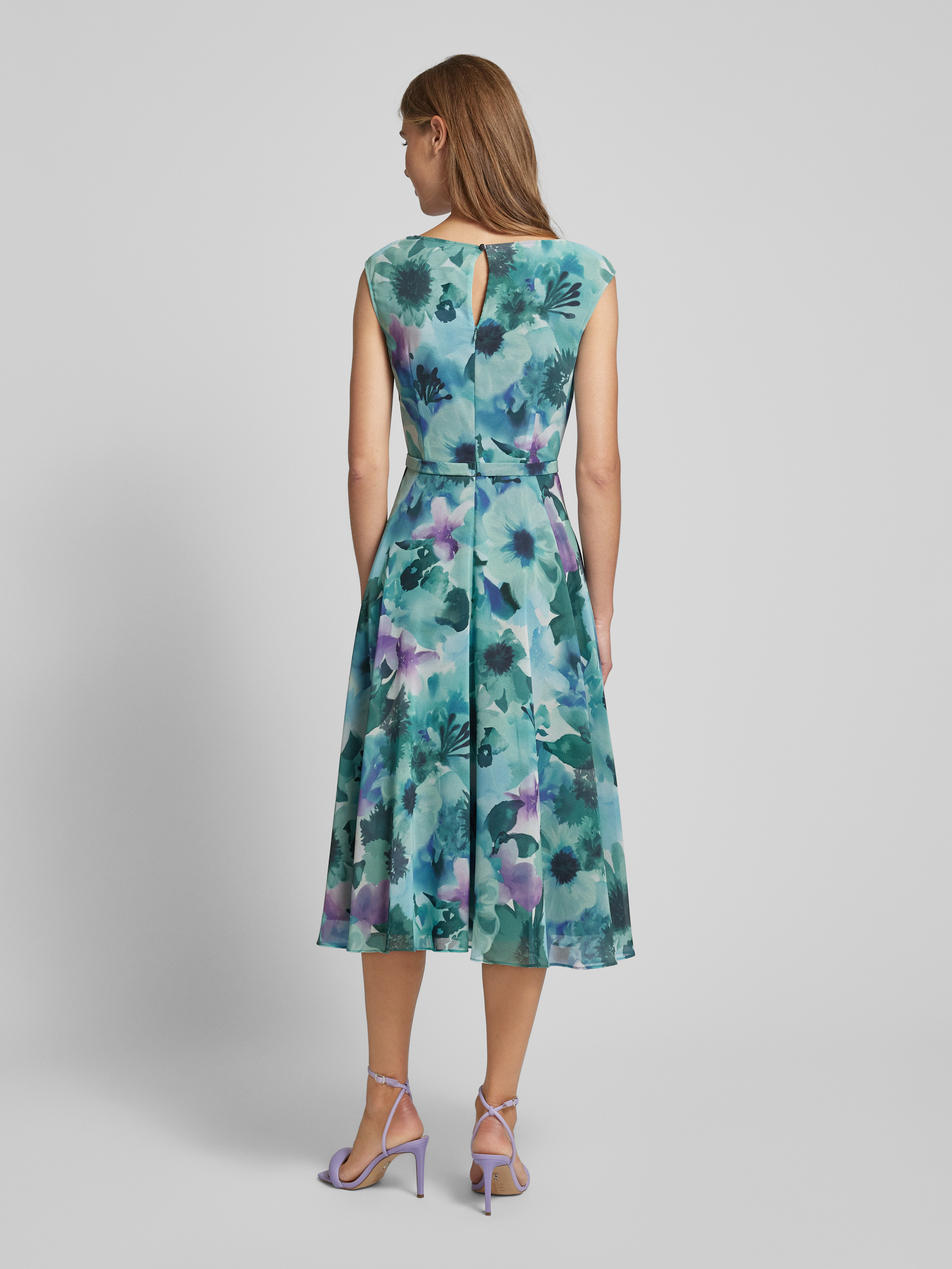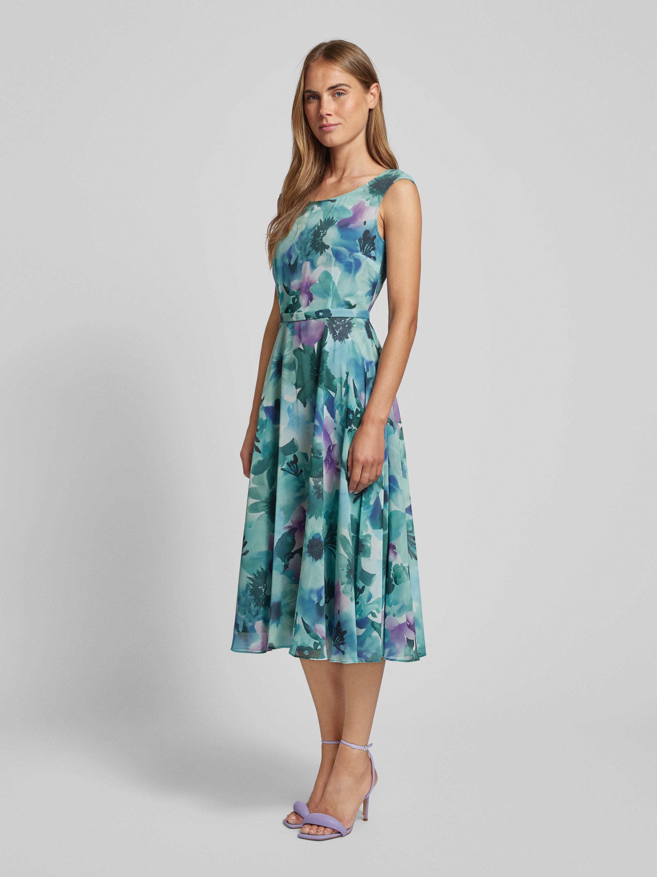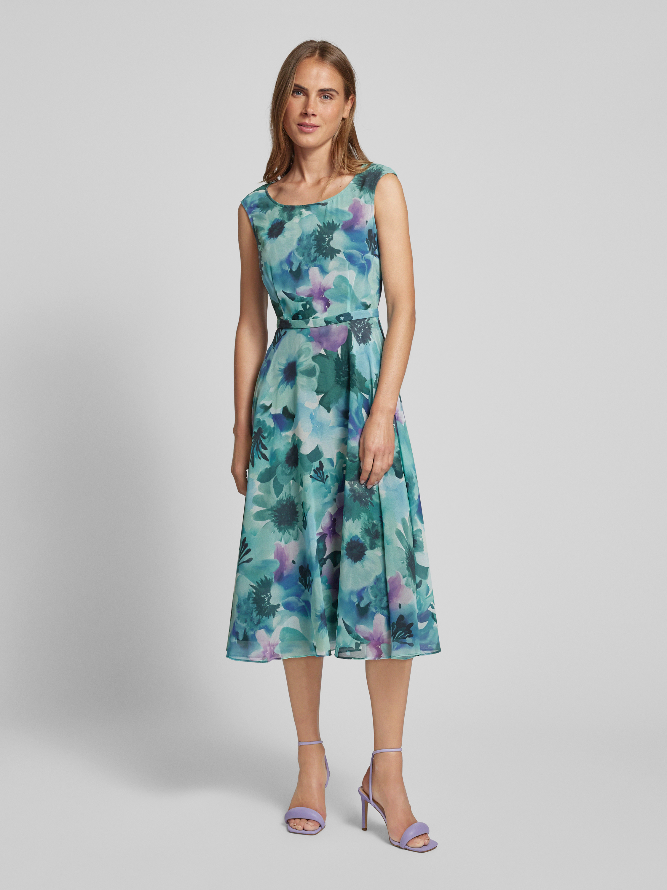 Das Damen Cocktailkleid von Vera Mont wirkt durch den fließenden Chiffon und den taillierten Schnitt besonders leicht. Die Taillenpasse mit fein gelegten Falten betont die Silhouette, während der Rundhalsausschnitt dem Midikleid einen klassischen Akzent verleiht. So eignet sich das Modell für festliche Anlässe.