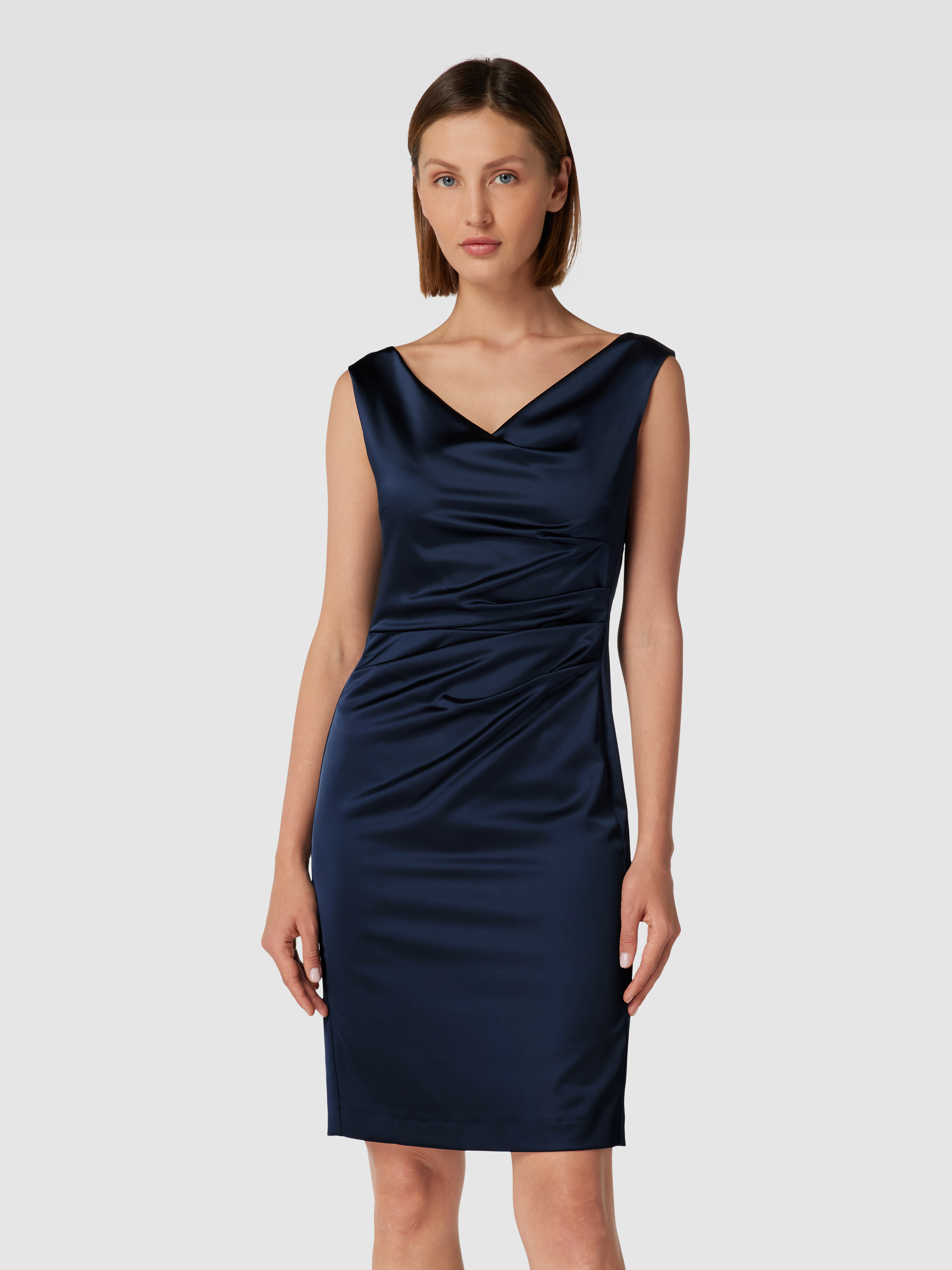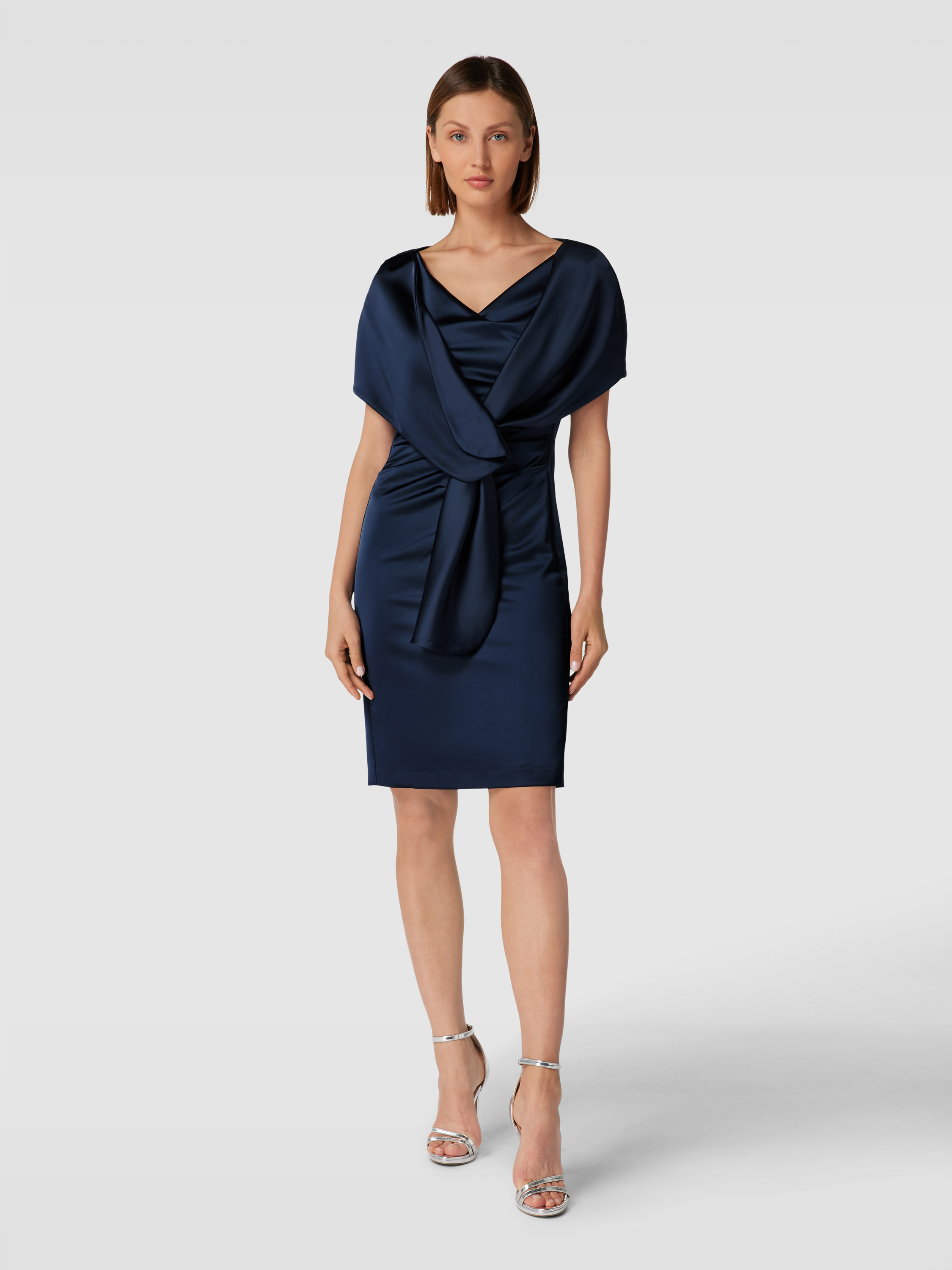 Vera MontCocktailkleid mit Wasserfall-Ausschnitt in dunkelblau
