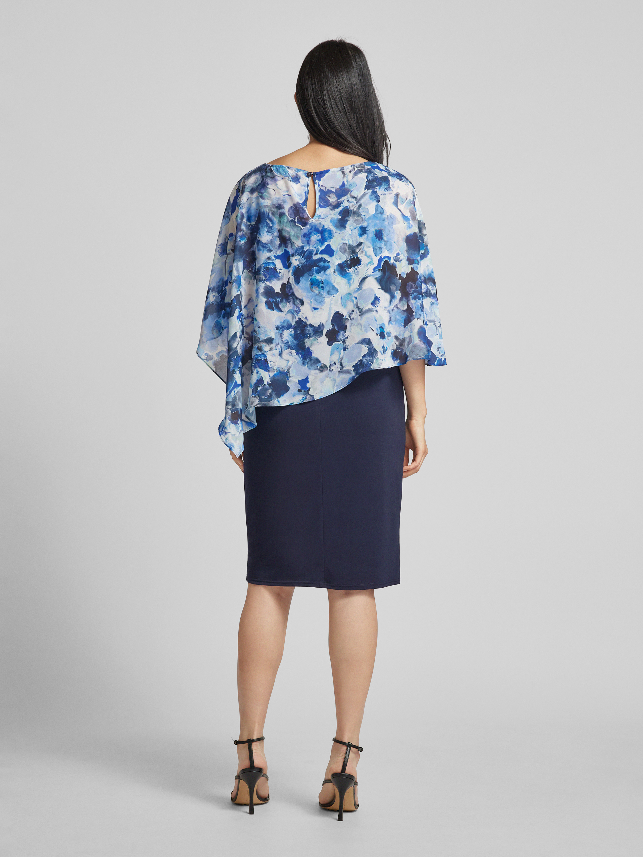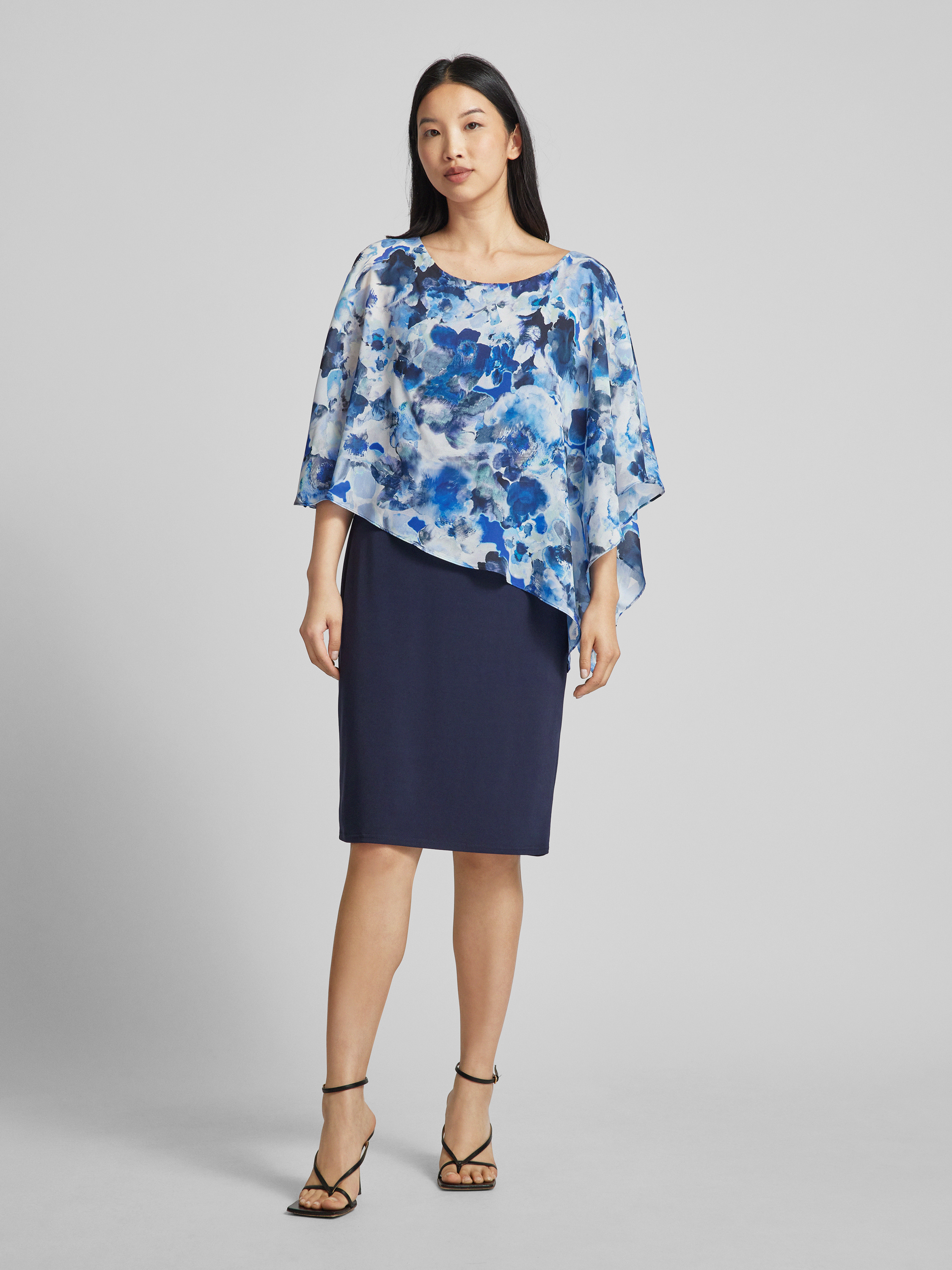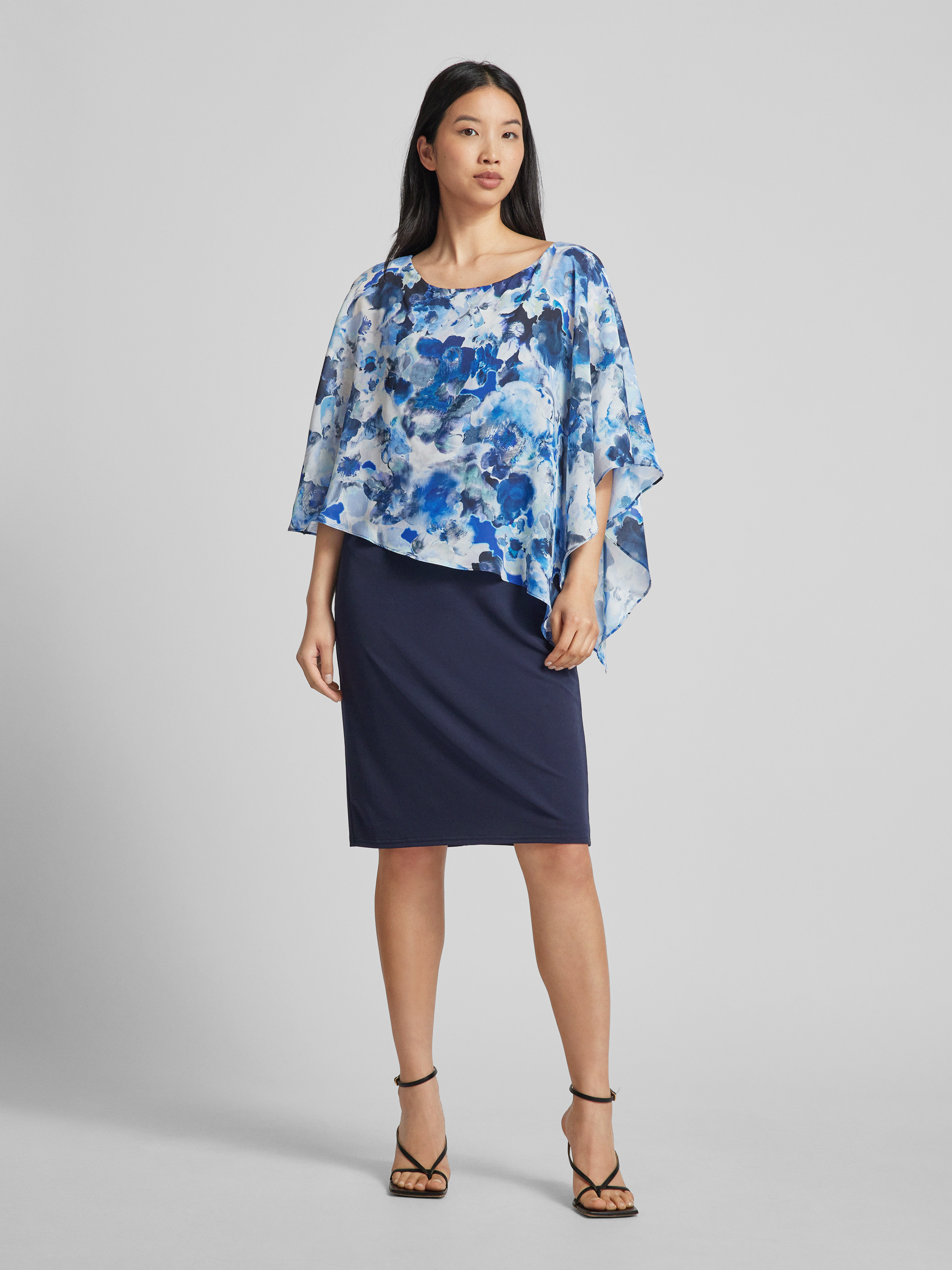 Vera MontKnielanges Cocktailkleid im Double-Layer-Look in blau