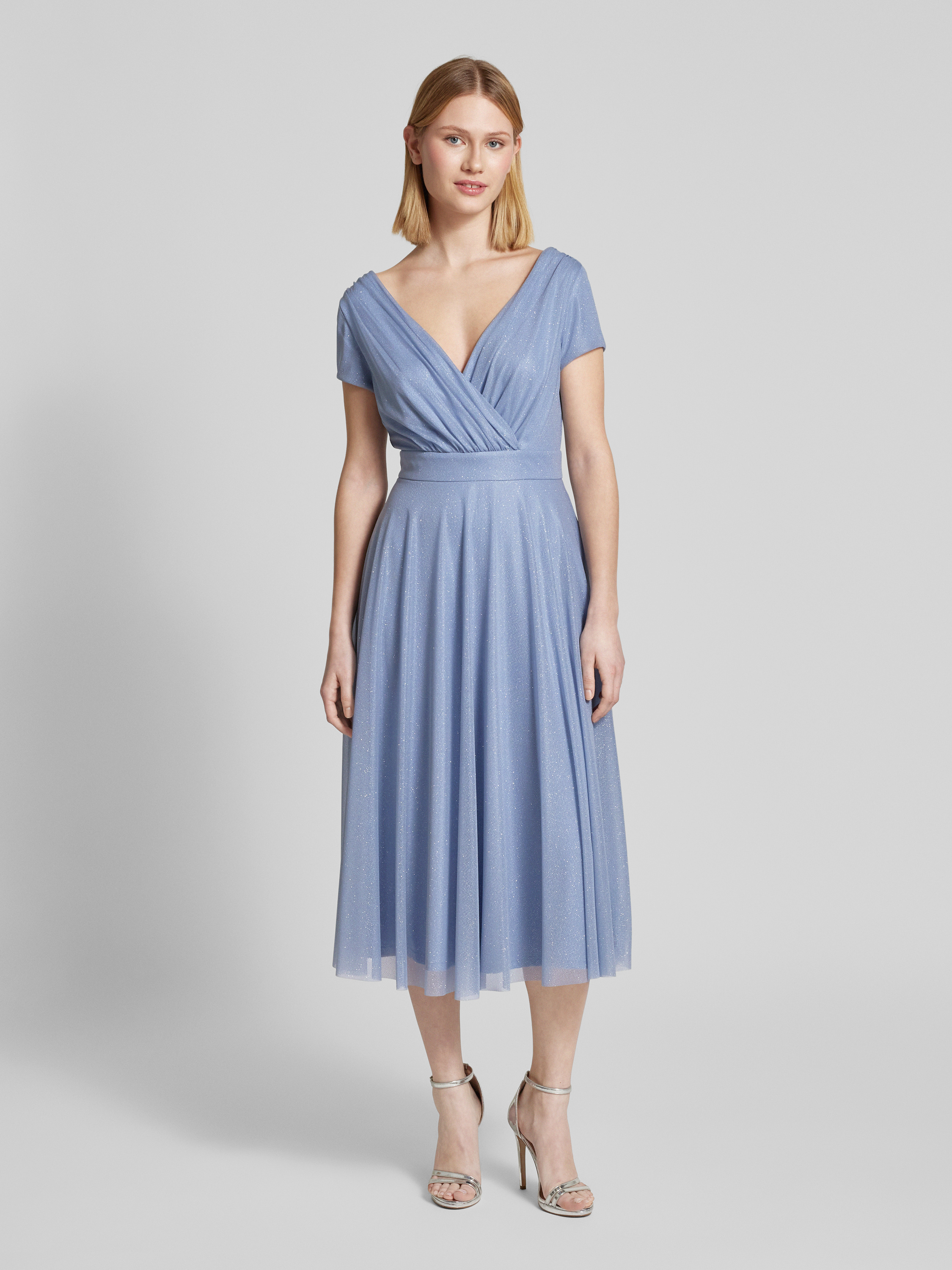 Vera MontKnielanges Cocktailkleid in Wickel-Optik in hellblau