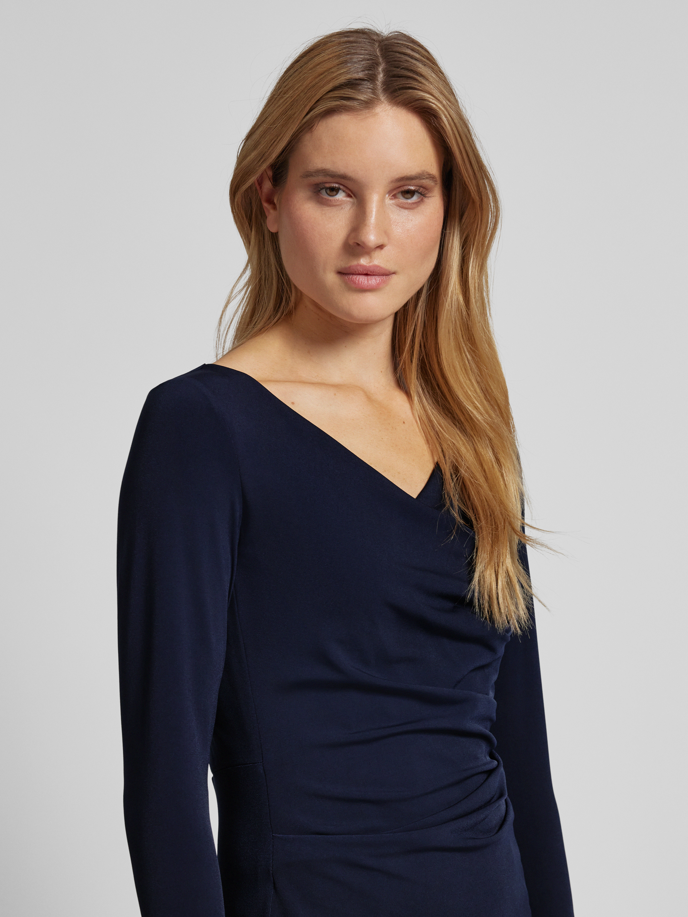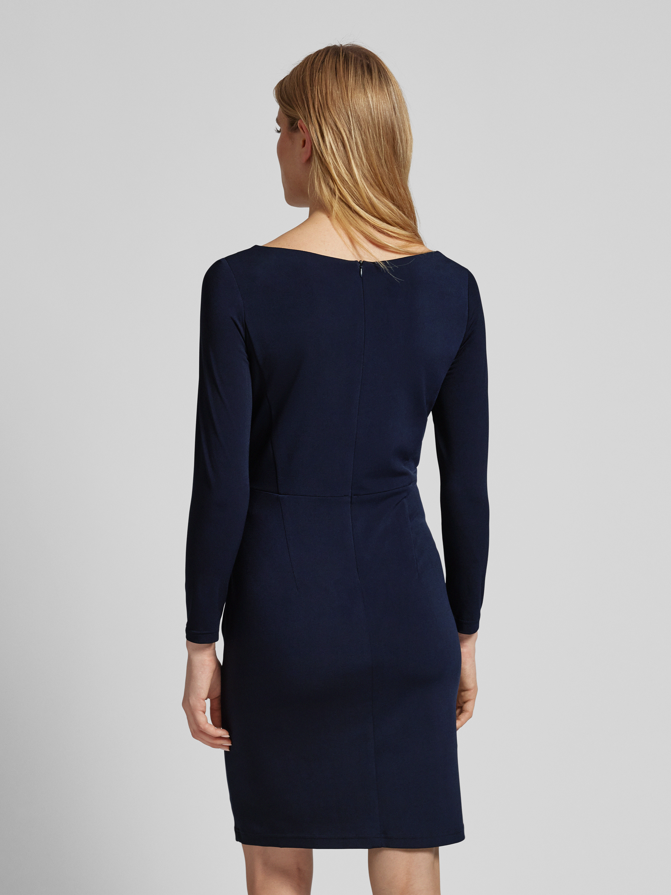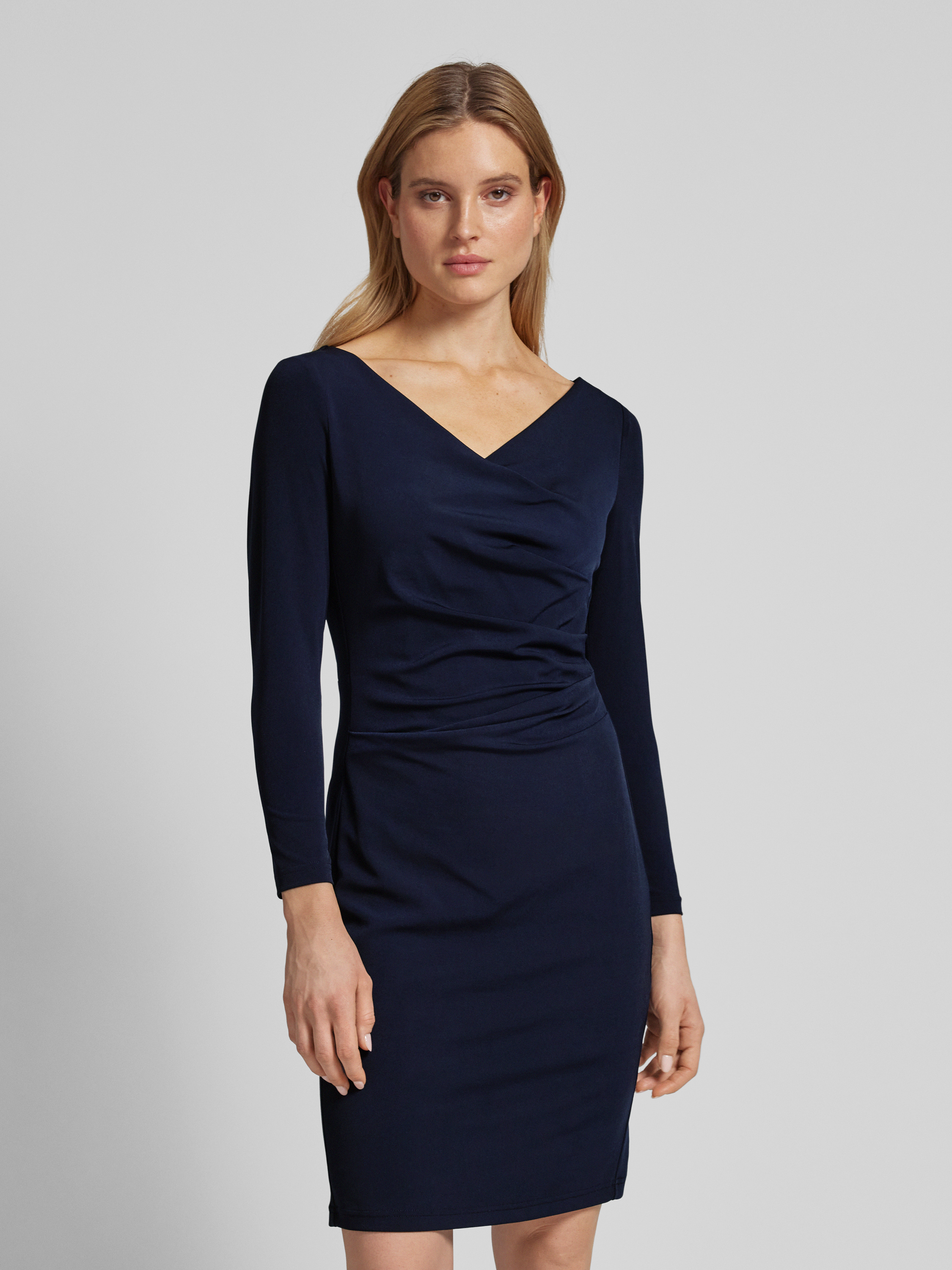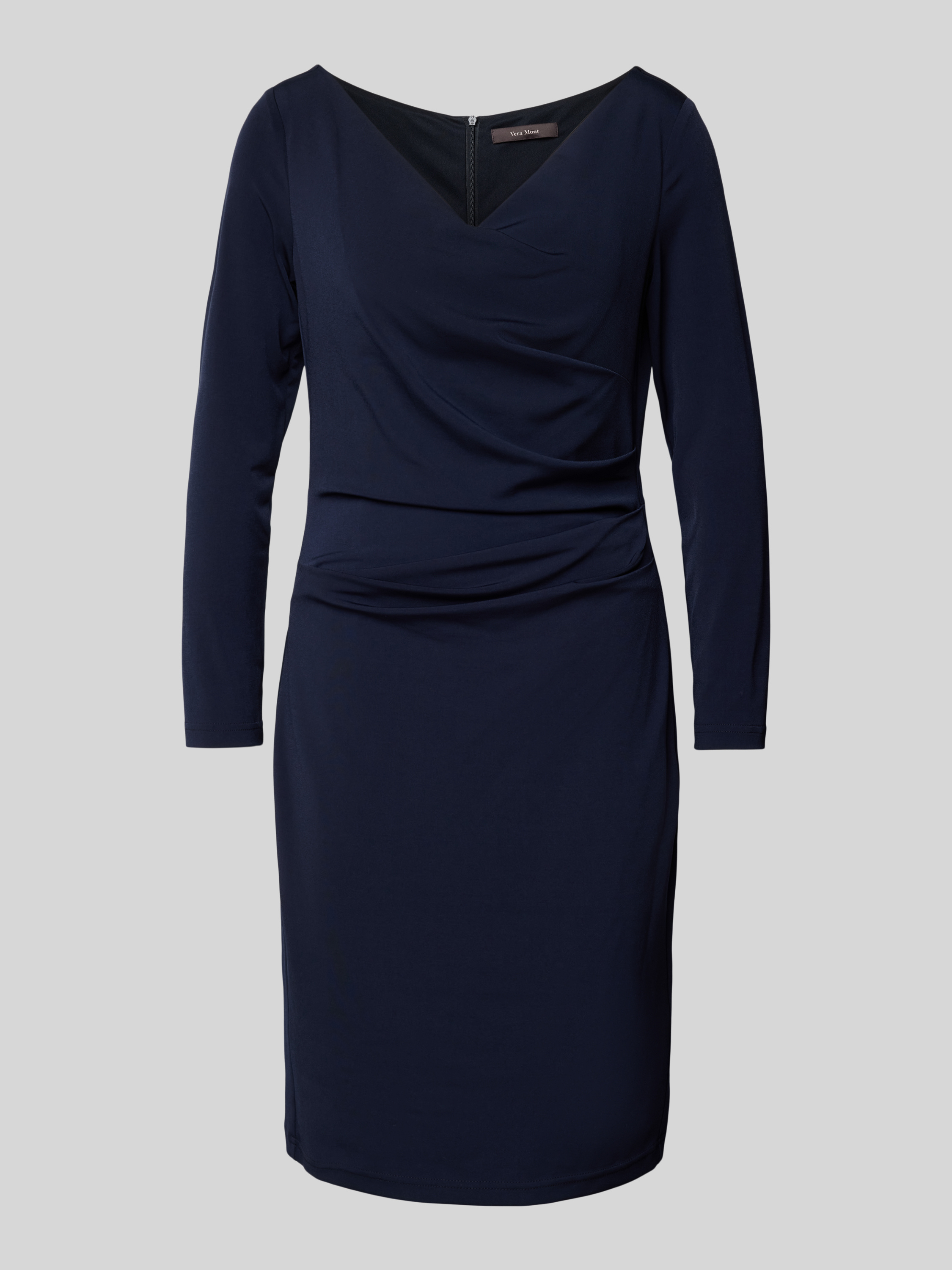 Vera MontKnielanges Cocktailkleid mit Drapierungen in dunkelblau