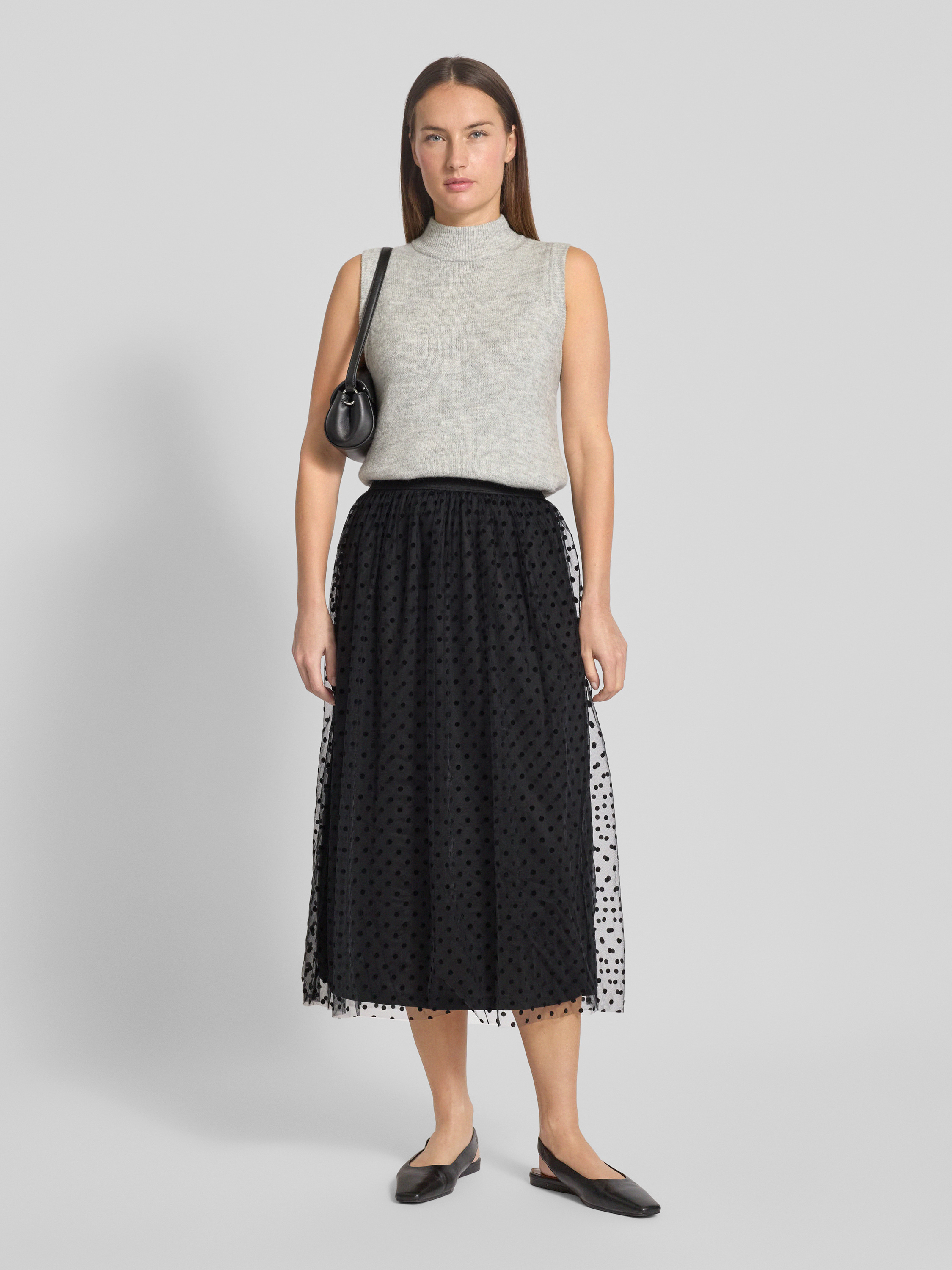 Vero ModaAusgestellter Midi-Rock mit semitransparenten Oberrock Modell 'NETHA' in black