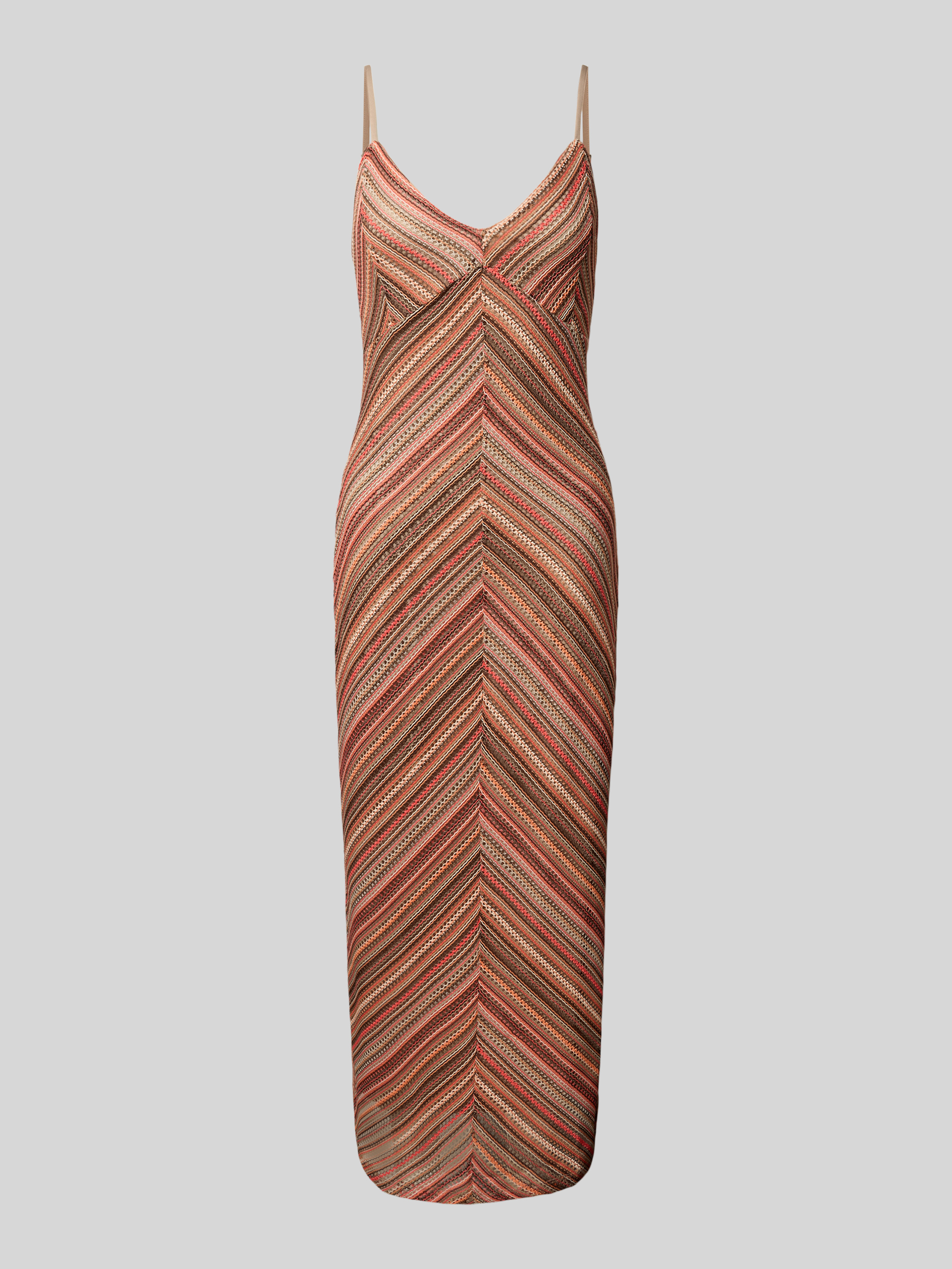 Vero ModaFigurbetontes Midikleid mit feinem Lockstrickmuster Modell DEMI' in hellbraun