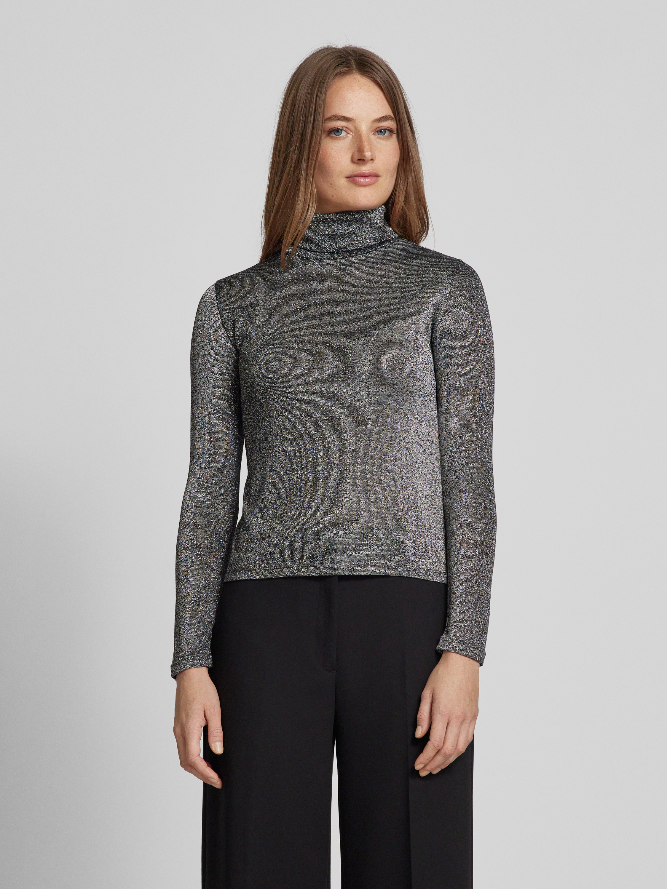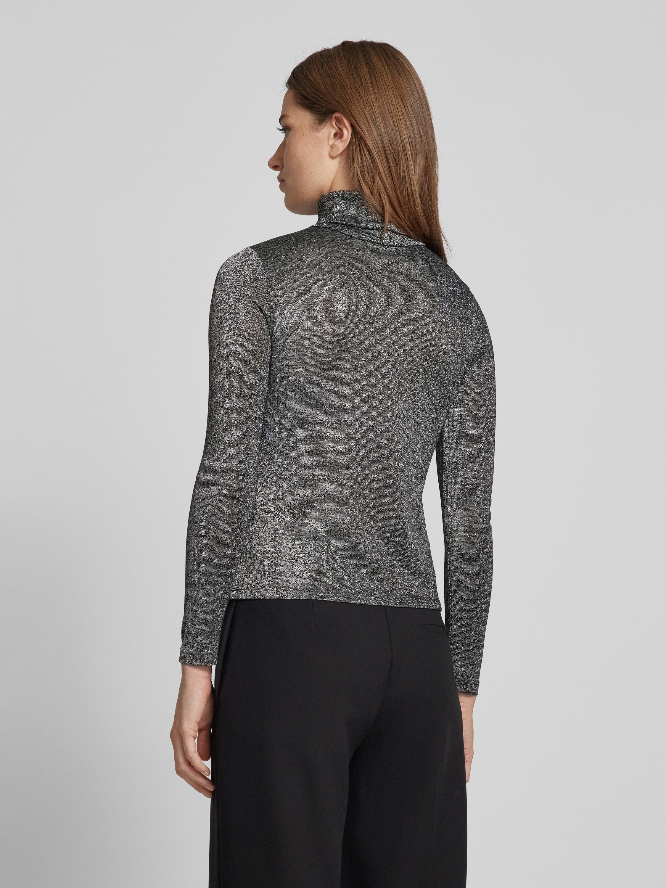 Das Langarmshirt 'Sarah' von Vero Moda kombiniert eine körpernahe Passform mit einem eleganten Rollkragen, wodurch es sich besonders für stilvolle Anlässe eignet. Der Viskose-Mix sorgt für ein angenehmes Tragegefühl, während der dezente Glitzer-Effekt dem unifarbenen Design eine besondere Note verleiht. Ein vielseitiges Kleidungsstück, das mühelos verschiedene Outfits ergänzt.