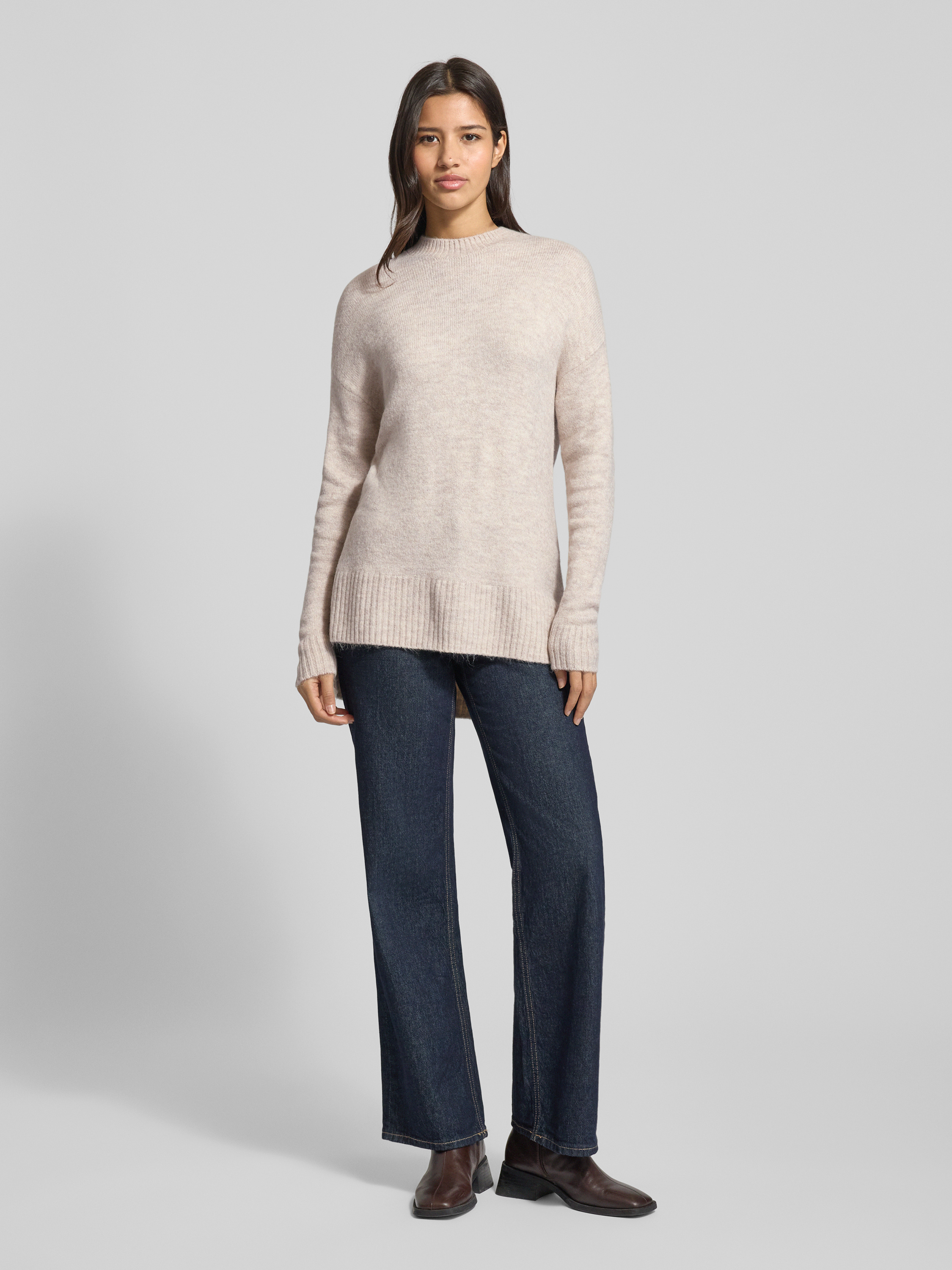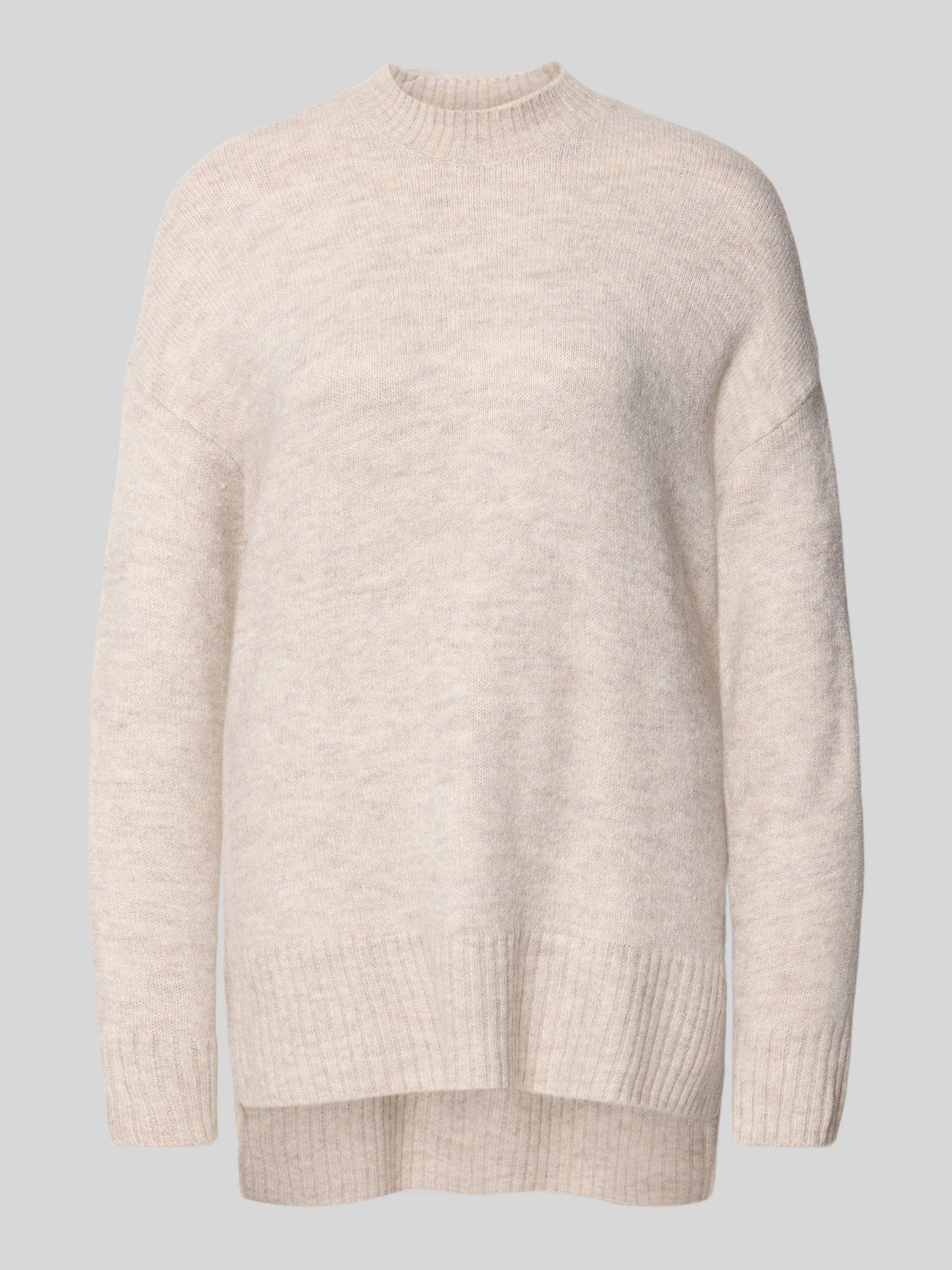 Der Oversized Strickpullover Modell 'Lefile' von Vero Moda zeigt sich in einer Melange-Optik und sorgt mit seinem lockeren Schnitt für ein angenehmes Tragegefühl. Überschnittene Schultern und ein Mock Neck unterstreichen die entspannte Silhouette, während der langärmlige Strick vielseitig kombinierbar bleibt. Durch die strukturierte Verarbeitung eignet sich der Pullover besonders an kühleren Tagen, da man sich darin rundum wohlfühlen kann.