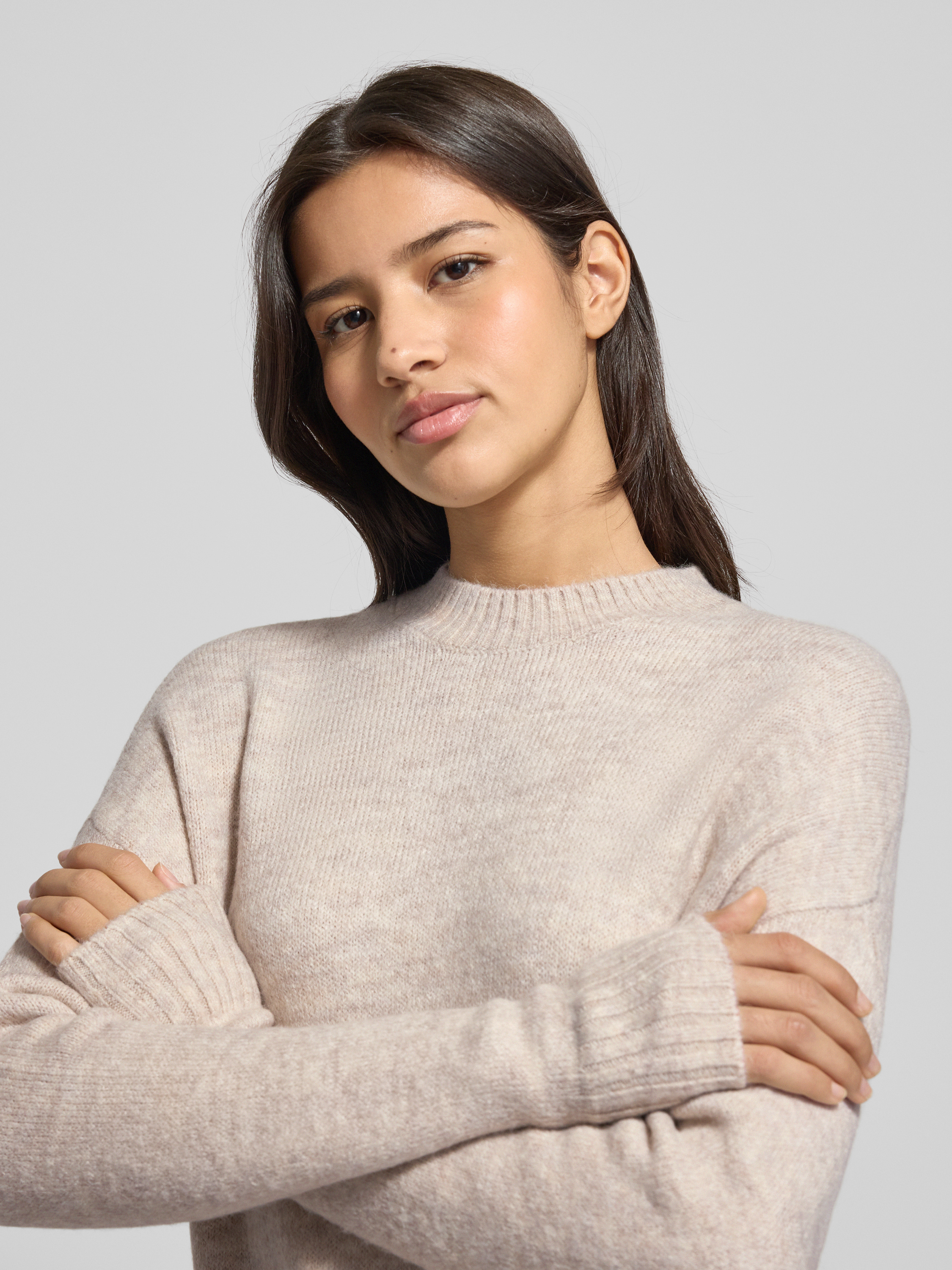 Vero ModaOversized Strickpullover mit Mock Neck Modell 'LEFILE' in beige