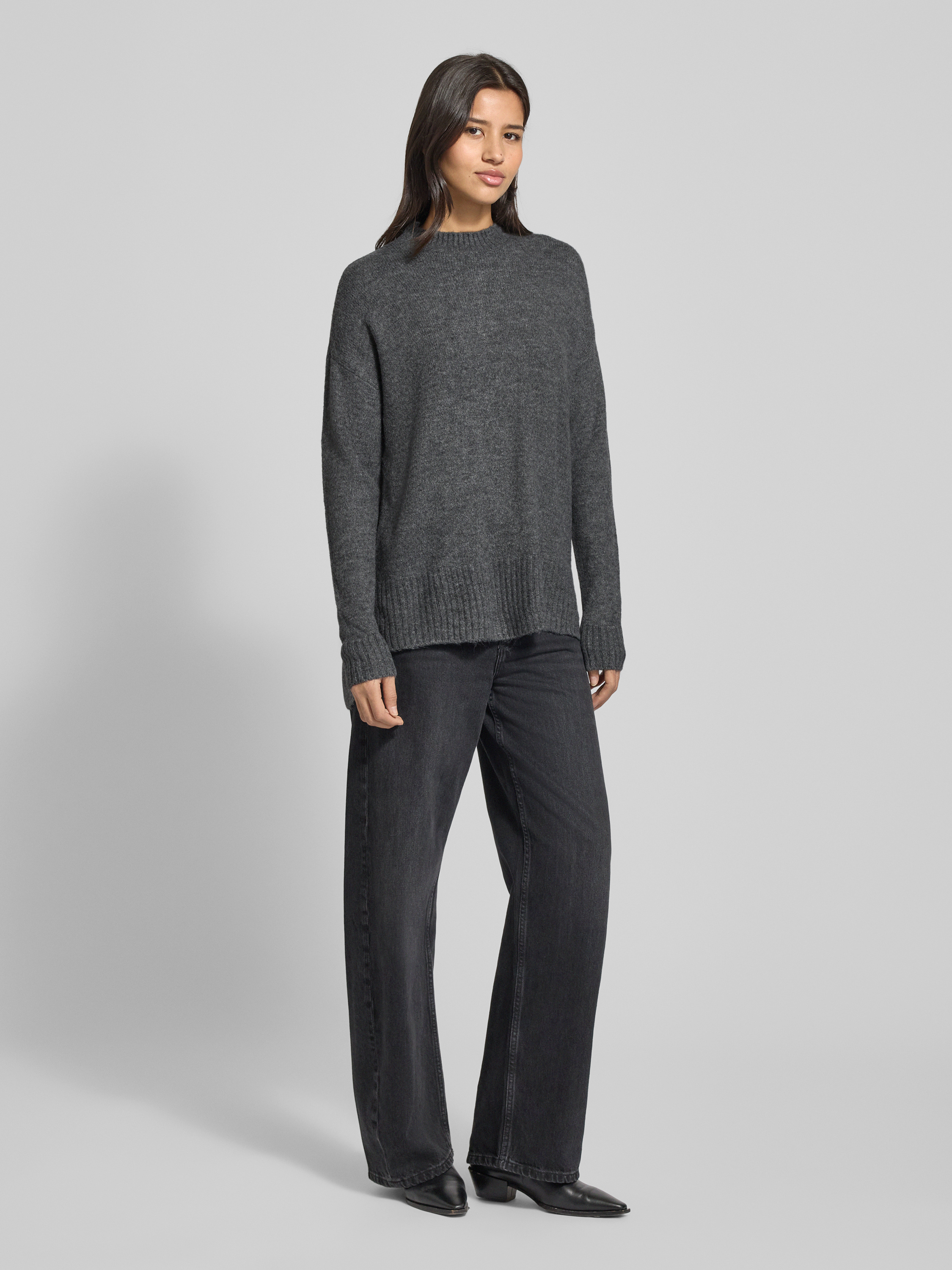 Vero ModaOversized Strickpullover mit Mock Neck Modell 'LEFILE' in mittelgrau