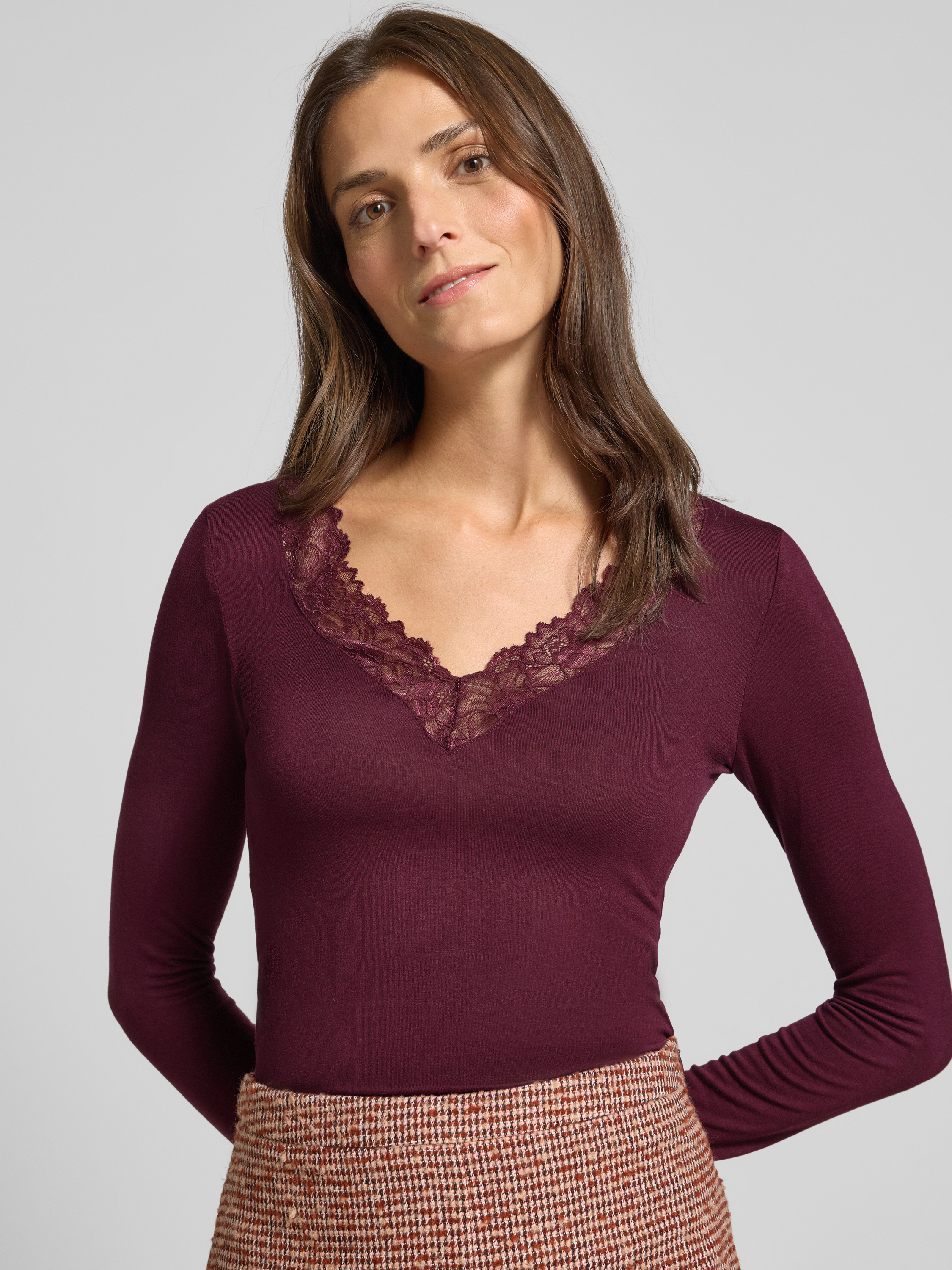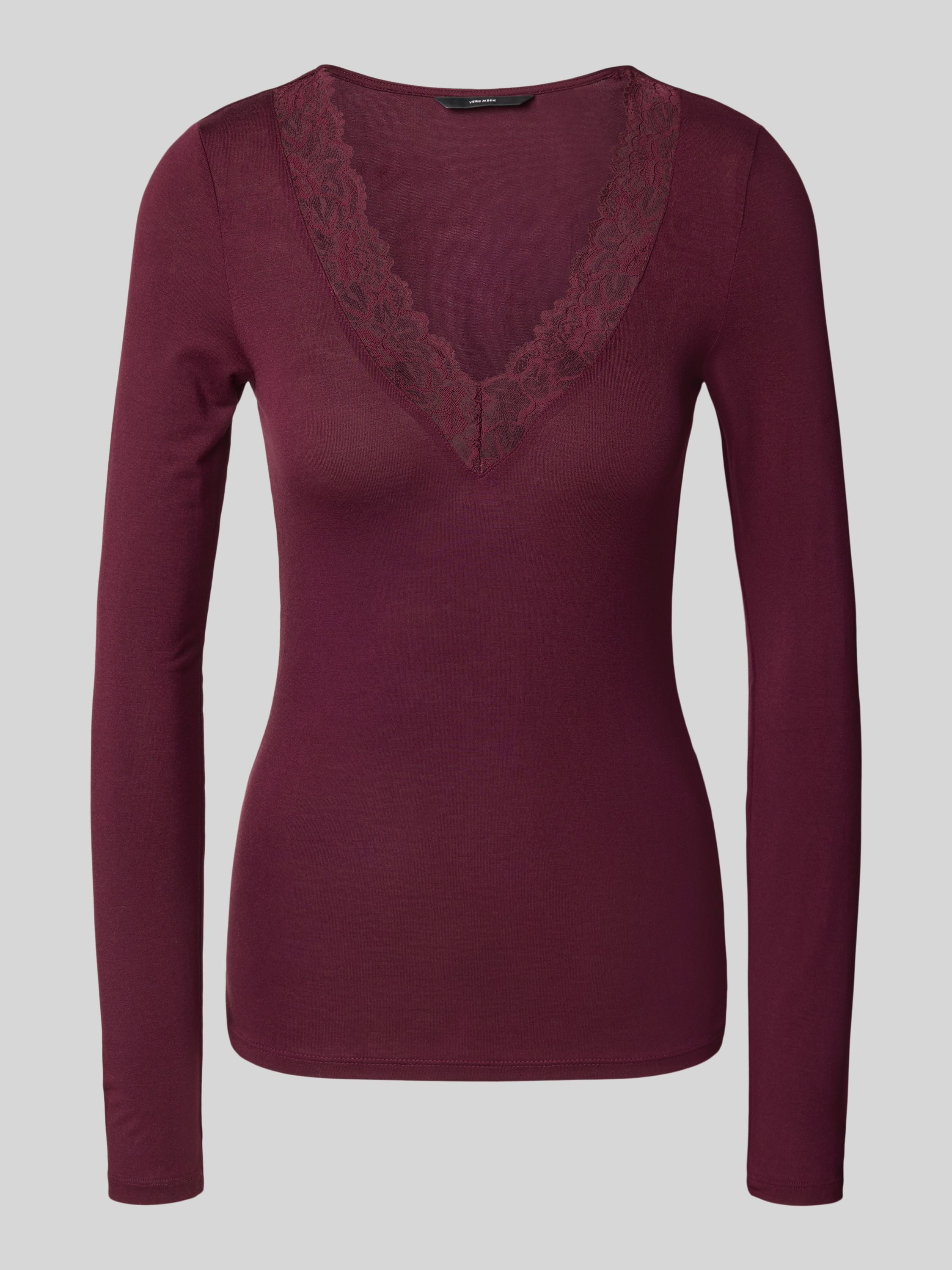 Vero ModaRegular Fit Langarmshirt aus Viskose-Mix Modell 'ROSA' in bordeaux