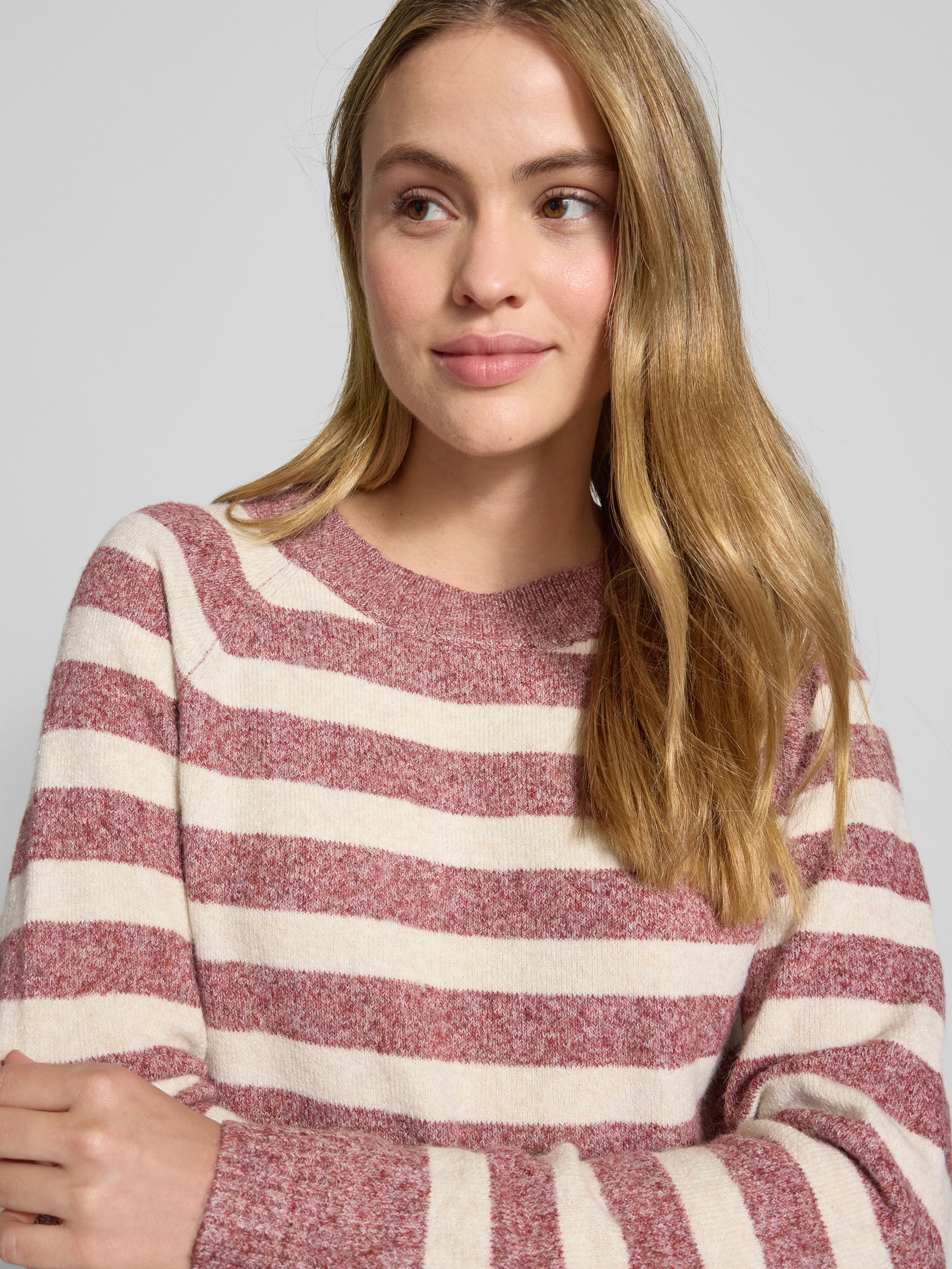 Der Damen Regular-Fit Pullover Modell 'Doffy' von Vero Moda kombiniert eine Melange-Optik mit dezentem Allover-Muster und gestreiften Elementen. Durch den klassischen Rundhals und Raglanärmel sitzt er angenehm und lässt sich vielseitig einsetzen. Der Strick sorgt für ein angenehmes Tragegefühl im Alltag.