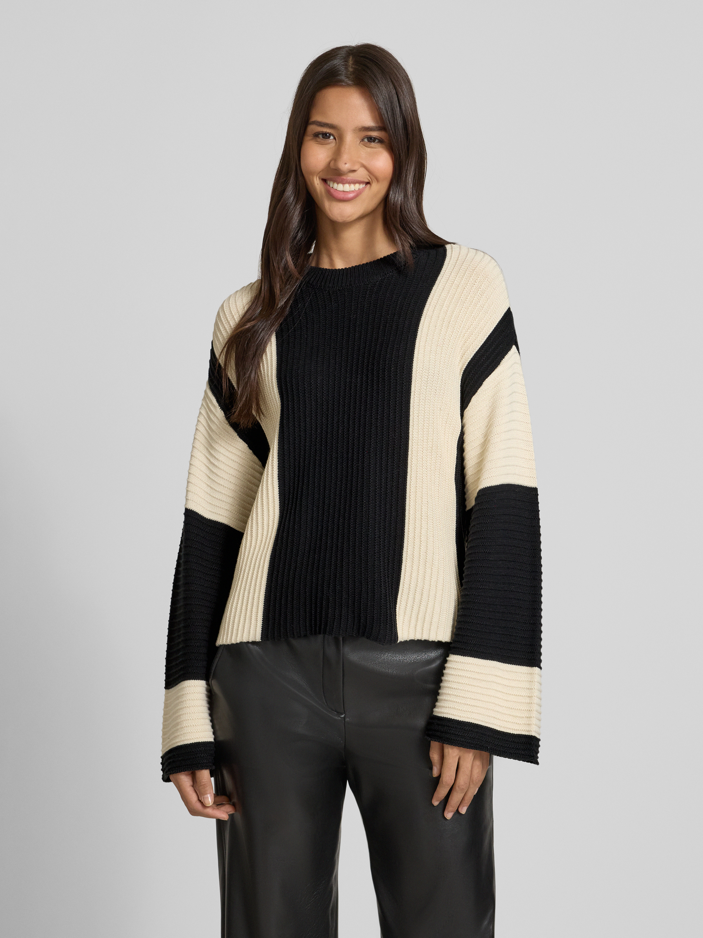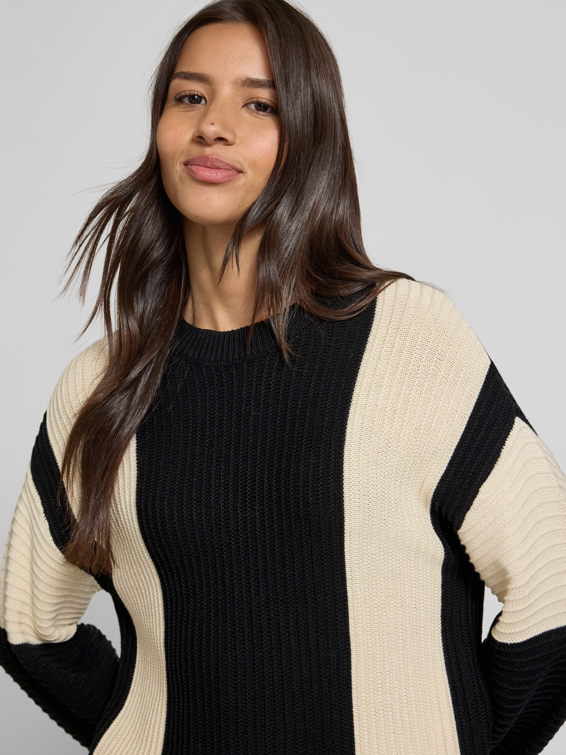 Der Damenpullover von Vero Moda, Modell Gigi, zeigt sich im modernen Two-Tone-Design und liegt durch den Regular Fit angenehm am Körper. Überschnittene Schultern und der klassische Rundhalsausschnitt schaffen Bewegungsfreiheit, während der weiche Baumwoll-Mix für ein angenehmes Tragegefühl im Alltag sorgt.