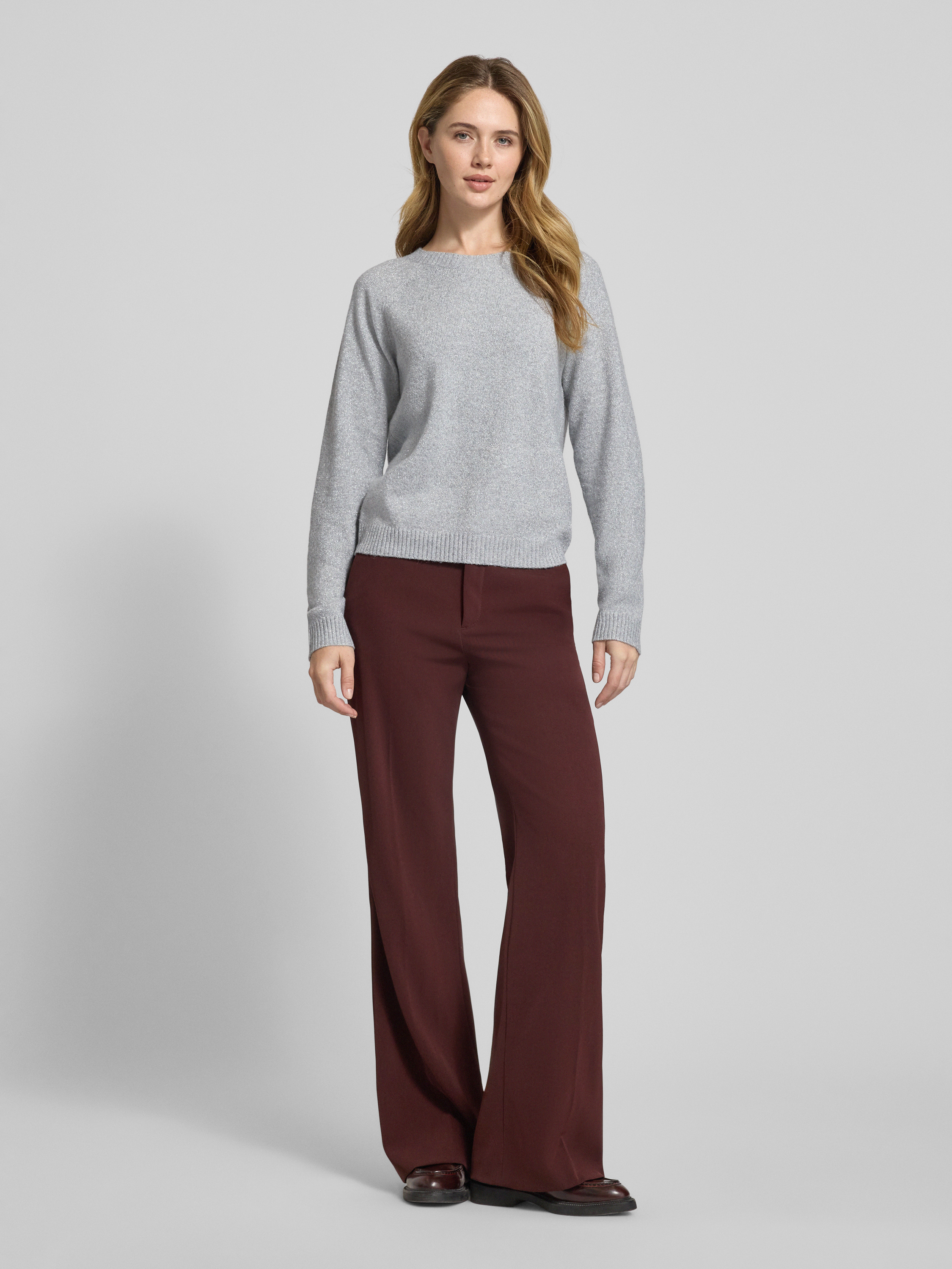 Vero ModaRegular Fit Strickpullover mit Crew Neck Modell 'DOFFYSHINE' in hellgrau