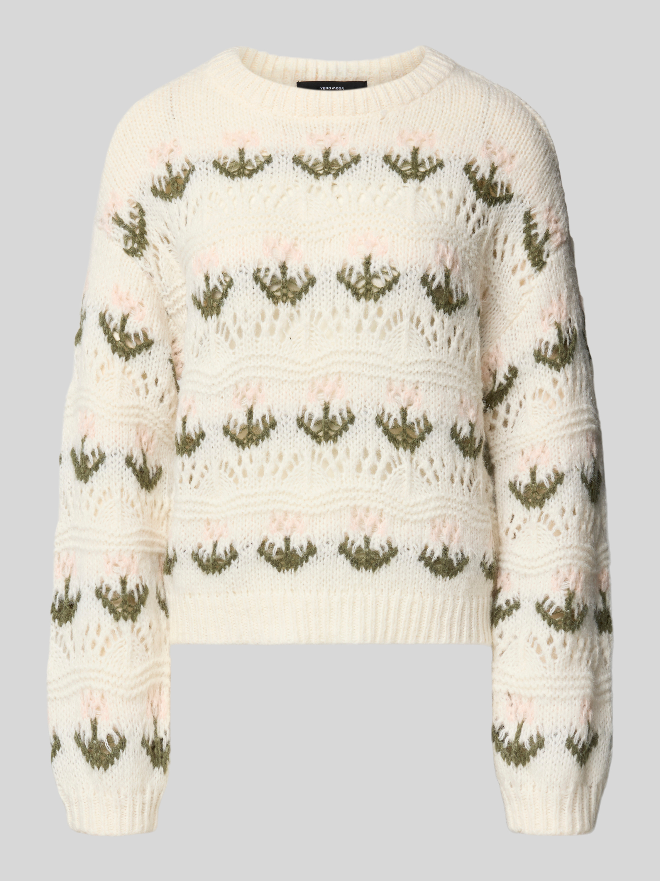 • Vero Moda Regular Fit Strickpullover mit Lochstrickmuster Modell 'IDELLE' Offwhite