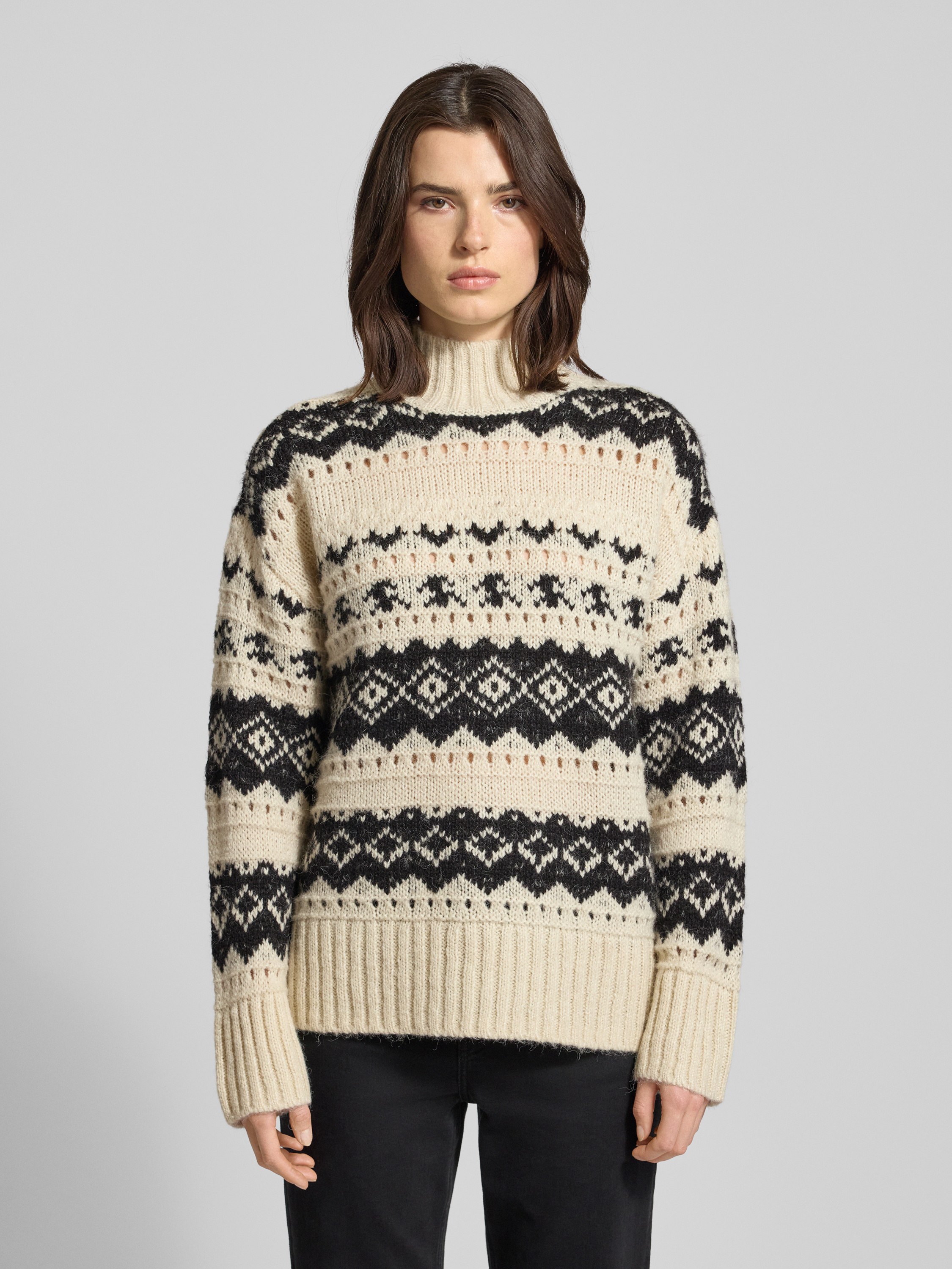 Der Damen Strickpullover von Vero Moda, Modell Ample, zeigt durch sein Allover-Muster einen lebendigen Charakter und lässt sich vielseitig kombinieren. Der Regular-Fit-Schnitt sorgt für angenehme Bewegungsfreiheit, während der Mock Neck dem Oberteil einen modernen Akzent verleiht. Dank der Strickverarbeitung fühlt man sich im Alltag stets komfortabel gekleidet.