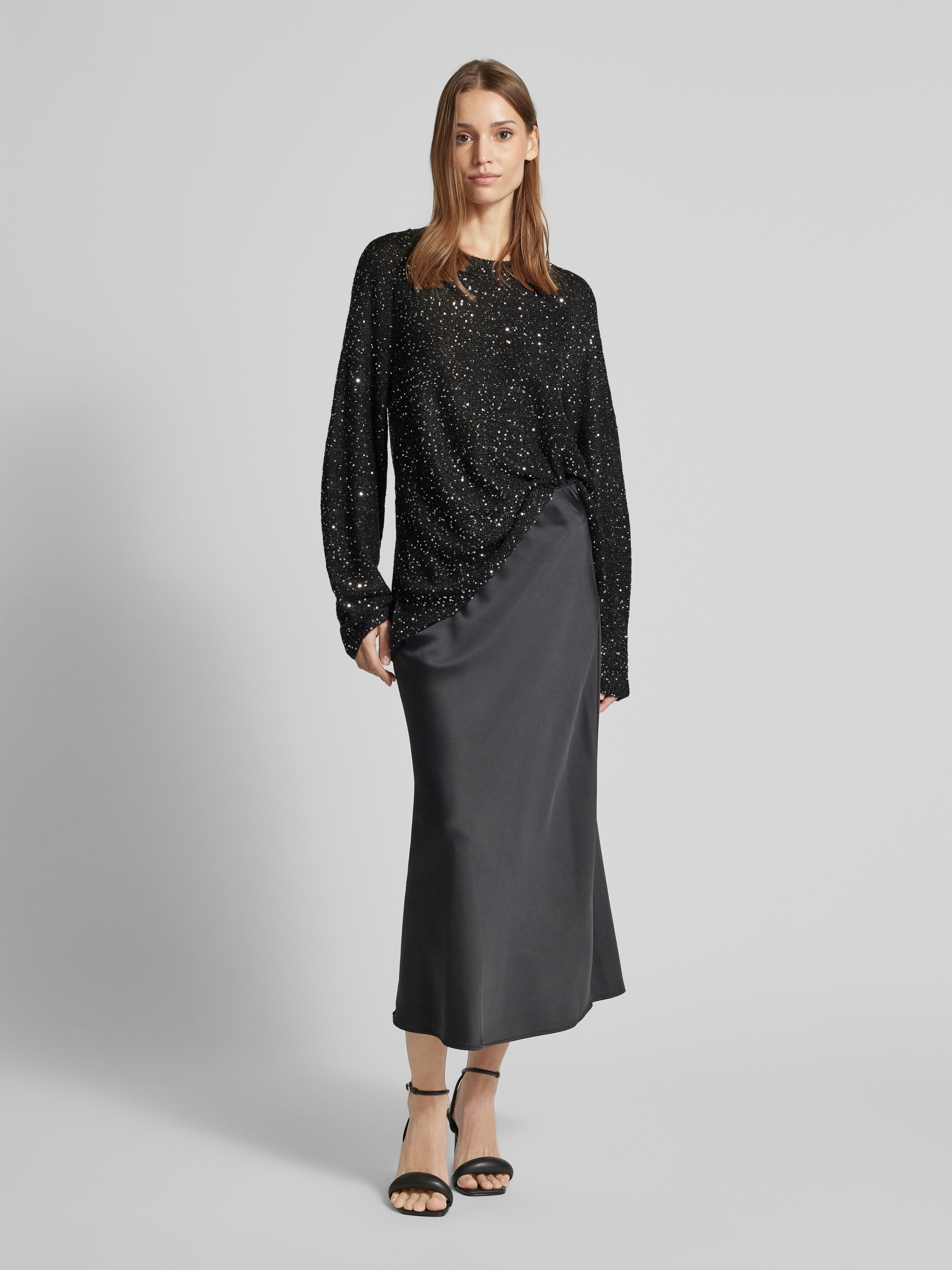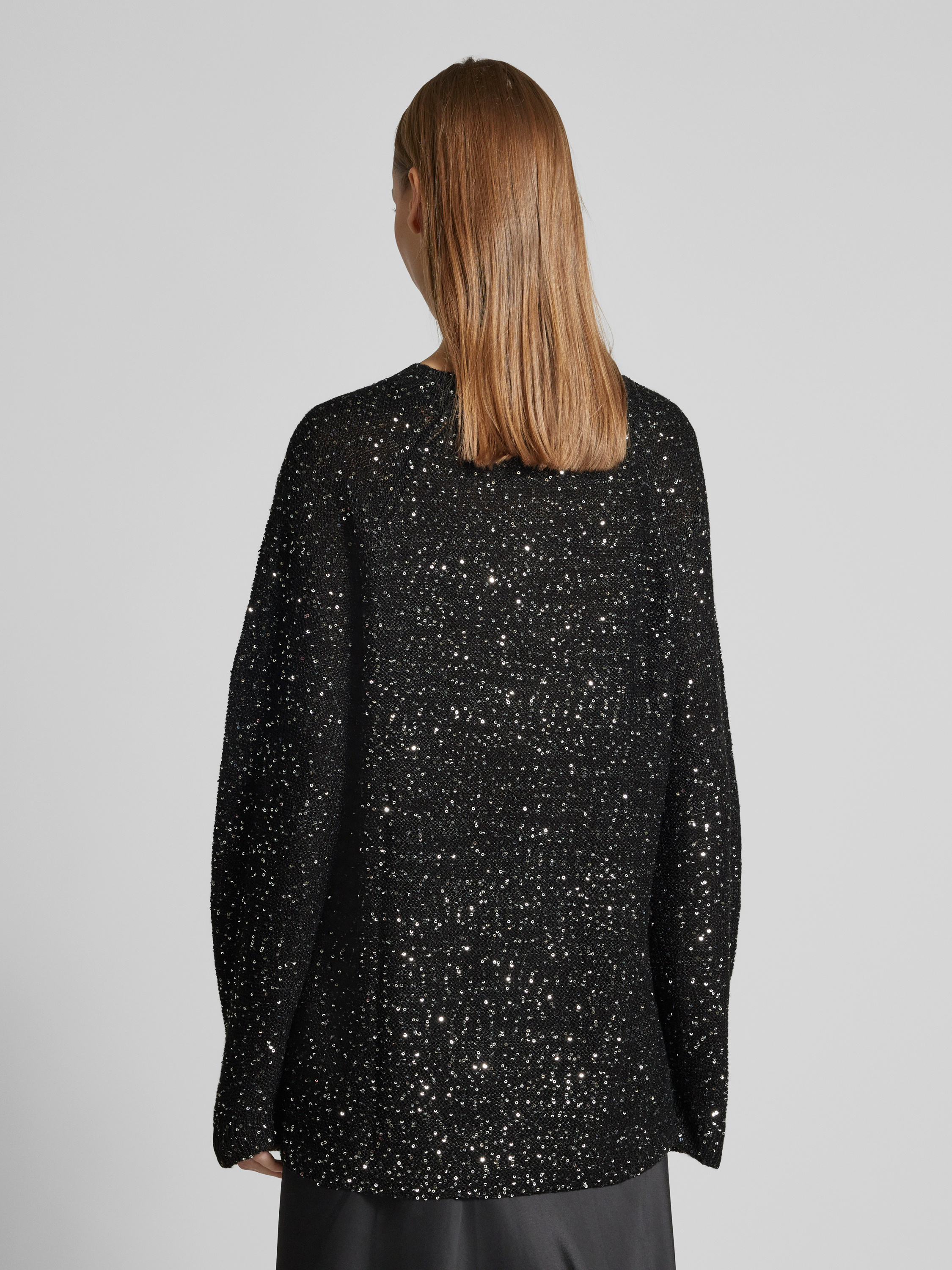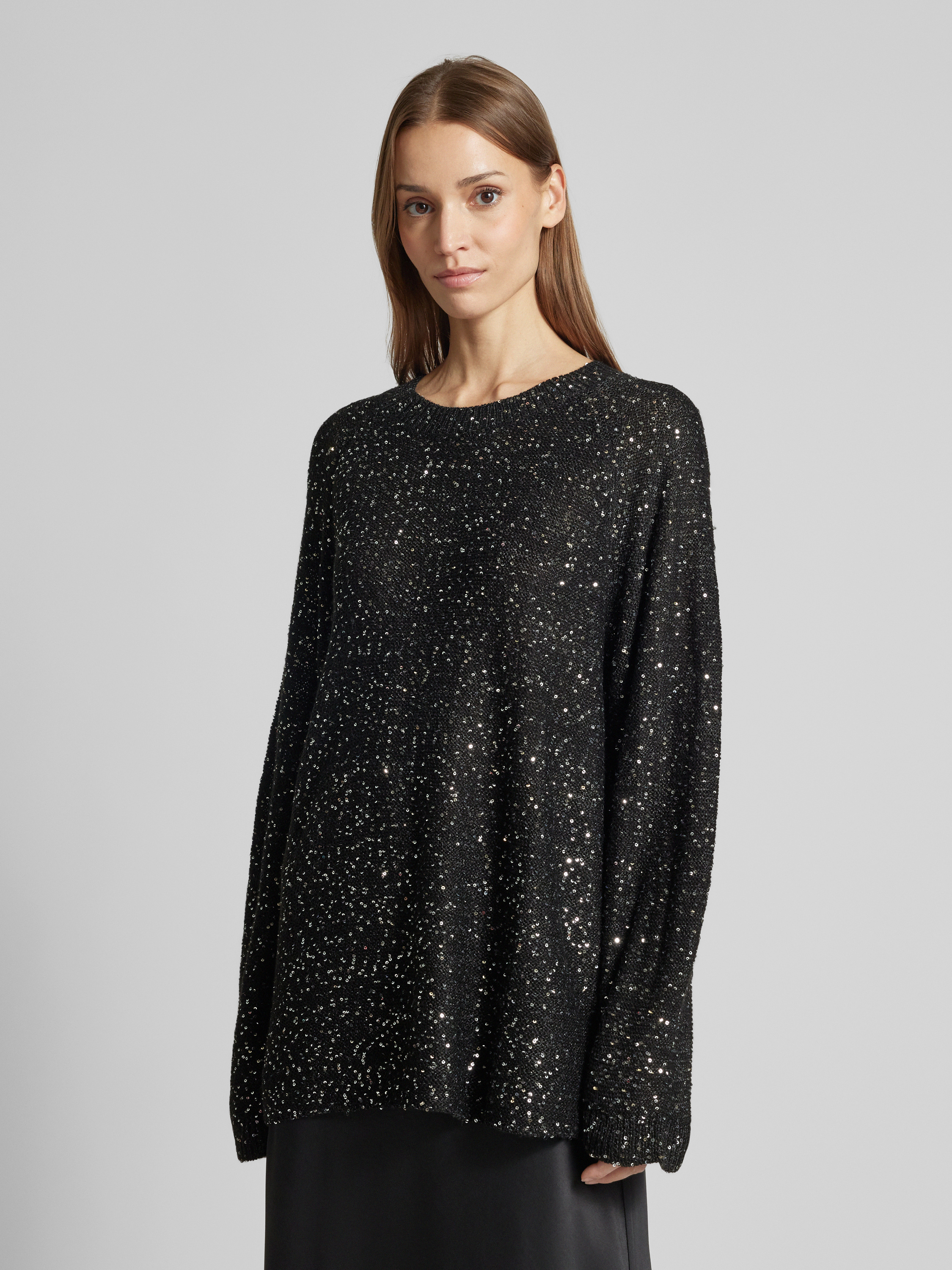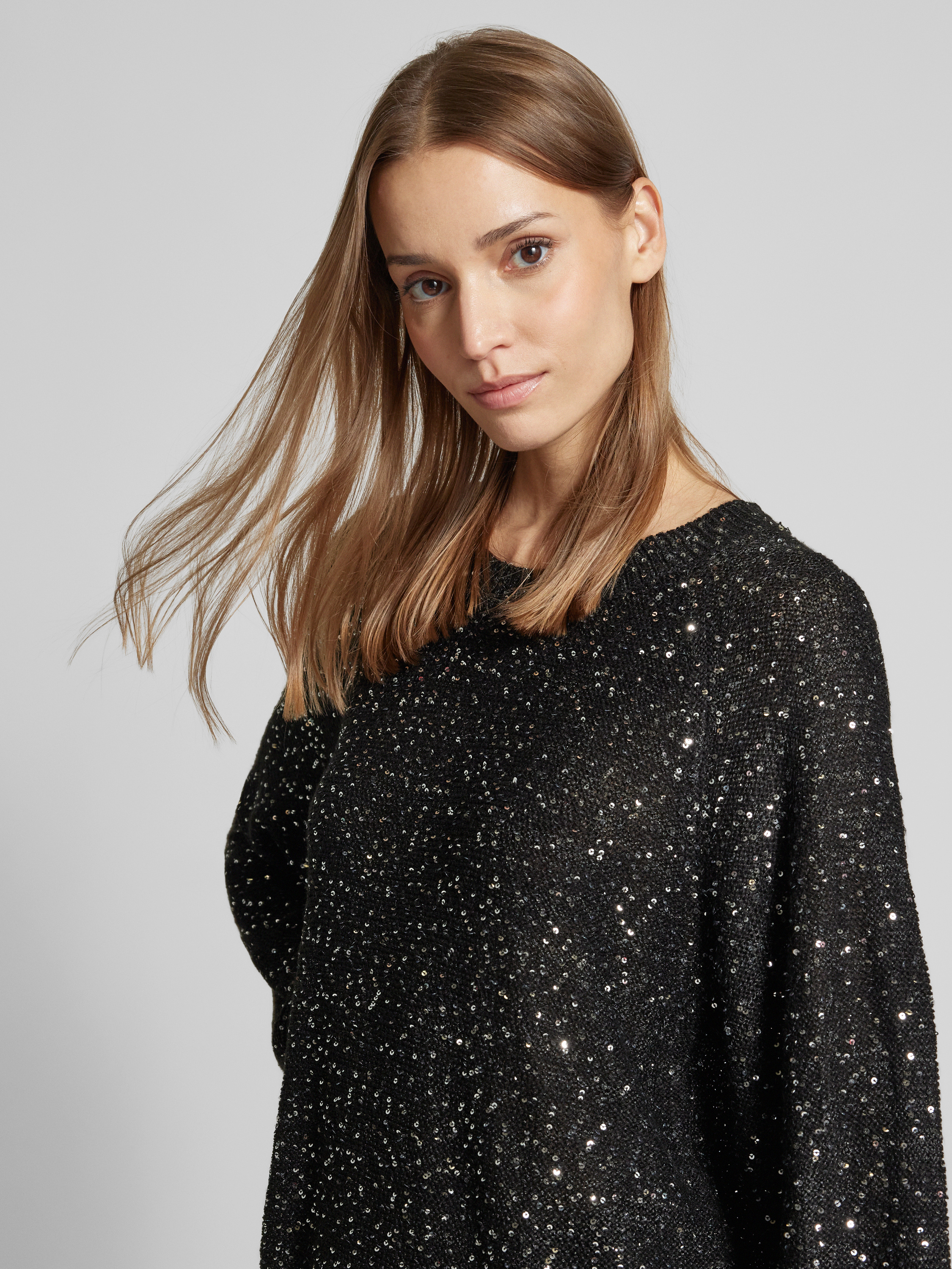 Vero ModaRegular Fit Strickpullover mit Paillettenbesatz Modell 'LEILANI' in metallic black melange