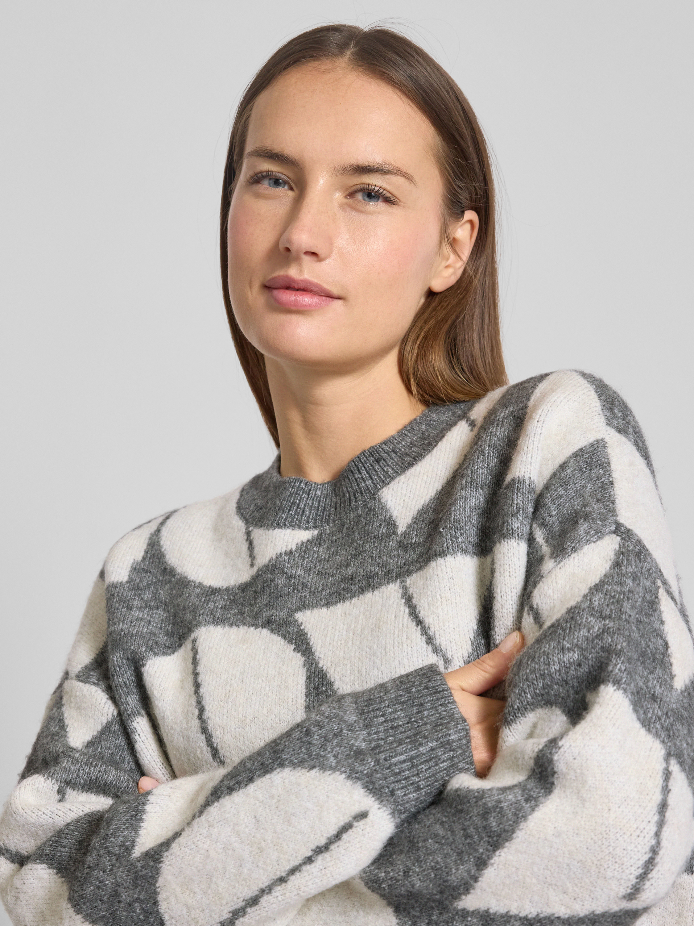 Der Damen Strickpullover von Vero Moda, Modell Love, überzeugt durch sein lebendiges Allover-Muster und einen bequemen Regular Fit. Dank des Woll-Anteils bleibt die Strickverarbeitung angenehm auf der Haut und sorgt für ein ausgeglichenes Tragegefühl. Überschnittene Schultern und der klassische Rundhals runden den entspannten Stil ab.