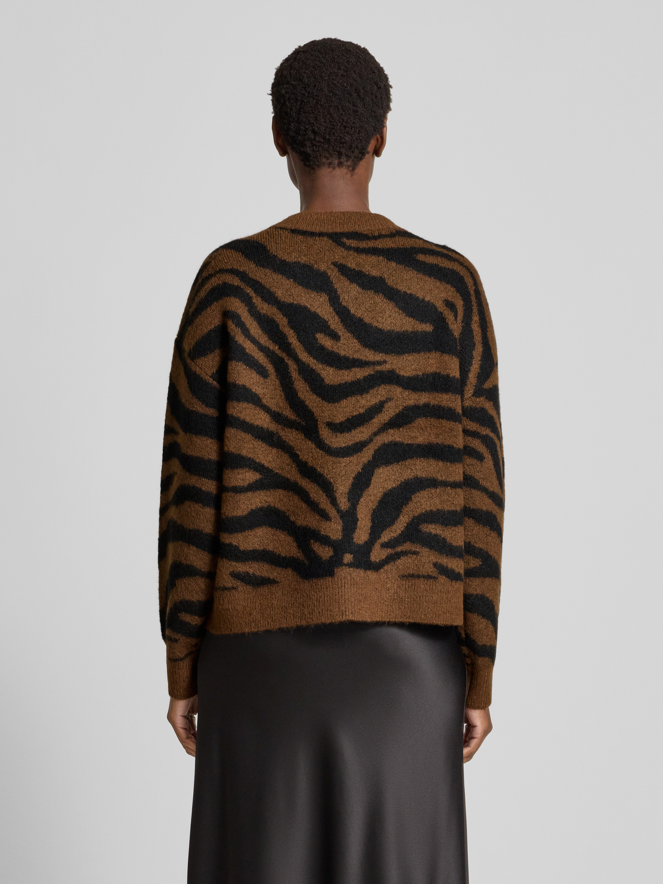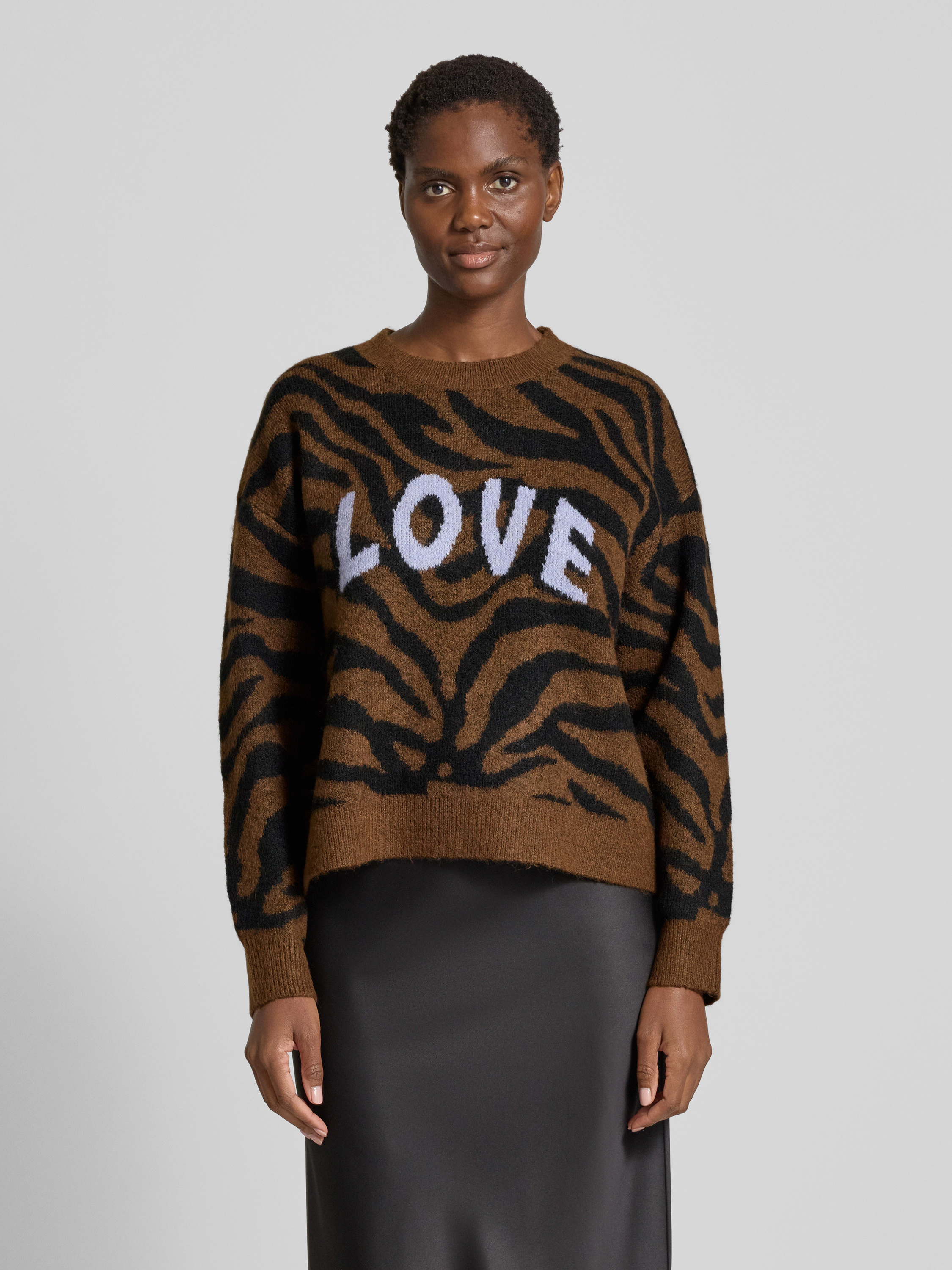 Der Damen Strickpullover von Vero Moda, Modell 'Newkai', fällt durch sein Allover-Muster im Animal Print auf und bringt frischen Schwung in den Alltag. Dank Regular-Fit-Passform sitzt er bequem, ohne einzuengen. Durch den Woll-Anteil fühlt man sich angenehm gewärmt und komfortabel.