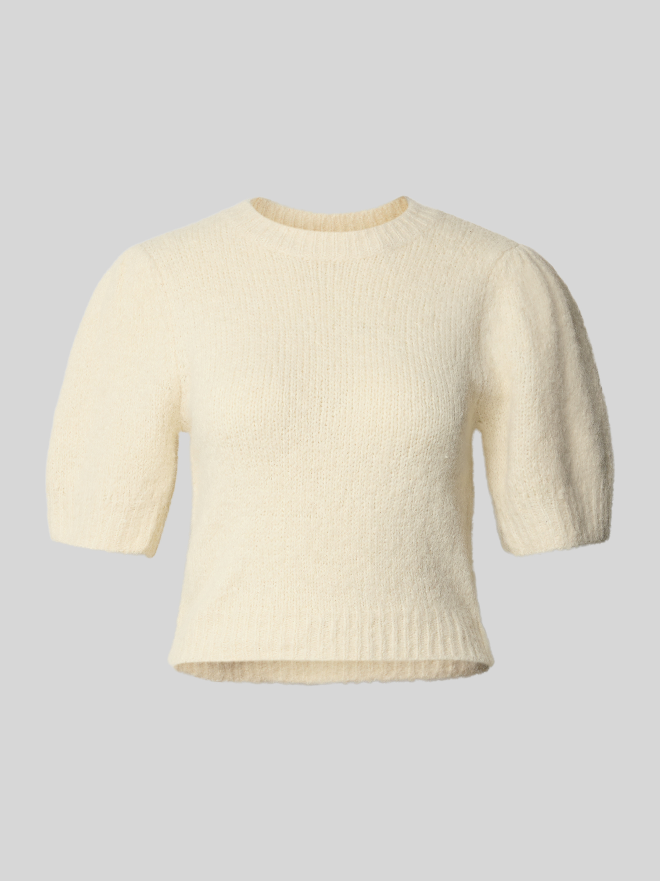 Der Regular Fit Strickpullover mit Woll-Anteil Modell 'Novah' von Vero Moda zeichnet sich durch eine angenehme, gerade Passform aus. Dank feinem Strick und Woll-Anteil fühlt sich das Material weich an, während die kurzen Ballonärmel dem unifarbenen Design eine moderne Note geben. So lässt sich der Pullover vielseitig kombinieren.