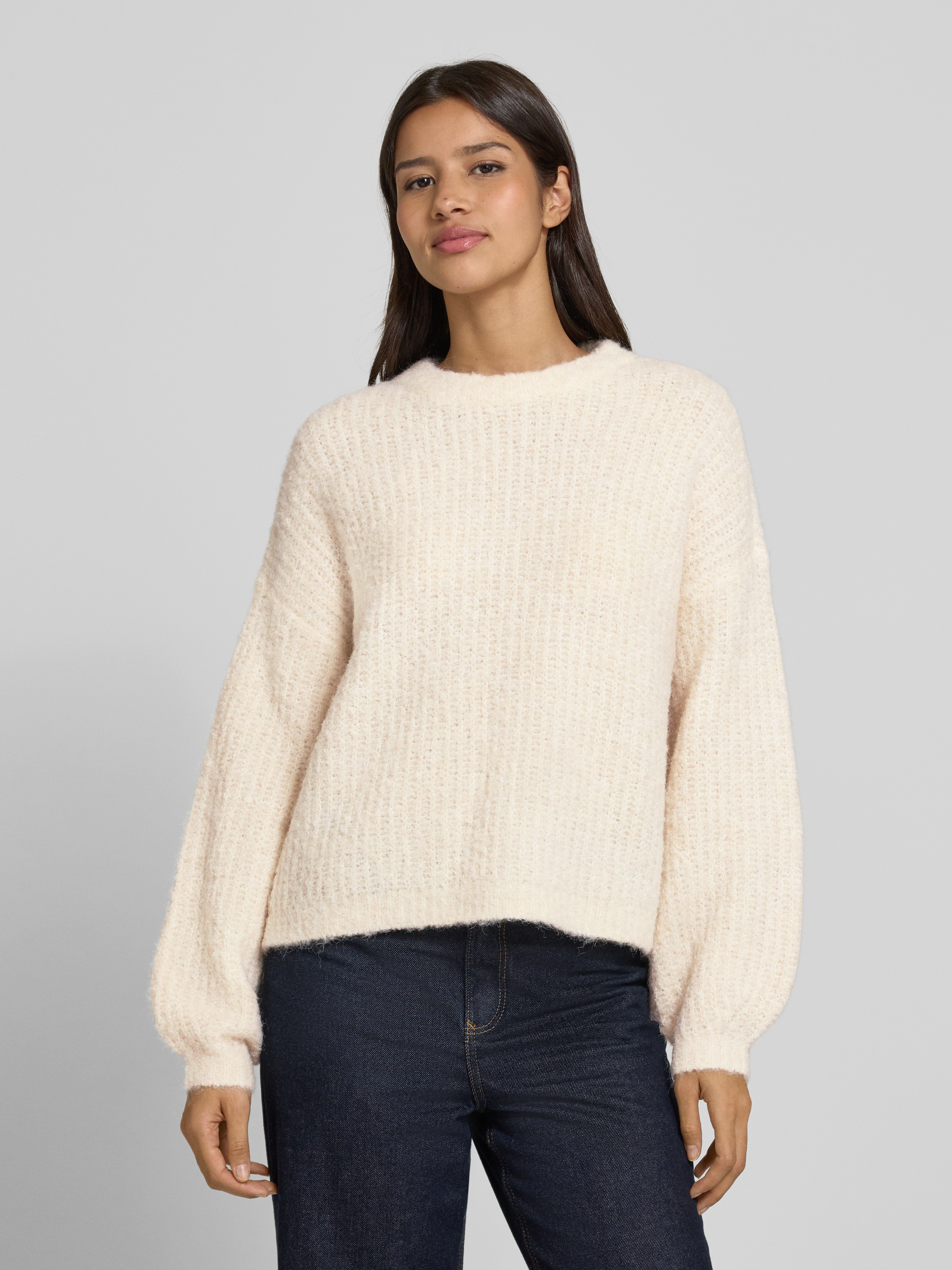 Vero ModaRelaxed Fit Strickpullover mit Woll-Anteil Modell 'CARMEN' in ecru