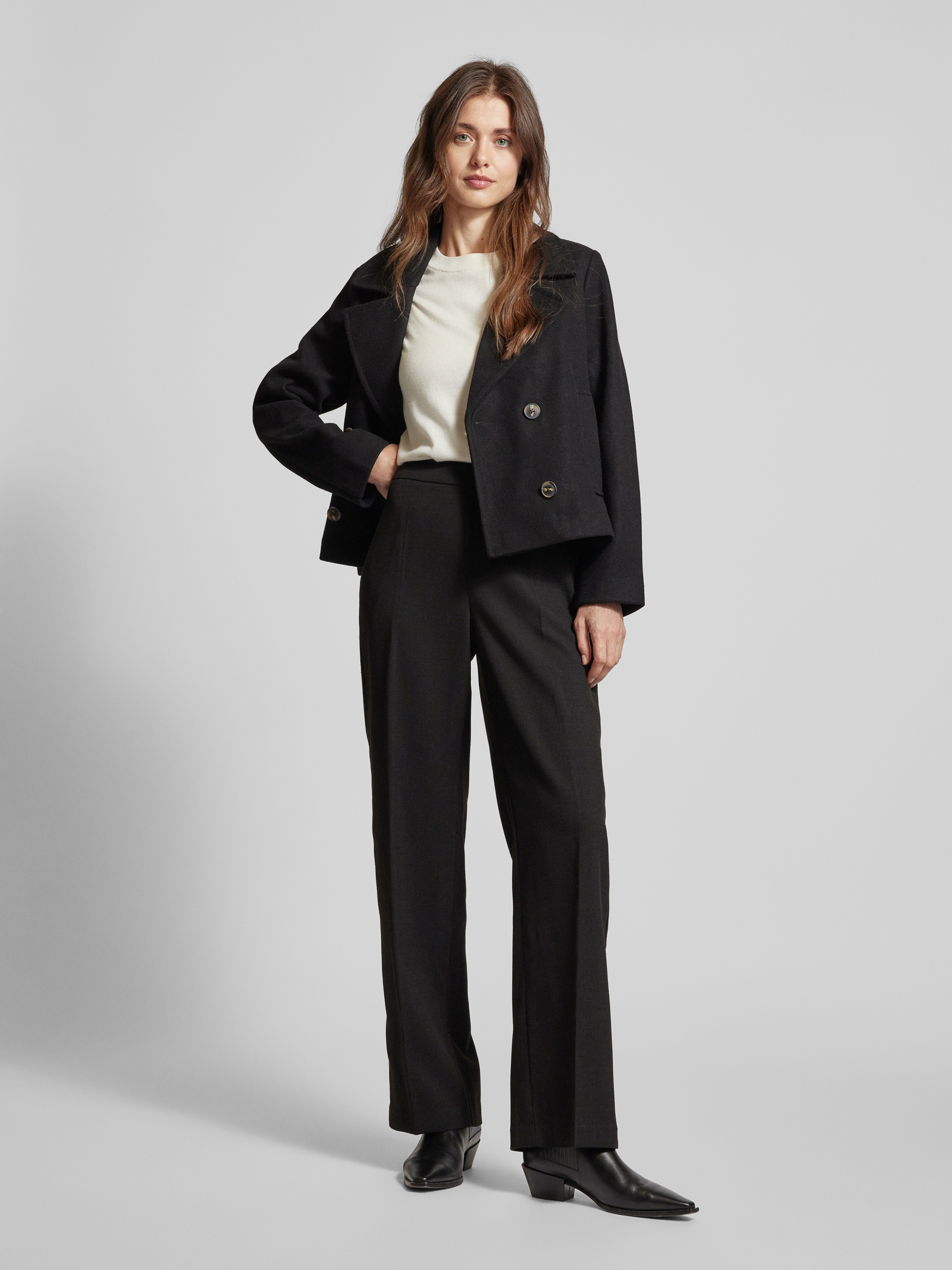 Vero ModaStraight Fit Stoffhose mit Bügelfalten Modell 'EVE' in black