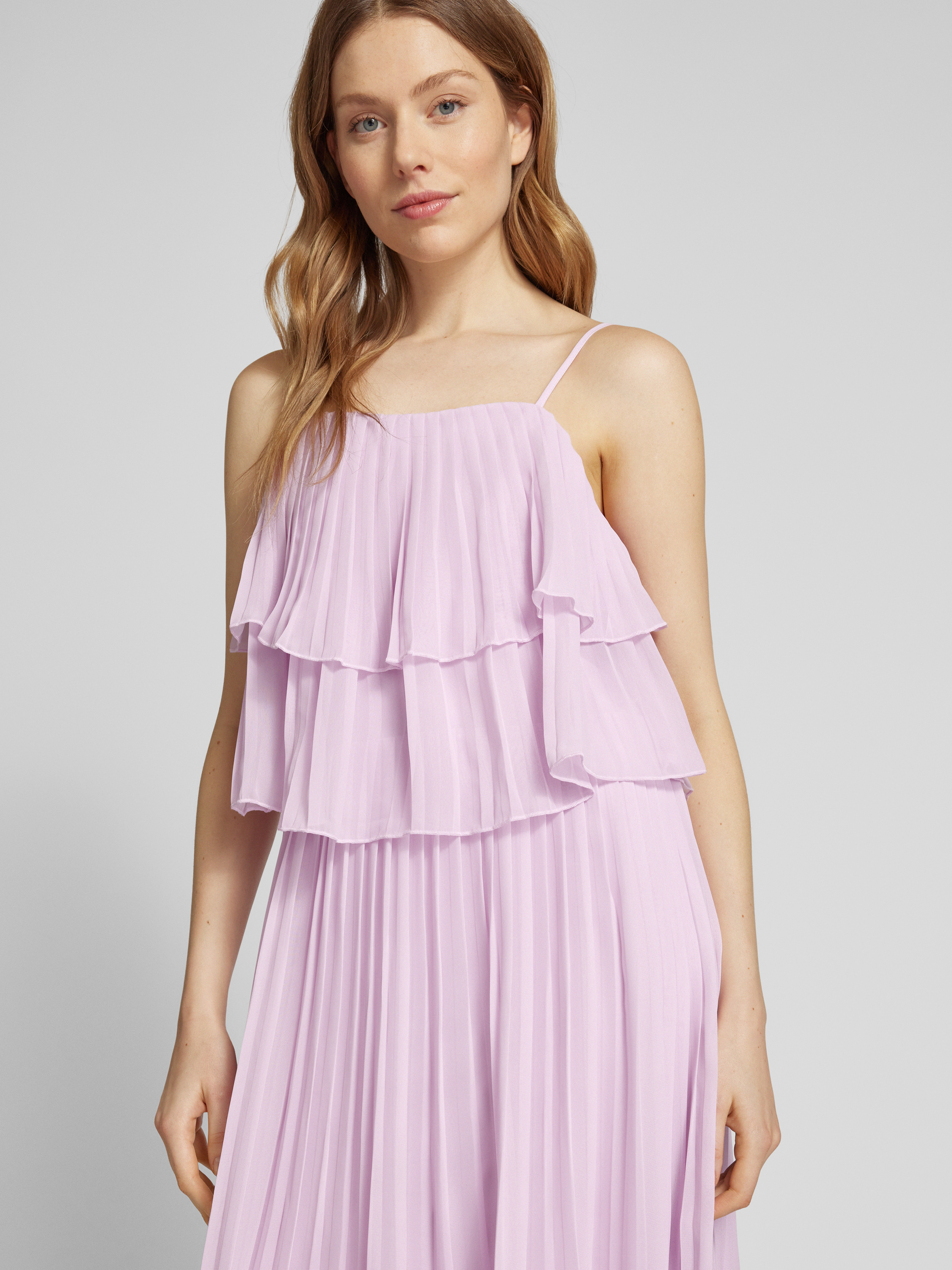 Das fließende Maxikleid von Vila, Modell 'Chiffon', besticht durch seinen eleganten Karree-Ausschnitt und die zarten Spaghettiträger. Die Volants und Plisseefalten verleihen dem Kleid eine anmutige Dynamik, während der leichte Chiffon-Stoff für ein angenehmes Tragegefühl sorgt. Ein vielseitiges Kleidungsstück für viele Gelegenheiten.