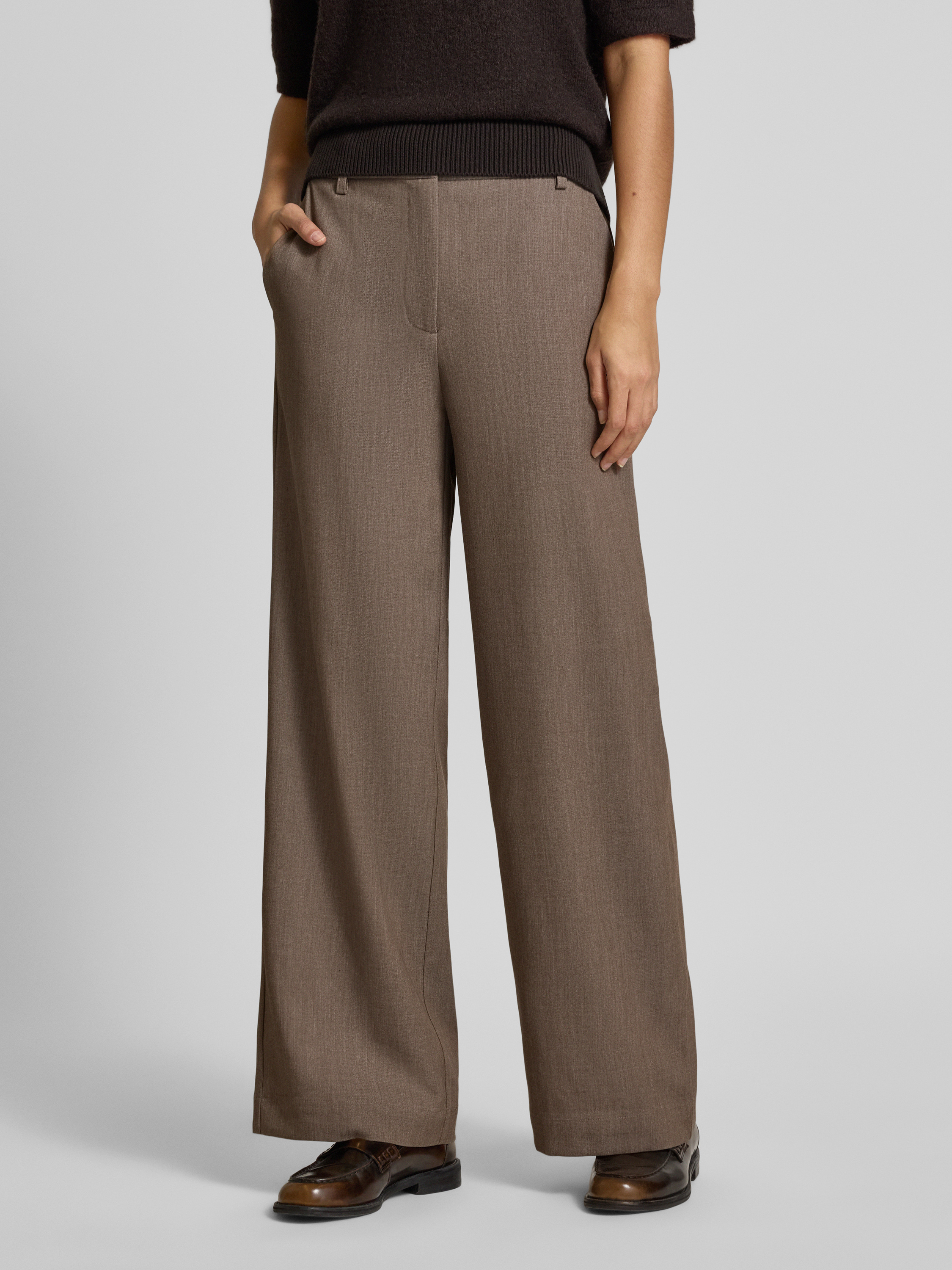 Die Damen Hose von Vila, Modell 'VIANA', fällt durch ihr besonders weites Bein auf und setzt damit einen lockeren Akzent im Alltag. Durch den Material-Mix mit Viskose-Anteil trägt sich die High Waist angenehm leicht und eignet sich auch für längere Tage. Die dezente Optik lässt sich vielseitig kombinieren, sodass man unkompliziert einen modernen Look zusammenstellt.